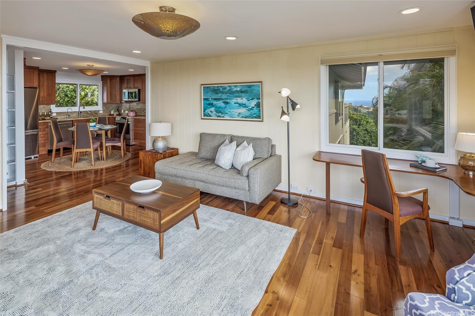 セントの頂上に佇む ルイ・ハイツの閑静な袋小路に位置するこの端地3ベッドルーム/2バスルームの平屋住宅は、エワ、ダイヤモンドヘッド、カハラの雄大な眺望を望み、涼しい貿易風と希少なプライバシーを享受できます。 向かい側に直接家はない(デパート) 水の性質)およびCへの支持 サンワークス・コンストラクション社により2012年に改築・拡張(約 300平方フィートの増築部分を含む本邸宅は、ウォークインクローゼットと専用バスルームを備えた広々とした主寝室スイートを特徴としています。 アップグレード内容:アカシア無垢フローリング、特注キャビネット、花崗岩カウンタートップとバックスプラッシュ、Kangen浄水システム内蔵大型和風キッチンシンク、埋め込み式LED照明、イタリア製水栓金具、新規窓、新規銅製配管、特注洗面化粧台、主寝室バスルームに独立シャワーと深型バスタブ、新規トイレ、自動ブラインド4台、窓用エアコン2台。 内装・外装の新塗装。 トレックスデッキと手すり、新しい屋外用壁灯、住宅下の収納スペース。 滴灌システムを備えた豊かな造園と、成熟した果樹(アボカド、レッドグレープフルーツ、ポンカン、タンジェロ)、レッドシーリングワックスパーム、プアケニケニなどが植えられています。 新屋根(2021年)、前庭杉柵と石垣(2021年)、新冷蔵庫、レンジ 2台分のカーポートと十分な路上駐車スペース。 .