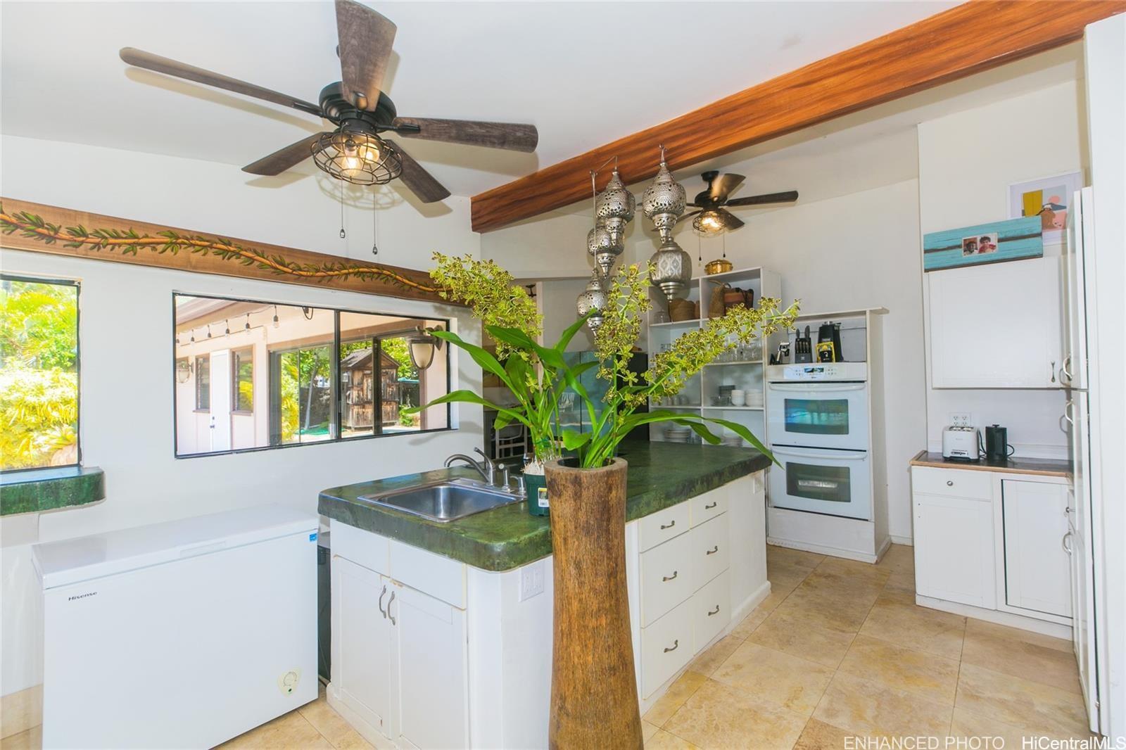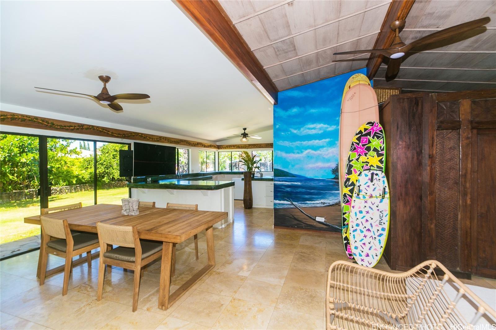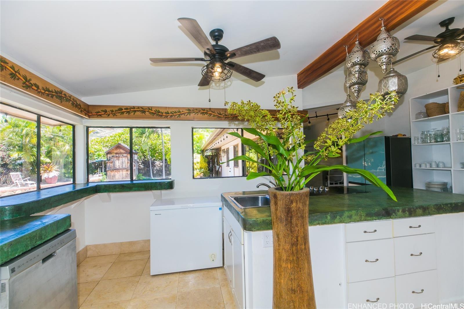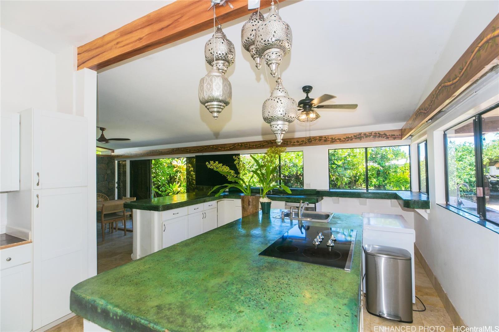 Wonderful corner lot property conveniently placed just minutes away from shopping, dining, gas stations andschools. Unique layout with spacious bedrooms that have living spaces between each other. Large family room witha versatile kitchen and a large dining area. Sprawling backyard, with fruit trees, flowers and fauna galore. Swimmingpool with spacious seating area and a rustic sauna just waiting to be brought back to life for everyday enjoyment.Walk to Niu Valley, 7-11 and wonderful restaurants too. This is a short sale listing, which means the lender willreview the offers and make the decisions for the possible transaction and sale. Buyer is responsible to do their owndue diligence. This property is sold as-is.