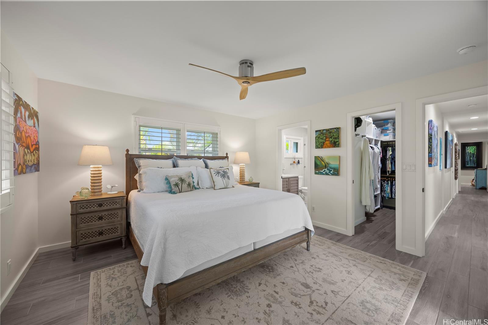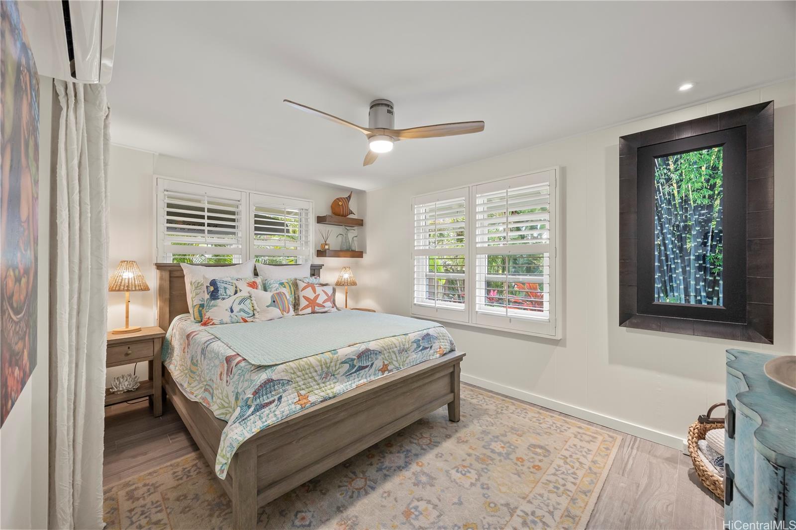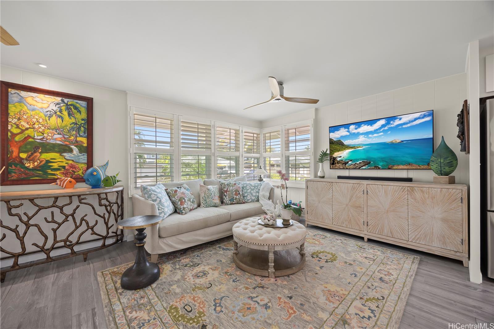 Exceptional Kalama/Coconut Grove turnkey home privately set back from the road in a peaceful cul-de-sac setting just steps from Kailua Town and less than a mile from world-famous Kailua Beach. This beautifully upgraded 3br/2ba residence offers seamless indoor-outdoor living with a dramatic 12-foot double sliding glass door opening to a spacious covered lanai with low-maintenance Trex decking. Features include tile flooring throughout, custom LED lighting, multi-zone split-system AC, custom double-hung windows with lifetime warranty, and plantation shutters throughout, providing excellent airflow, privacy, and natural light. The kitchen offers granite countertops with center island and high-end stainless steel appliances. The primary suite features walk-in closet and large sliding glass door opening directly to the lanai. Enjoy resort-style outdoor living with professional landscaping, brass lighting, copper tiki torches, outdoor shower, and a top-quality hot tub. Additional highlights include 3-car parking, lockable storage shed for surfboards and beach gear, fully gated front and back yards, and a complete sprinkler system. *No showings till Broker’s Open on 4/23, 9.30am-12.30pm*