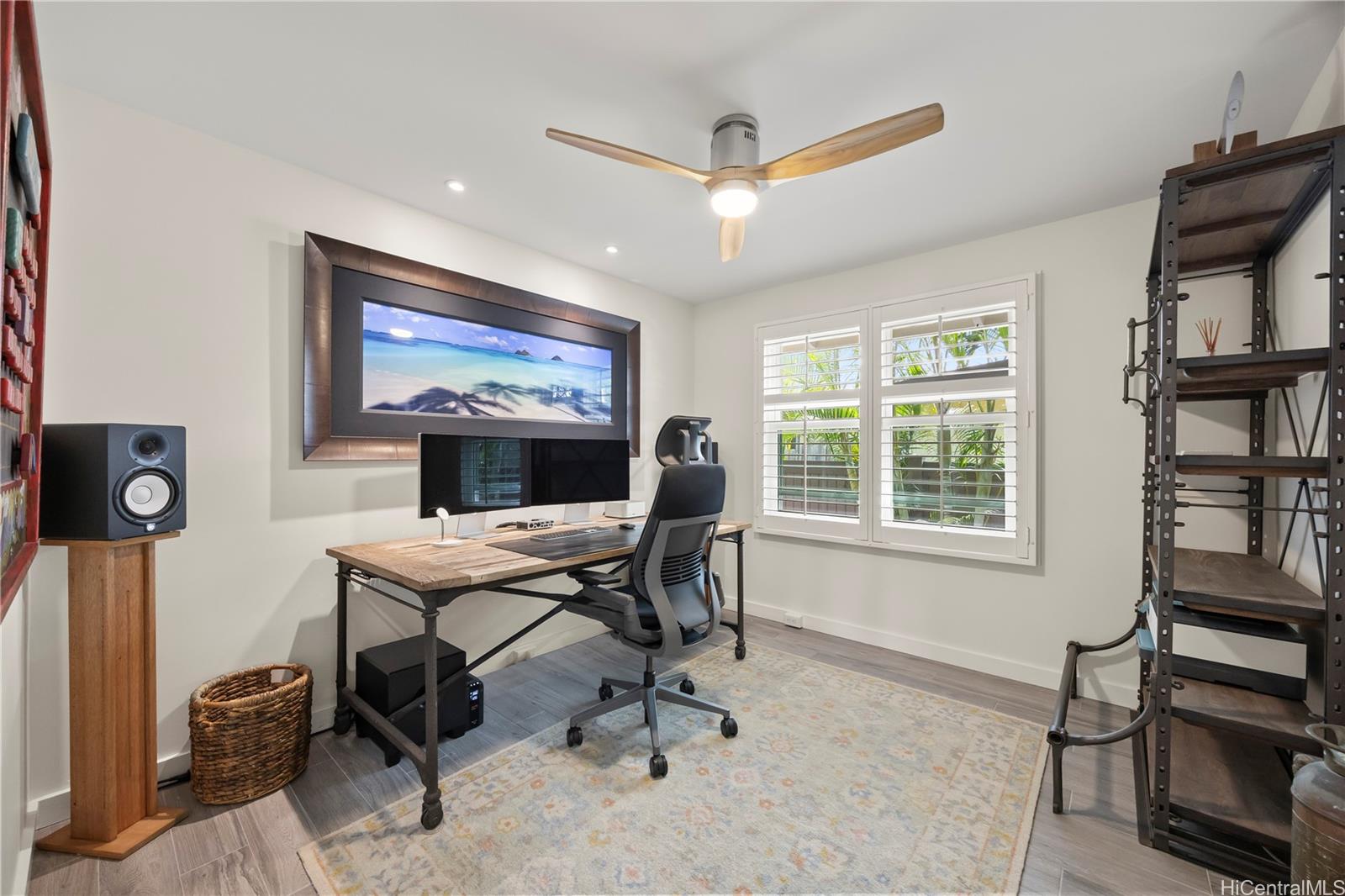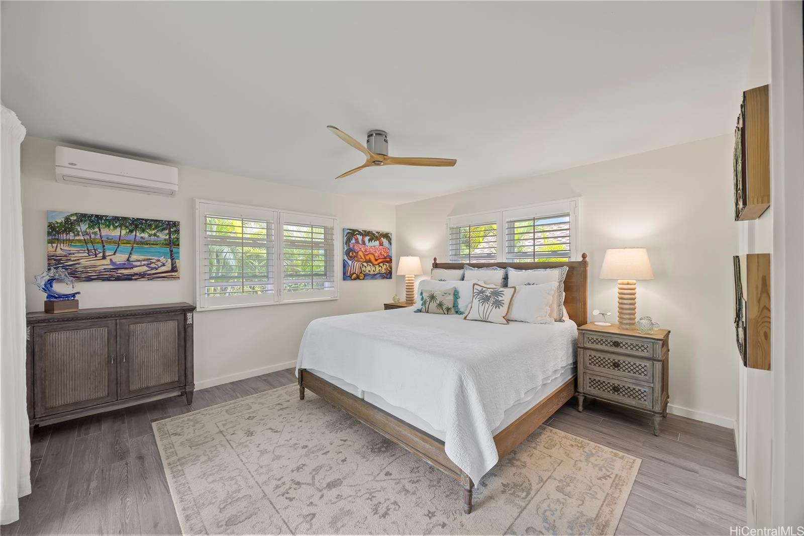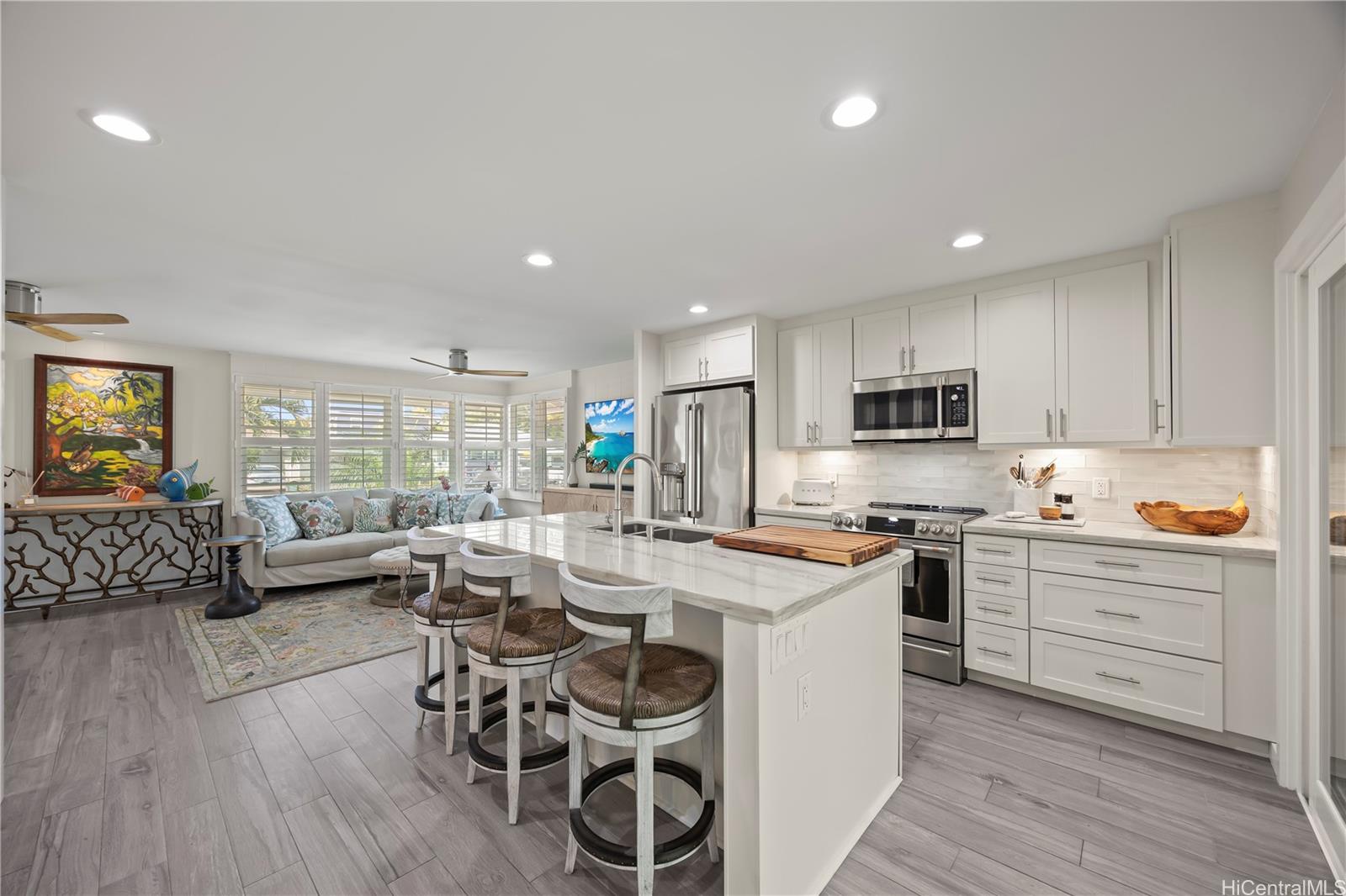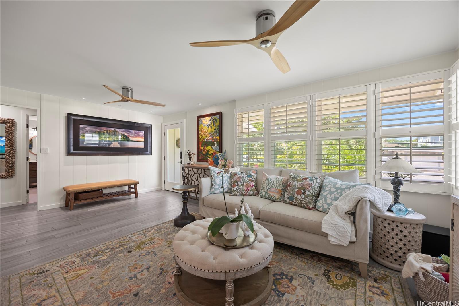 Exceptional Kalama/Coconut Grove turnkey home privately set back from the road in a peaceful cul-de-sac setting just steps from Kailua Town and less than a mile from world-famous Kailua Beach. This beautifully upgraded 3br/2ba residence offers seamless indoor-outdoor living with a dramatic 12-foot double sliding glass door opening to a spacious covered lanai with low-maintenance Trex decking. Features include tile flooring throughout, custom LED lighting, multi-zone split-system AC, custom double-hung windows with lifetime warranty, and plantation shutters throughout, providing excellent airflow, privacy, and natural light. The kitchen offers granite countertops with center island and high-end stainless steel appliances. The primary suite features walk-in closet and large sliding glass door opening directly to the lanai. Enjoy resort-style outdoor living with professional landscaping, brass lighting, copper tiki torches, outdoor shower, and a top-quality hot tub. Additional highlights include 3-car parking, lockable storage shed for surfboards and beach gear, fully gated front and back yards, and a complete sprinkler system. *No showings till Broker’s Open on 4/23, 9.30am-12.30pm*