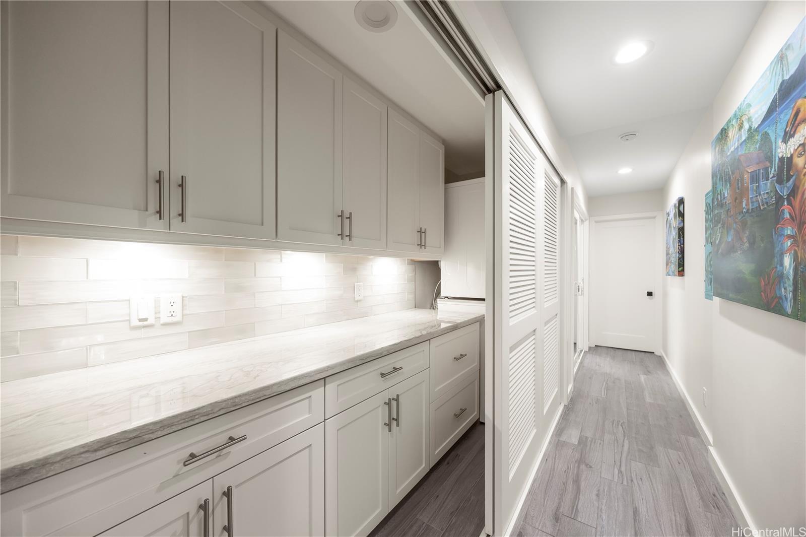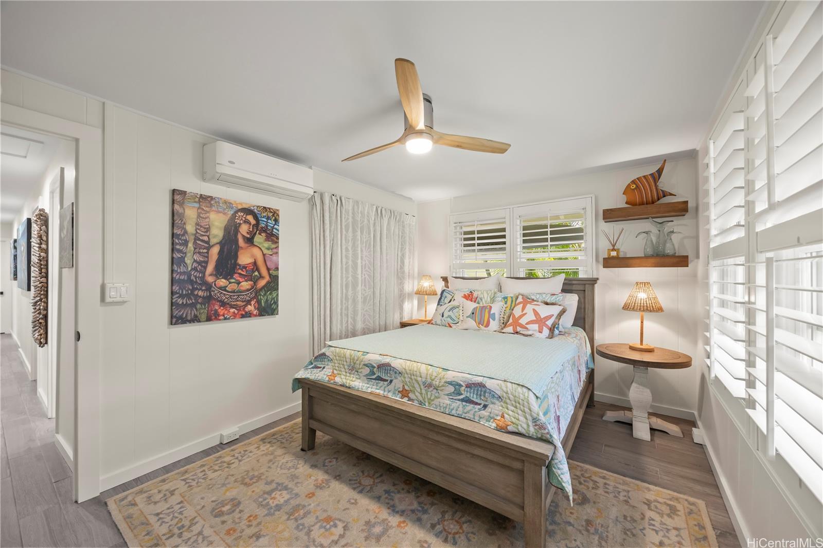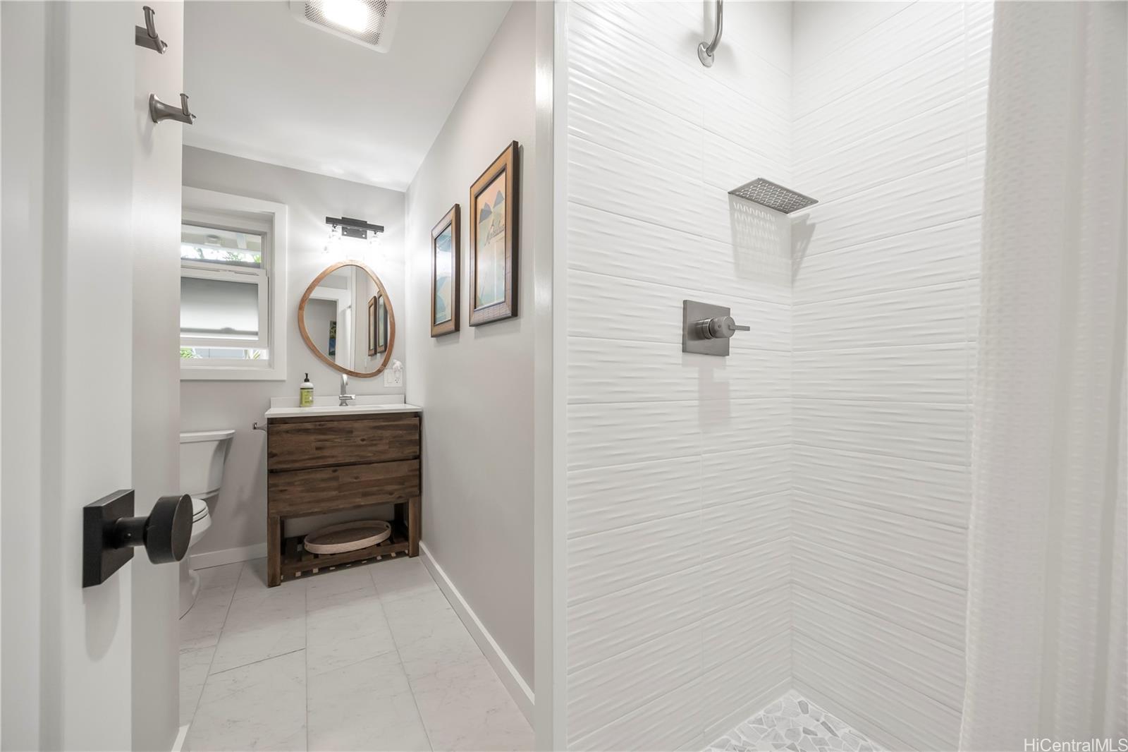 カラマ/ココナッツ・グローブにある、すぐ入居可能な素晴らしい住宅です。道路から少し離れた静かな袋小路に位置し、カイルア・タウンまで徒歩圏内、世界的に有名なカイルア・ビーチまで1マイル(約1.6km)未満の好立地です。 美しく改装されたこの3ベッドルーム・2バスルームの住居は、室内と屋外がシームレスにつながった生活空間を提供します。高さ12フィートの迫力あるダブルスライディングガラスドアを開けると、手入れが簡単なトレックス製のデッキが敷かれた広々とした屋根付きラナイへと続きます。 主な設備・仕様として、全室タイル張りの床、特注のLED照明、マルチゾーン対応のスプリット型エアコン、生涯保証付きの特注ダブルハング窓、そして全室に設置されたプランテーションシャッターが挙げられます。これらにより、優れた通気性、プライバシー、そして自然光が確保されています。 キッチンには、センターアイランド付きの御影石のカウンタートップと、高級ステンレス製の家電が備わっています。 マスタースイートにはウォークインクローゼットが備わっており、大きなガラス引き戸からはラナイに直接出ることができます。 プロによる造園、真鍮製の照明、銅製のティキトーチ、屋外シャワー、そして最高級のジャグジーを備え、リゾートのようなアウトドアライフをお楽しみください。 その他の主な特徴としては、3台分の駐車場、サーフボードやビーチ用品を収納できる施錠可能な物置、前庭と裏庭を完全に囲うフェンス、そして完備された散水システムが挙げられます。 *4月23日(9時)のブローカー向け内覧会までは内覧不可。 午前3時~午後12時 午後3時*。