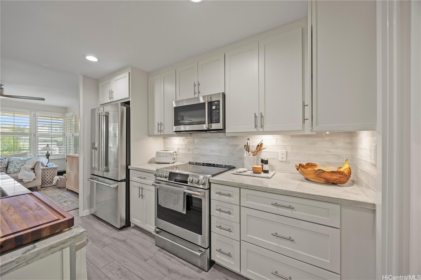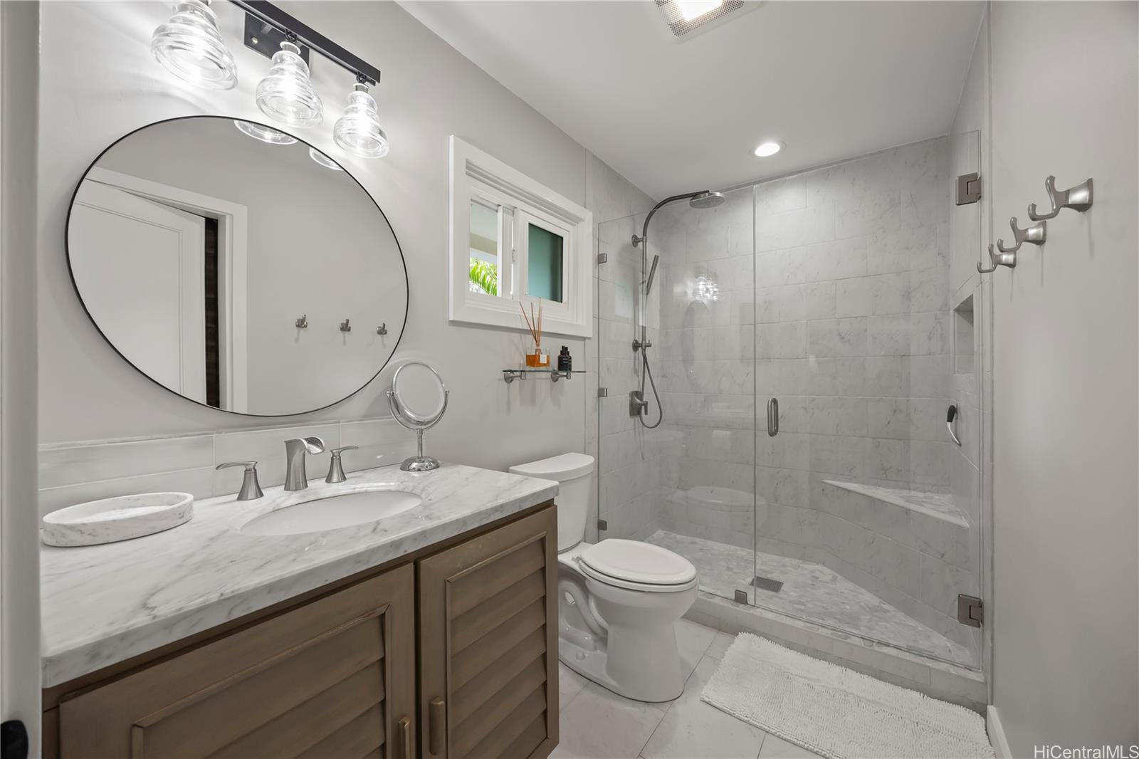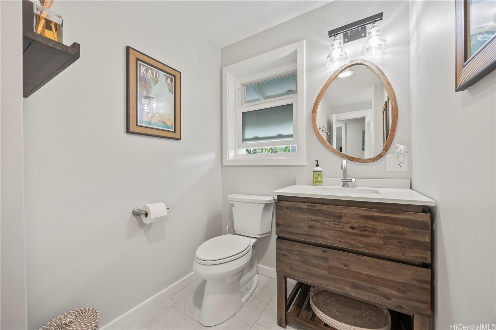 カラマ/ココナッツ・グローブにある、すぐ入居可能な素晴らしい住宅です。道路から少し離れた静かな袋小路に位置し、カイルア・タウンまで徒歩圏内、世界的に有名なカイルア・ビーチまで1マイル(約1.6km)未満の好立地です。 美しく改装されたこの3ベッドルーム・2バスルームの住居は、室内と屋外がシームレスにつながった生活空間を提供します。高さ12フィートの迫力あるダブルスライディングガラスドアを開けると、手入れが簡単なトレックス製のデッキが敷かれた広々とした屋根付きラナイへと続きます。 主な設備・仕様として、全室タイル張りの床、特注のLED照明、マルチゾーン対応のスプリット型エアコン、生涯保証付きの特注ダブルハング窓、そして全室に設置されたプランテーションシャッターが挙げられます。これらにより、優れた通気性、プライバシー、そして自然光が確保されています。 キッチンには、センターアイランド付きの御影石のカウンタートップと、高級ステンレス製の家電が備わっています。 マスタースイートにはウォークインクローゼットが備わっており、大きなガラス引き戸からはラナイに直接出ることができます。 プロによる造園、真鍮製の照明、銅製のティキトーチ、屋外シャワー、そして最高級のジャグジーを備え、リゾートのようなアウトドアライフをお楽しみください。 その他の主な特徴としては、3台分の駐車場、サーフボードやビーチ用品を収納できる施錠可能な物置、前庭と裏庭を完全に囲うフェンス、そして完備された散水システムが挙げられます。 *4月23日(9時)のブローカー向け内覧会までは内覧不可。 午前3時~午後12時 午後3時*。