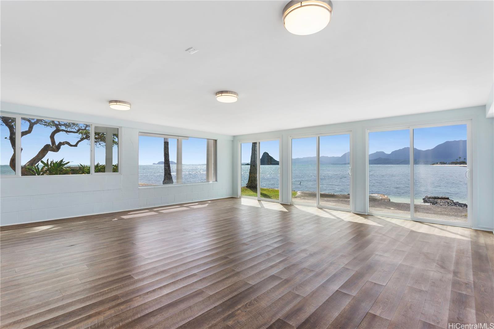 驚くほどユニークで希少なオーシャンフロント物件!壮大なパノラマビューを誇ります!!海に面した岬に位置し、二方向に水辺が広がるこの特別な区画からは、伝説のチャイナマンズハット島、カネオヘ湾、雄大なコオラウ山脈、美しい砂浜のクアロア地域公園(ビーチ)など、遮るもののない広大な景色を一望できます! 抜群の自然のプライバシー、直接海へアクセスできる利便性、専用ボートランプを享受できます。 カメハメハ・ハイウェイから分岐する私道沿いに 素晴らしいクアロア牧場の向かい側。 すぐにお住まいいただけます – 2018年にキッチンを改装し、内装も新しく塗り替えました。 1階には囲い付きのラナイ、2階には美しいデッキがあり、どちらも接待に最適です。 1階にベッドルーム1室・バスルーム1室、2階にベッドルーム2室・バスルーム1室。 各部屋にスプリットエアコン完備!カネオヘ海兵隊基地まで車で約30分、カネオヘの町まではさらに短時間です。 室内サイズと寝室数は税務記録と異なります。 今日絶対に見るべき!