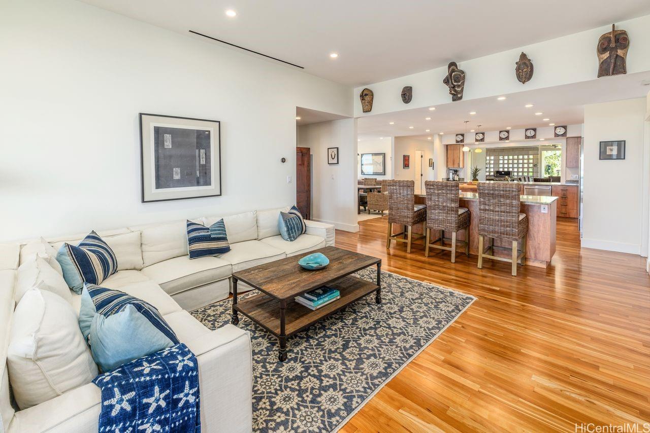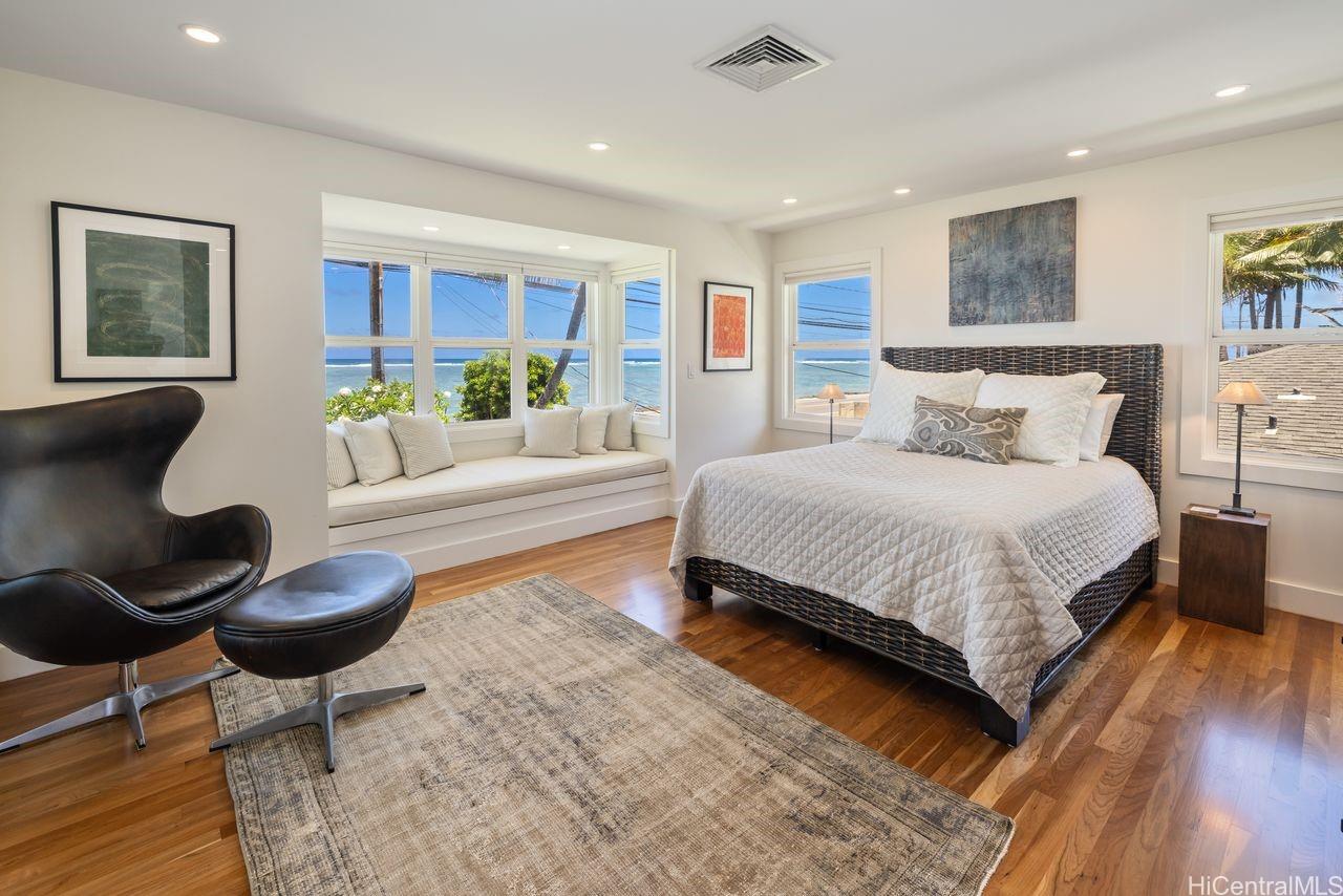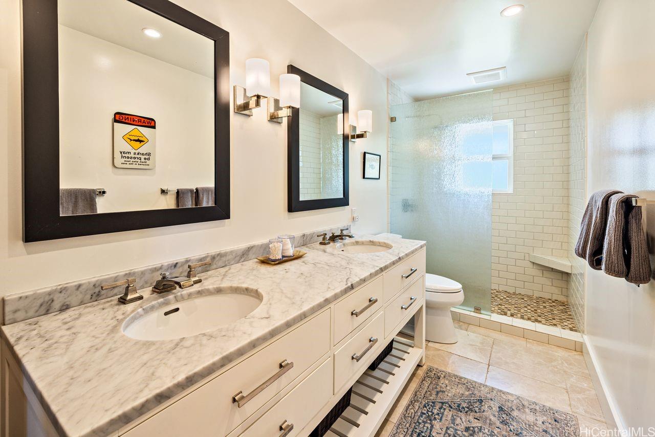 Soak in unobstructed ocean views and cool sea breezes from this exceptional home in a prime Hauula location- just steps from the beach! Completely remodeled in 2014 and meticulously maintained, this 3 bedroom, 4 bath home blends comfort, luxury and island charm. The chef-inspired kitchen is built to impress featuring custom mango wood cabinetry, dual islands, granite countertops, a butcher block prep space, Sub Zero fridge, Wolf gas range and a huge walk-in pantry. Entertaining is effortless! Inside, rich cherry wood flooring add warmth throughout while outside Ipe decks and gates offer durability, style & timeless appeal. Stay cool and connected w/ 2 split AC systems, Nest thermostat, integrated sound system,security cameras and a newer roof (2016). The lower level offers generous storage for all your gear and an outdoor shower to rinse off after a day in the waves. It’s everything an active lifestyle demands. And the yard? Massive, lush, tropically landscaped. Perfect for hosting, lounging or just soaking in paradise! This home checks every box- location, elevated finishes and a lifestyle that embraces everything Hawaii has to offer! To be sold simultaneously with MLS 202510245.