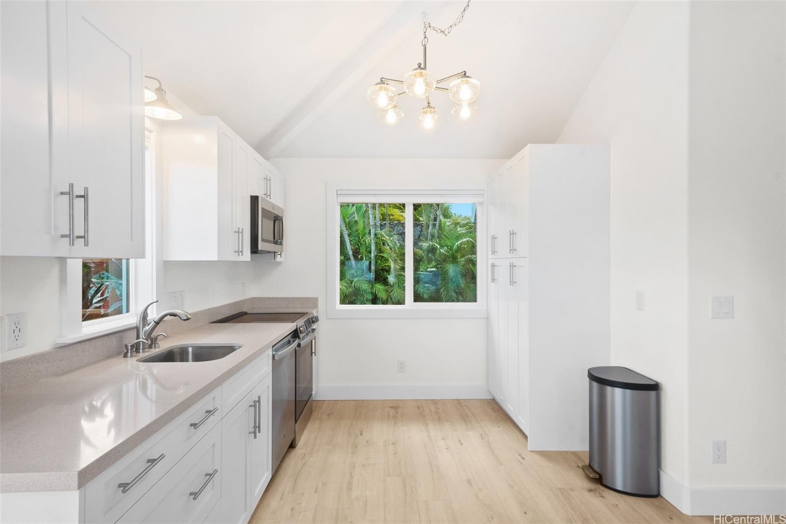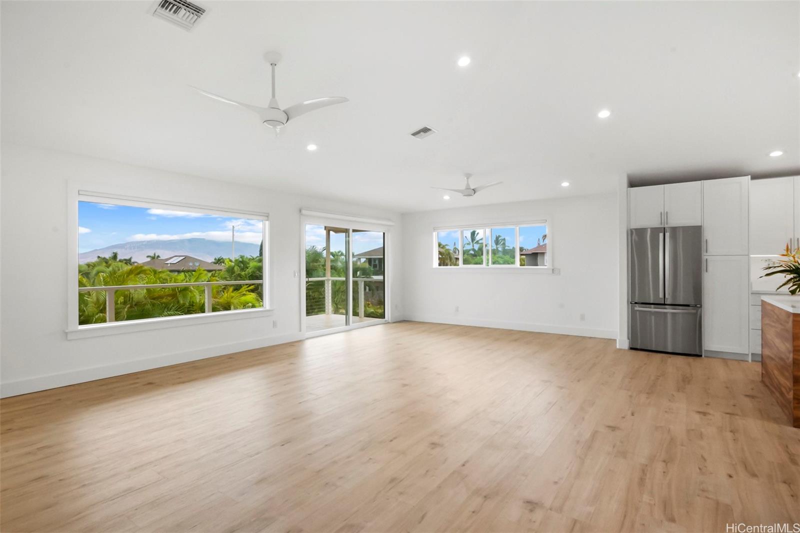 Renovated beach-style 3 bd, 2 ba home with 2 bd,1 ba permitted ohana. Stroll to one of the finest beaches on Maui from your new home in Kamaole Heights, Kihei. Ocean views from main home with stunning views of West Maui Mountains and Haleakala. Property also includes a 620 square foot studio living space – perfect for artists or musicians. The main home and ohana have new custom kitchens. The ohana has two new split A/C units. A drop-down ceiling was added to the additional living space for extra soundproofing. Upgrades to all 3 units include new Mohawk waterproof luxury vinyl plank flooring.New interior and exterior doors with custom French doors.Exterior upgrades include additional rock wall and planter. New palm landscaping covering perimeter of backyard for added privacy. Backyard concrete was professionally stripped, stained,and sealed.All new paint inside and out.Two car garage with laundry for downstairs living spaces.Large driveway to allow for additional five car parking. Over 10,000 square foot lot.The home includes 54 leased PV panels which keep monthly electric costs below $50 for the entire property!All renovations were completed in 2024 and 2025 at a cost of $500,000