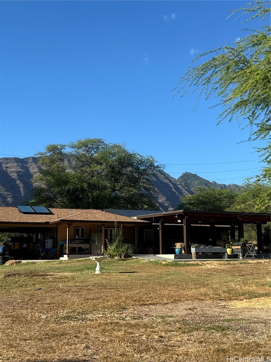 Great opportunity to own 6.745 acres of Ag-2 land. Neighbors include Solar Farm, Board of Water Supply and the Waianae Mountain Range. Part of property has dried springs of Keko’o. This property was build one level making handicap accessibility easy. Walkways to back Patio and Bar-B-que area are 10 feet wide for easy access.