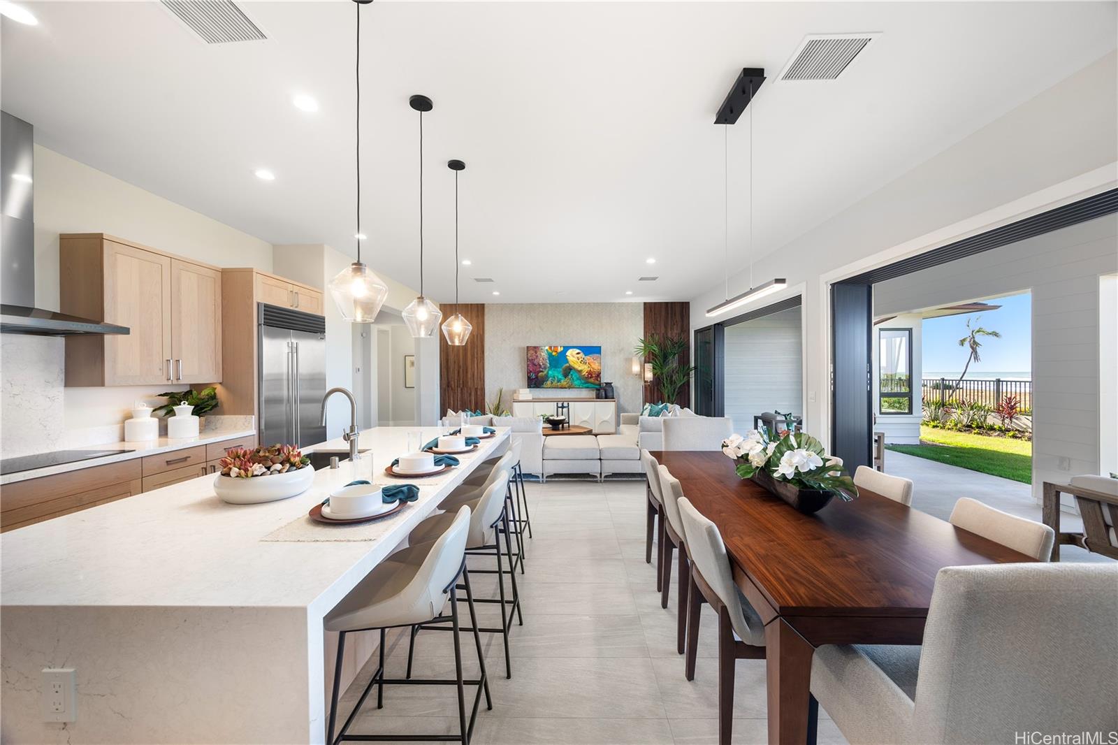 オーシャンビューの新しい海岸沿いのラグジュアリーレジデンス! この美しく造られた新築住宅で、1階建てのリゾートライフをお楽しみください。 このエレガントな3ベッドルーム、3.5バスルームのレジデンスには、広々としたグレートルーム、屋内外のリビングに最適な屋根付きラナイ、2台分のガレージがあり、快適さ、スタイル、つながりを考慮して設計されています。 息をのむようなオーシャンビューと、セントラル・エアコン、80ガロンの太陽熱温水器、EV充電器、太陽光発電システムなど、プレミアムな設備の数々をお楽しみください。 シェフズ・キッチンには、42インチのビルトイン・サブゼロ冷蔵庫、ウルフのステンレス製IHクッキングヒーター、コンベクション・オーブン、ドロップダウン・ドア付き電子レンジ、エネルギースター認定のボッシュ製食器洗い機など、厳選された高級家電が並んでいます。 自動灌漑を備えた、手入れの行き届いた屋外スペースは、日々の暮らしや特別なおもてなしのための美しい背景となる。 イリマ – 75. 10 B(リバース)の間取り。 購入者は$20,000のオプションクレジットを利用でき、オプションやアップグレードに適用される。 完成は2026年3月/4月。