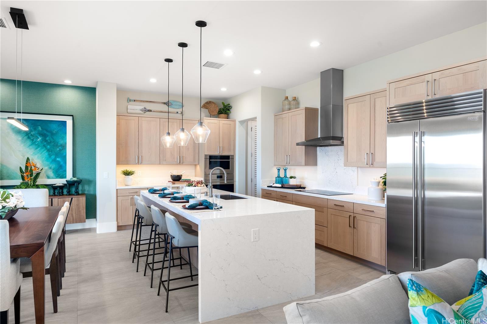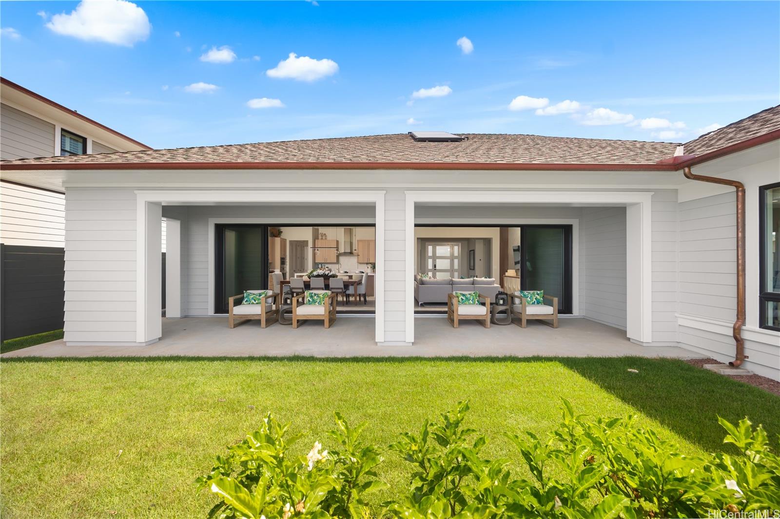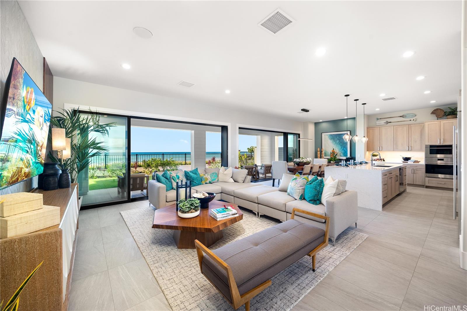 New Coastal Luxury Residence with Ocean Views Embrace single-level resort living in this beautifully crafted new construction home, offering over 2,400 square feet of thoughtfully designed interior space. This elegant three-bedroom, three-and-a-half-bath residence features a spacious great room, a covered lanai perfect for indoor-outdoor living, and a two-car garage—all thoughtfully designed for comfort, style, and connection. Enjoy breathtaking ocean views and a collection of premium features, including central air conditioning, an 80-gallon solar water heater, EV charger readiness, and accommodations for a photovoltaic solar electric system. The chef’s kitchen showcases a curated selection of high-end appliances, including a 42” built-in Sub-Zero refrigerator, Wolf stainless steel induction cooktop, convection oven, microwave with drop-down door, and an Energy Star-certified Bosch dishwasher. Meticulously landscaped outdoor spaces with automated irrigation offer a beautiful backdrop for daily living and exceptional entertaining. Ilima – 75.10 B (Reverse) floorplan Kekainani at Hoakalei | One of the final 32 luxury residences in the prestigious Kuapapa neighborhood