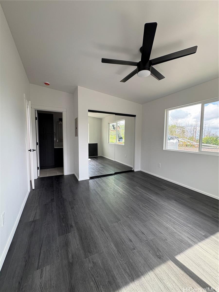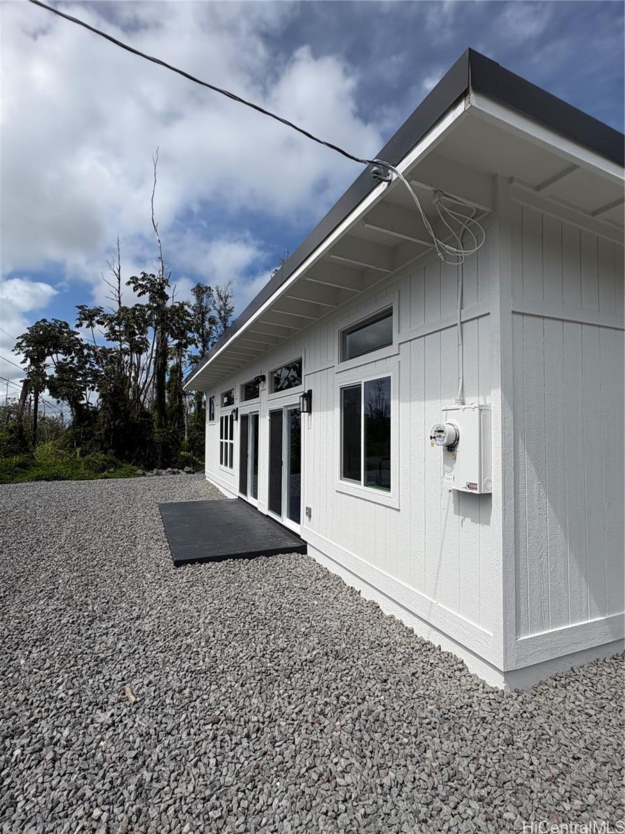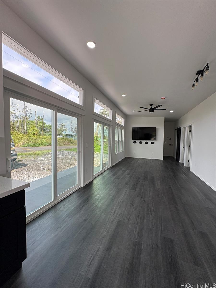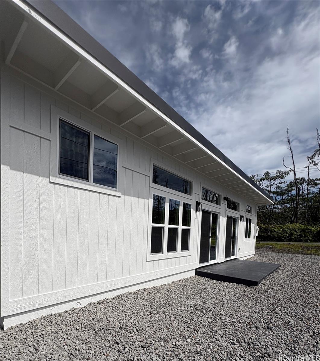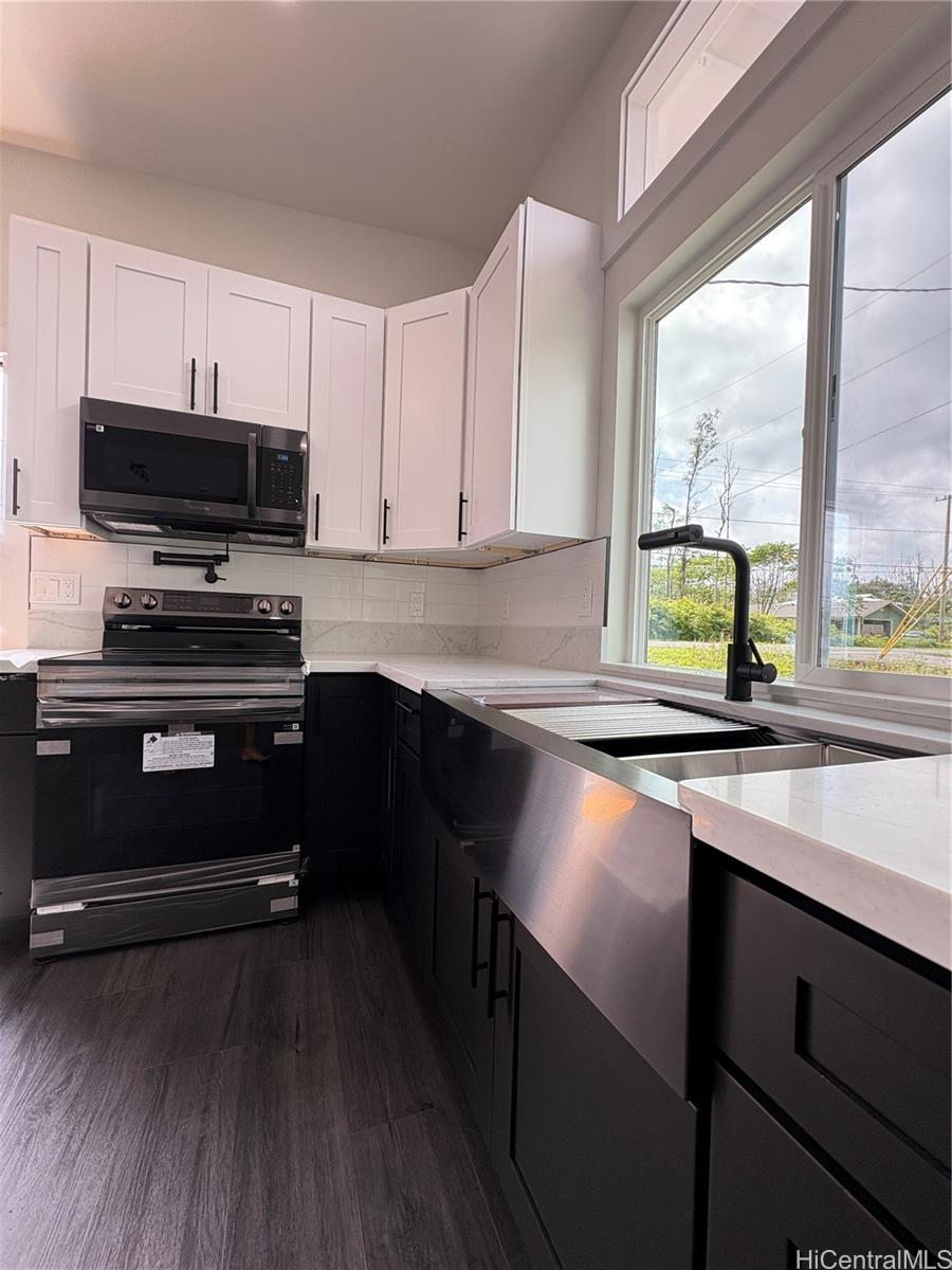 Brand new modern farmhouse with dramatic high slant ceilings and an open, light-filled layout. This 3 bedroom, 2 bath home features luxury black vinyl plank flooring and custom hardwood cabinetry throughout. The kitchen stands out with quartz countertops, matching Samsung black stainless appliances, a large custom pantry, pot filler above the stove, and a bold 36” black stainless farmhouse sink as the centerpiece. Remote-control ceiling fans are installed in every room for comfort and convenience. Bathrooms feature full custom tile walk-in shower, while the primary bath includes a soaking tub with bench seat and waterfall shower head. Large windows bring in abundant natural light and offer a peekaboo ocean view. Also included is a 70” flat screen TV and an in-wall Kicker Bluetooth sound system. Ring surveillance floodlight cameras are installed on the front and back of the home. Modern farmhouse style combined with thoughtful upgrades makes this home truly move-in ready. All comments, data is provided by seller or seller’s representatives. Buyer to confirm all & hold all parties harmless from any discrepancy data in the mls and advertising.