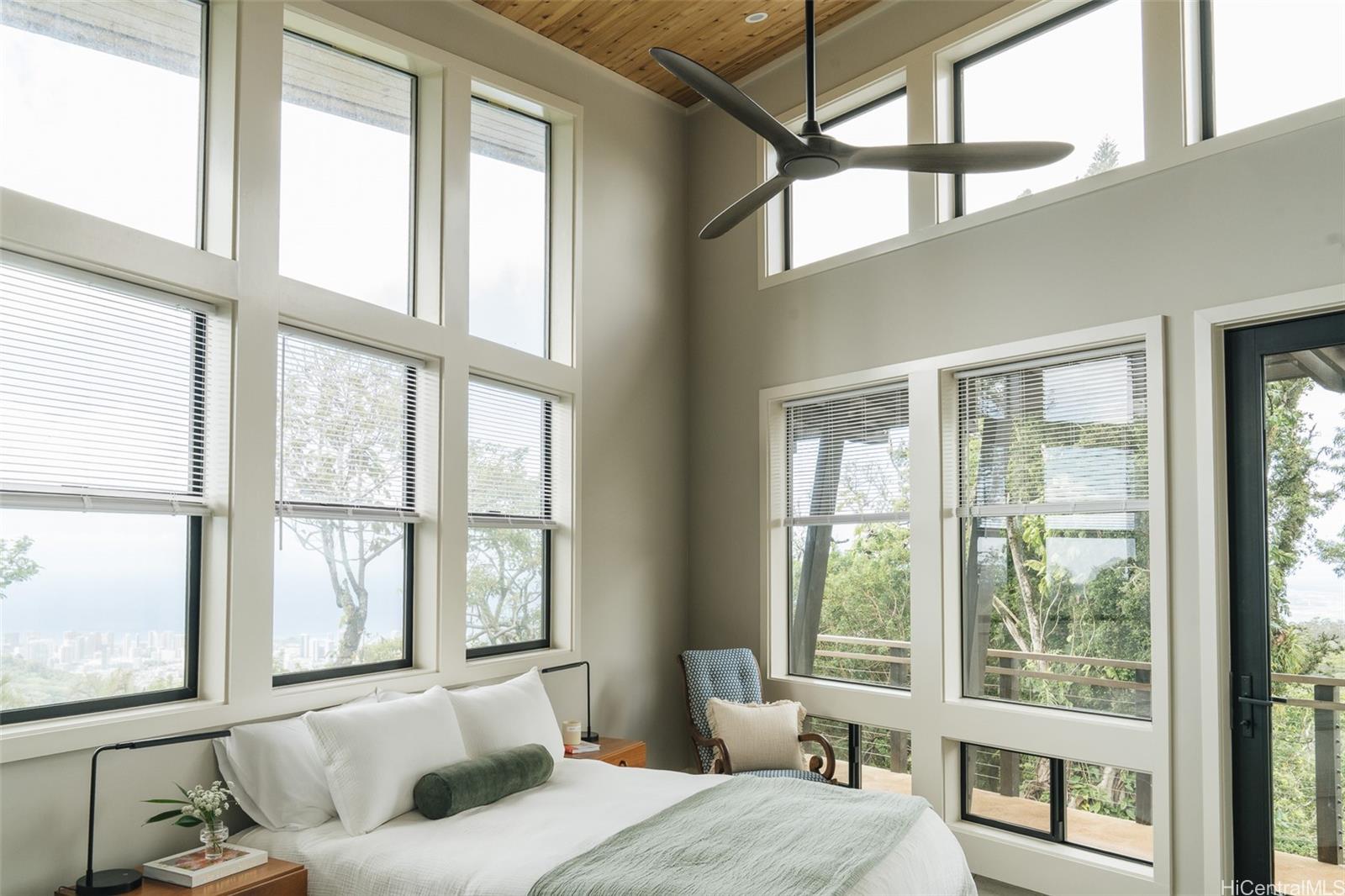Just Listed, An Architect’s Dream Home. First showings 4/28/26. Treetops at 228 Forest Ridge Way occupies a one-acre rim lot along the outer edge of the Tantalus ridgeline. Completed in 2023, the residence was designed and built as the personal home of Darrell “Buck” Welch Jr., principal of Welch & Weeks Architects, a Honolulu studio known for work grounded in the island landscape. The house follows the natural slope in a three-level composition, allowing trade winds, daylight, and long horizon views to guide the interior experience. Hardwood, slate, and volcanic basalt create a restrained material palette that pays homage to its island setting.