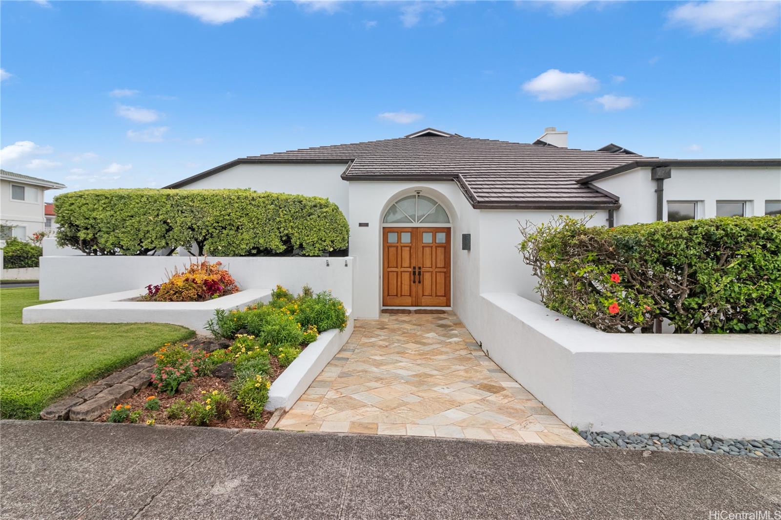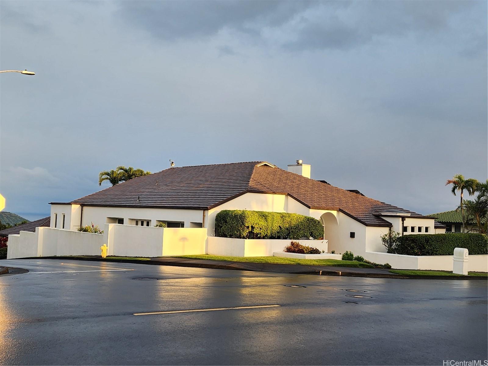 Sophisticated single level home with a beautiful ocean view. Perched on a prime corner lot within gated community of Waialae Iki 5. Meticulously maintained single level home designed with an architectural flow that captures the essence of island elegance. Step inside to soaring high ceilings and the warm, rich tones of ipe engineered wood flooring. Primary bathroom remodeled with modern finishes, an Italian stone tub and Italian porcelain tiles. Enjoy the open kitchen that looks out to the view. Fully walled-in with large level yard, swimming pool, fish pond and lemon tree. Plus 60 PV panels. A great home for entertainment!