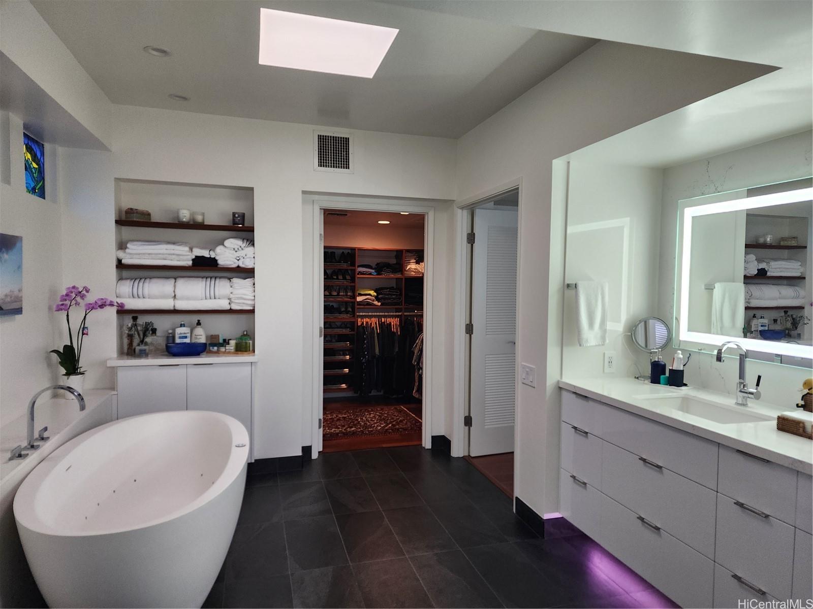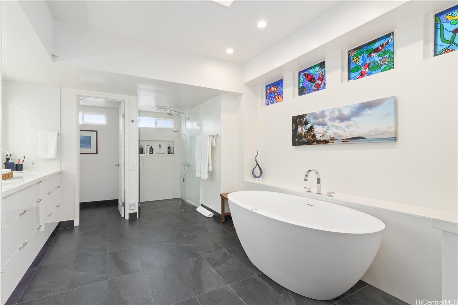 洗練された平屋建ての住宅で、美しい海の景色が広がります。 ワイアラエ・イキ5のゲート付きコミュニティ内、一等地の角地に位置しています。 島の優雅さを余すところなく表現した、建築的な流れを重視した設計の、手入れの行き届いた平屋住宅です。 中へ一歩踏み入れると、高い天井と、イペ材のエンジニアードフローリングが放つ温かみのある深みのある色合いが迎えてくれます。 主寝室のバスルームは、モダンな内装、イタリア産石材のバスタブ、そしてイタリア製磁器タイルを用いて改装されました。 景色を一望できるオープンキッチンをお楽しみください。 周囲が完全に塀で囲まれており、広々とした平坦な庭、プール、池、そしてレモンの木があります。 60枚以上の太陽光パネル。 エンターテインメントを楽しむのに最適な住まいです!