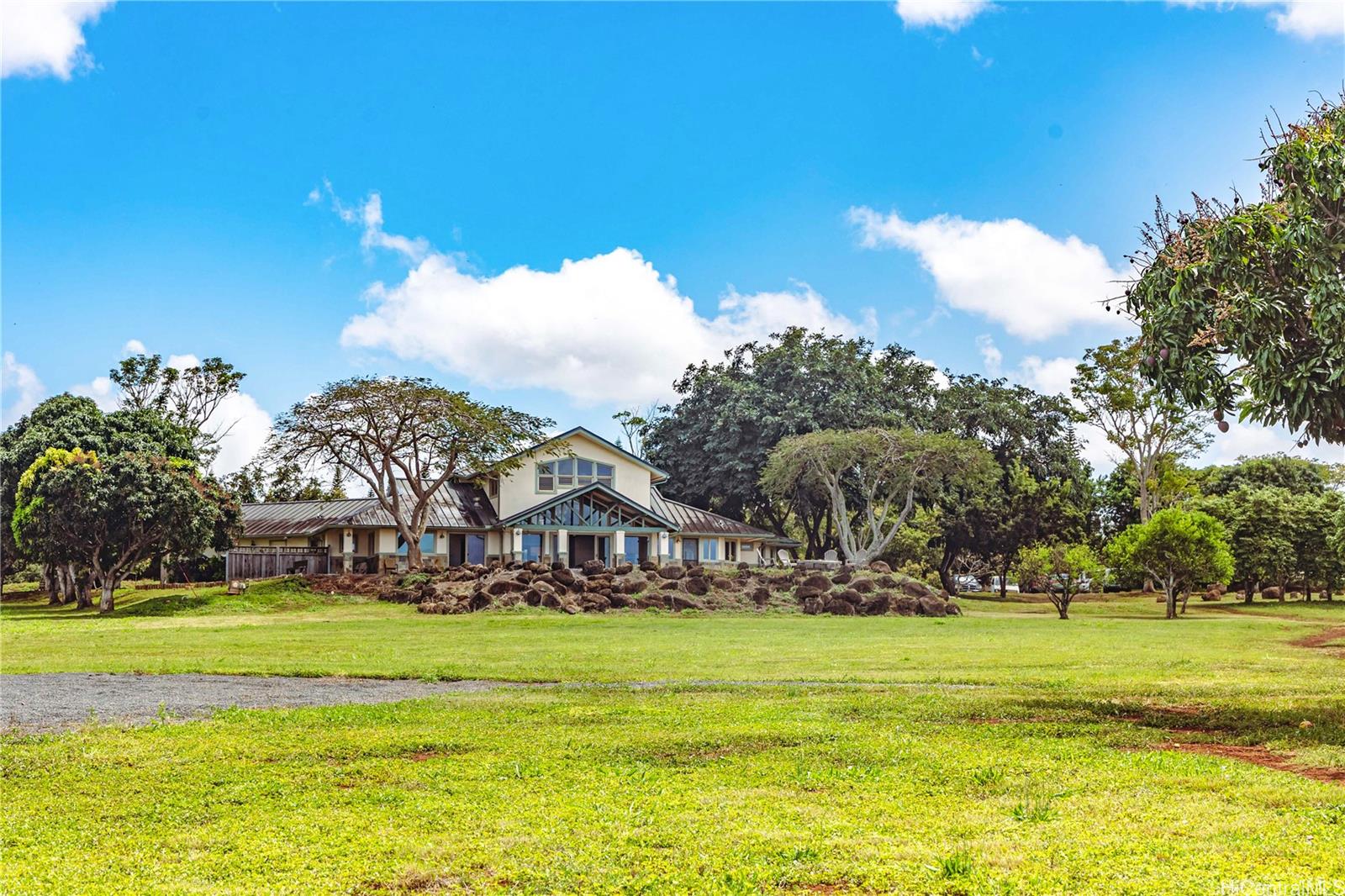 PRIVATE FARMHOUSE ESTATE – A rare opportunity to own a stunning 3 bed / 2.5 bath, two-story 2,519 SF home on a picturesque 7-acre farm in the gated and serene Poamoho Estates on Oahu’s world-famous North Shore. Located at the end of a quiet cul-de-sac and bordered by a lush 100-foot ravine, this peaceful retreat offers both privacy and breathtaking natural beauty. Also included is a fully enclosed 1,250 SF workshop, complete with its own bathroom and office—perfect for use as a home gym, game room, creative studio, or agricultural utility space. The property features over 400 mature fruit trees, including mango, avocado, lychee, longan, citrus, papaya, and breadfruit—offering an abundance of fresh produce and incredible opportunity. From launching a farm-to-table business, CSA program, or local produce brand, the possibilities are truly limitless. Whether you’re envisioning a working farm, private retreat, or community-supported agricultural venture, this unique estate blends lifestyle and potential—all just minutes from charming Haleiwa Town, surf breaks, and the heart of the North Shore. Don’t miss this one-of-a-kind opportunity—schedule your private showing today!