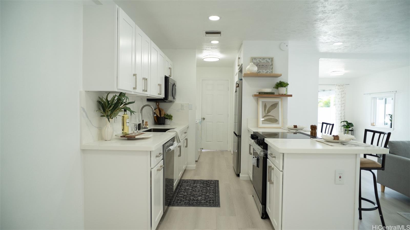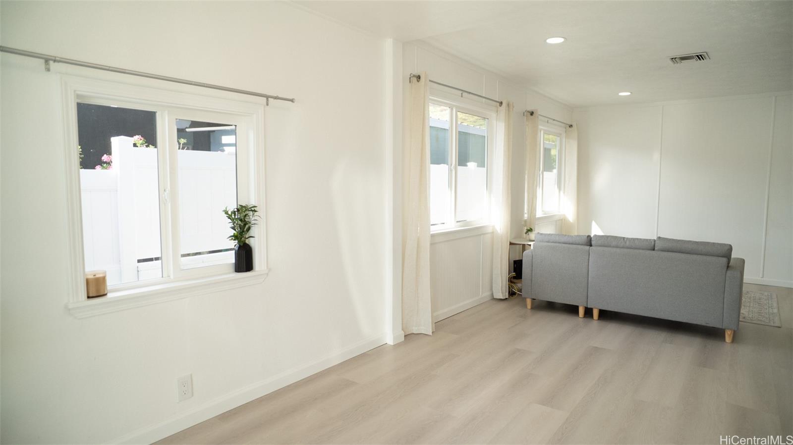 Discover modern island living at its finest in this beautifully fully renovated home. Completely refreshed from top to bottom, this gem offers a fresh, contemporary feel with high-end updates throughout—no detail has been overlooked. Step inside to cool comfort with central air conditioning and sleek luxury vinyl plank flooring that flows seamlessly through the open living spaces. The heart of the home shines with an all-new kitchen featuring stainless steel appliances, perfect for everyday meals or entertaining aloha-style. Outside, enjoy enhanced privacy and security with a brand-new vinyl fence, new gated entry, and a professional security system for peace of mind. The freshly paved driveway adds curb appeal and convenience, while the property’s location offers easy access to Waianae’s stunning beaches, hiking trails, local markets, and the laid-back West Side vibe. Ideal for first-time buyers, families, or those seeking a low-maintenance, move-in-ready retreat on Oahu’s Leeward Coast. Don’t miss this rare opportunity!
