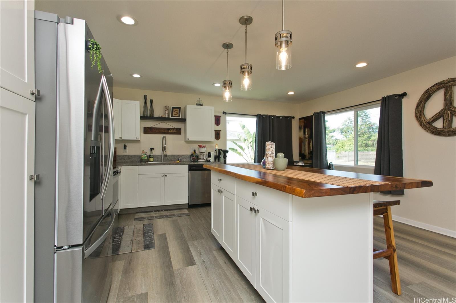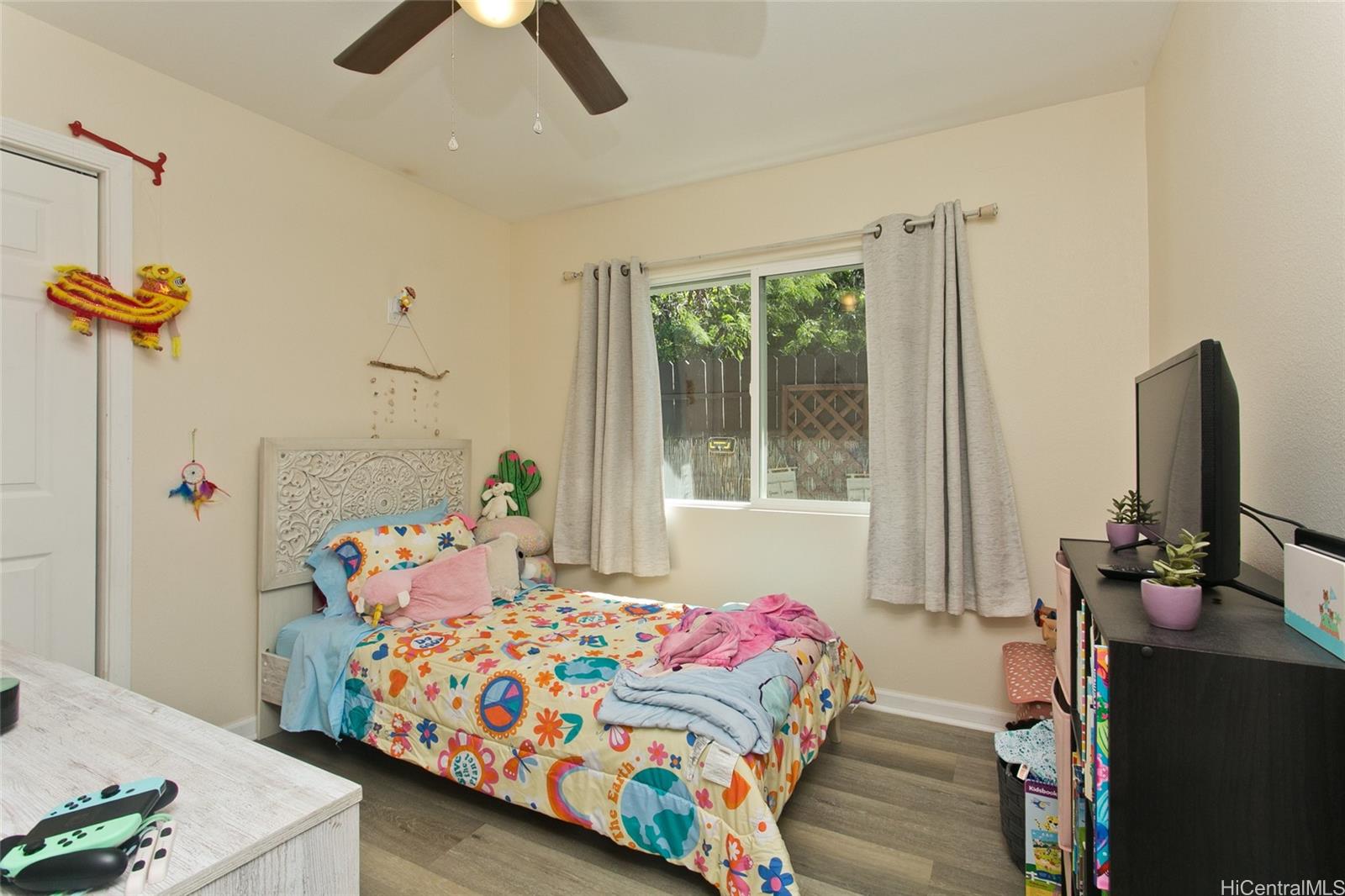 Welcome home to Mauna Hale Estates in Makaha. This intimate residential development, located just a 10-minute walk from theworld-famous Makaha Beach Park, features detached, separately metered 3-bedroom, 2-bathroom homes with NO HOA fees. Enjoy beautiful Waianae Mountain views, a private en-suite, and your own outdoor patio space. This home features split A/C units andceiling fans, while a solar-powered water heater helps keep electricity costs low. Interior highlights include luxury vinyl flooring, elegant quartz countertops and many more upgrades for the perfect island living.