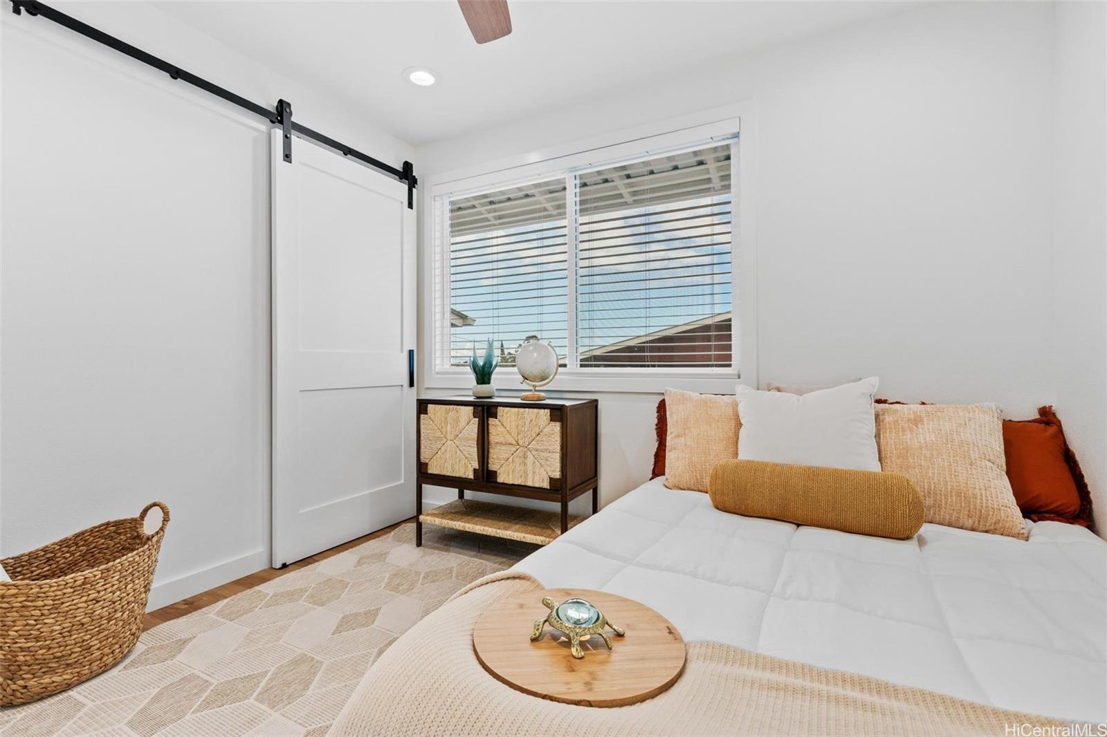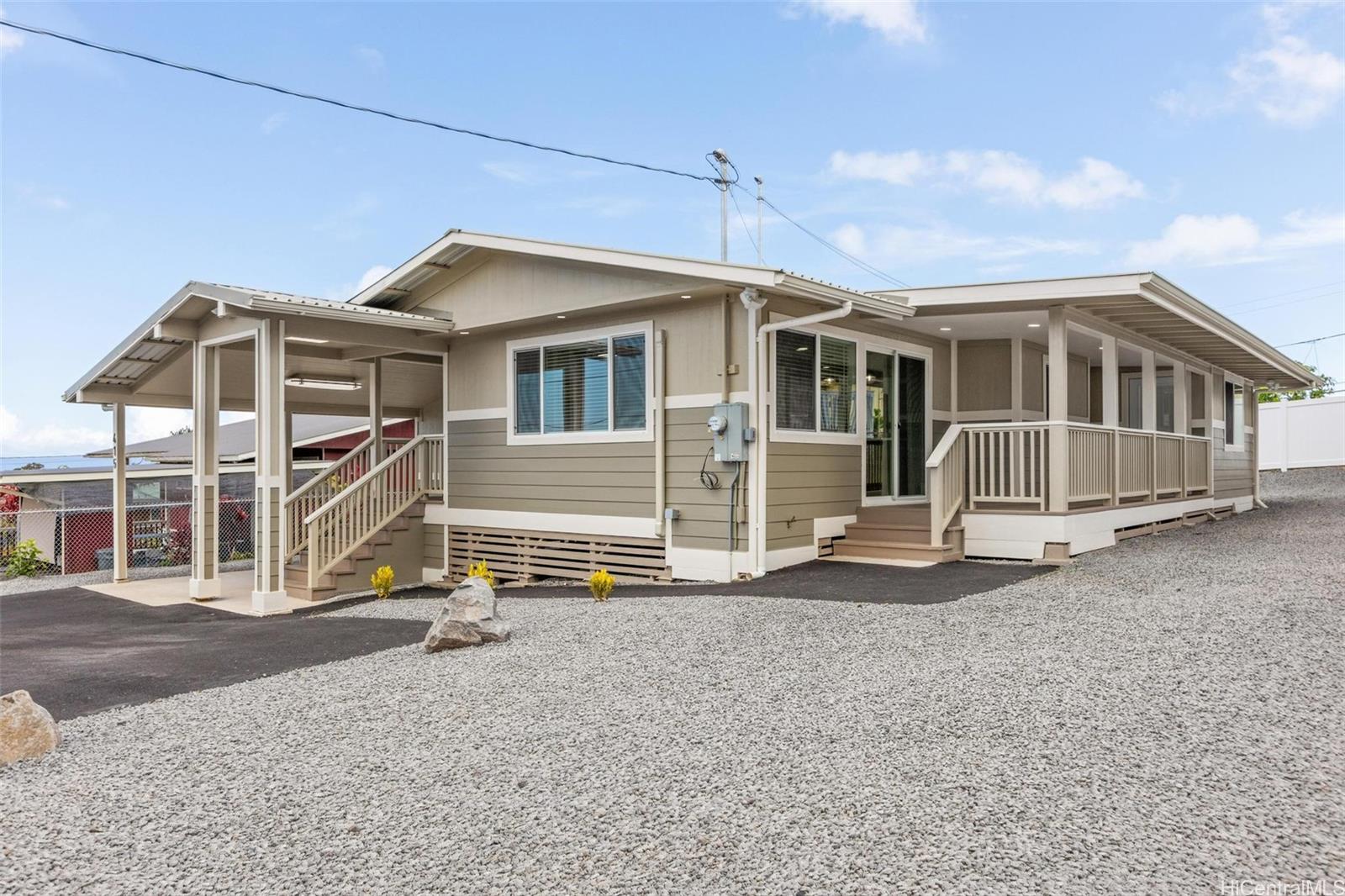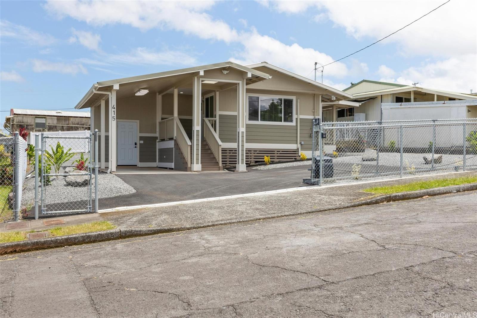Stylishly remodeled, this Hilo home offers ~1,900 sq ft under roof in a convenient in-town location with county water, sewer, and gas. The 3-bedroom, 2-bath layout features a bright open living area and a well-appointed kitchen with gas range, Calacatta Veraldi quartz countertops, large island, and quality finishes. Two split A/C units provide comfort, while a bonus recreation room offers flexible space for office, gym, or media use. Bedrooms include thoughtful details like barn doors, ample lighting, and generous storage. The oversized primary suite features a walk-in closet and beautifully finished bath. Both bathrooms offer custom-tiled walk-in showers and illuminated mirrors. Exterior highlights include artistic landscaping, two-tone siding, new roof, covered lanai, fully fenced yard with electric gate, new asphalt driveway, and extra-high carport. Minutes from Hilo Medical Center, UH Hilo, and downtown bayfront. Buyer to verify details.