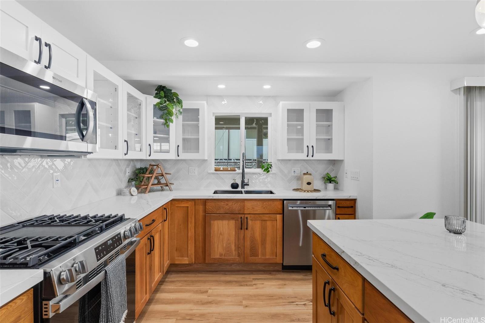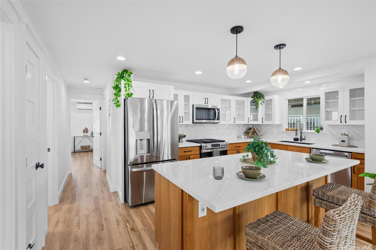 スタイリッシュに改装されたこのヒロの住宅は、約1,900平方フィートの床面積を誇り、市街地の便利な立地にあり、郡の水道・下水道・ガスが完備されています。 3ベッドルーム、2バスルームのこの間取りは、明るい開放感のあるリビングエリアと、ガスコンロ、カラカッタ・ヴェラルディのクォーツ製カウンタートップ、広々としたアイランド、そして上質な仕上げが施された充実したキッチンが特徴です。 2台のスプリット型エアコンが快適な環境を提供し、さらに設けられたレクリエーションルームは、オフィスやジム、メディアルームなど、用途に応じて柔軟に活用できるスペースとなっています。 各寝室には、バーンドアや明るい照明、広々とした収納スペースなど、細部にまでこだわった工夫が施されています。 広々としたマスタースイートには、ウォークインクローゼットと美しく仕上げられたバスルームが備わっています。 どちらのバスルームにも、特注タイル張りのウォークインシャワーと照明付きミラーが備わっています。 外観の主な特徴としては、芸術的な造園、ツートンカラーの外壁、新調された屋根、屋根付きのラナイ、電動ゲート付きの完全囲い込みの庭、新設のアスファルト敷きの車道、そして天井の高いカーポートなどが挙げられます。 ヒロ・メディカル・センター、ハワイ大学ヒロ校、そしてダウンタウンのベイフロントから数分の場所にあります。 購入者は詳細を確認してください。 .