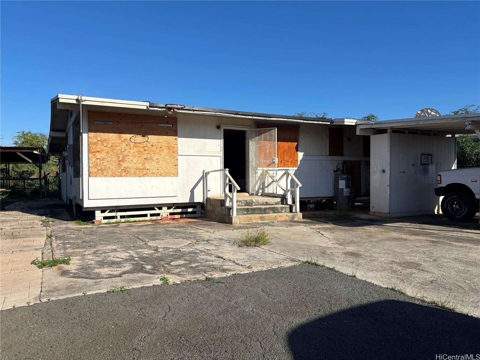 Rare Ewa Beach redevelopment opportunity on a 6,395 sq ft lot in an established single-family neighborhood. This 3-bedroom, 1-bath single-story home offers 1,634 sq ft of interior area and sits on a flat, usable parcel that backs to undeveloped Naval land, providing no rear neighbors at this time and added privacy. Built in 1971 with a permitted addition in 1987, the property presents a unique chance to rebuild, re-imagine, or create new in a location where lots of this size are increasingly hard to find. The existing dwelling is not habitable and is intended for contractor, investor, or redevelopment buyers looking to unlock the full value of the land.Conveniently located near beaches, golf courses, shopping, schools, and Kapolei amenities. This presents a rare opportunity to secure land value in Ewa Beach. Come and see it’s full potential.