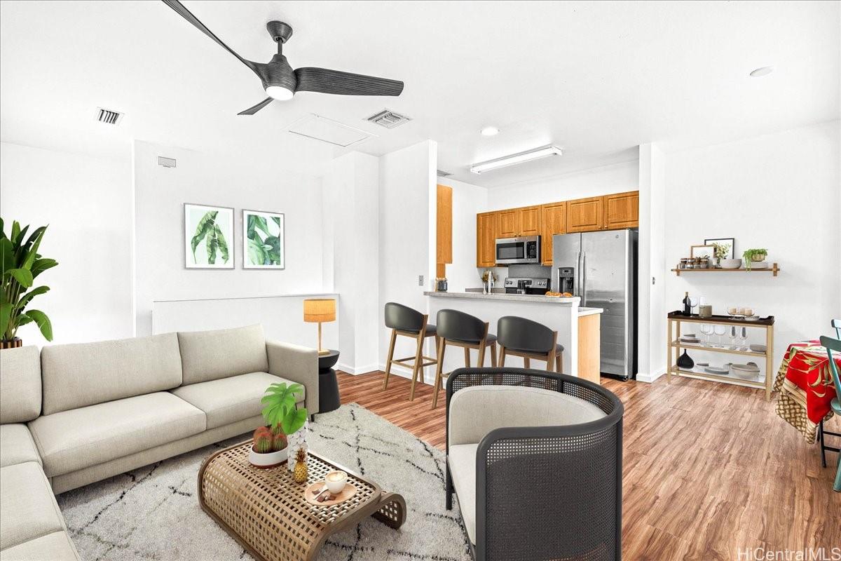 Priced below tax assessed value — this is the opportunity savvy buyers have been waiting for.Tucked into a well-established community, this end-unit townhome checks the boxes that matter: 3 bedrooms | 2 bathrooms | 2-car garage + bonus parking space. A first-floor bedroom adds flexibility for multi-generational living or a dedicated home office.Location delivers without compromise. Two shopping centers within easy reach offer dining, groceries, hardware, pharmacy, and banking — everything you need, close to home. Multiple parks nearby support the outdoor lifestyle Hawaii is known for.Community amenities include a pool and well-maintained common areas — the kind of neighborhood where pride of ownership shows.Don’t sleep on this one. Book your showing today.
