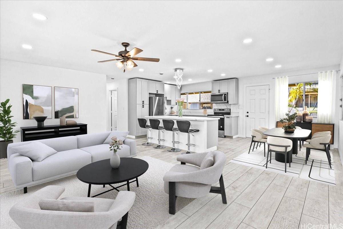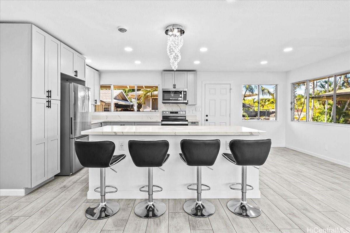 ワイアナエの静かな袋小路の角に位置する、美しく改装された3ベッドルーム2フルバスルームの1階建て住宅。 家の中心であるスタイリッシュなキッチンは、すべて新しいキャビネットと見事な花崗岩のカウンターが自慢で、家族や友人と集まるのに最適だ。 住居全体を通して、新しいドア、エレガントなシャンデリア、効率的なシーリングファン、新しい室内塗装など、現代的な仕上げが施されている。 耐久性のあるチェーン・リンク・フェンスで囲まれた庭は、スプリンクラー・システムで管理され、リラックスしたり遊んだりできるプライベートなオアシスとなっている。 屋根も新しくなり、安心してお住まいいただけます。 快適な暮らしとおもてなしのために設計されたこの物件は必見。 今すぐプライベートツアーをご予約いただき、この素晴らしいワイアナエの家での新しい生活を思い描いてください。 .