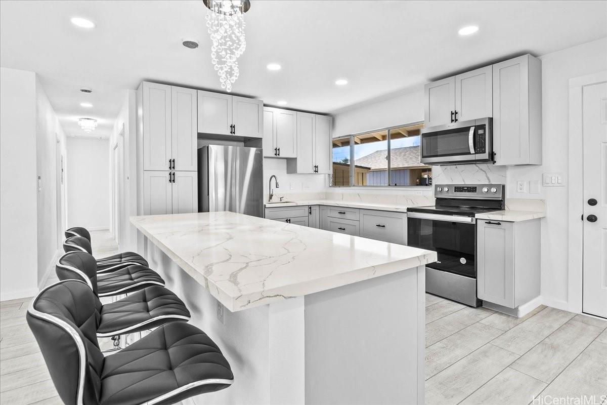 This beautifully remodeled, 3bedroom 2 full bathroom single-level home offers an idyllic retreat located on the quiet corner of a cul-de-sac in Waianae. The heart of the home, a stylish kitchen, boasts all new cabinetry and stunning granite counters, perfect for gathering with family and friends. Throughout the residence, discover contemporary finishes including new doors, elegant chandeliers, and efficient ceiling fans, fresh new interior paint. The fully enclosed yard, secured by a durable chain-linked fence and maintained with an integrated sprinkler system, offers a private outdoor oasis for relaxation or play. Major upgrades provide peace of mind, including NEWER ROOF!!!. This is a must-see property designed for comfortable living and entertaining, and it is entirely move-in ready. Schedule your private tour today and start envisioning your new life in this stunning Waianae home!.