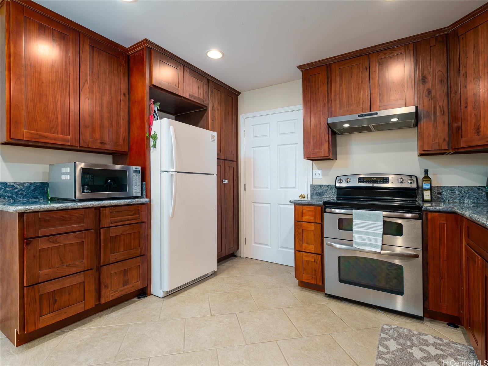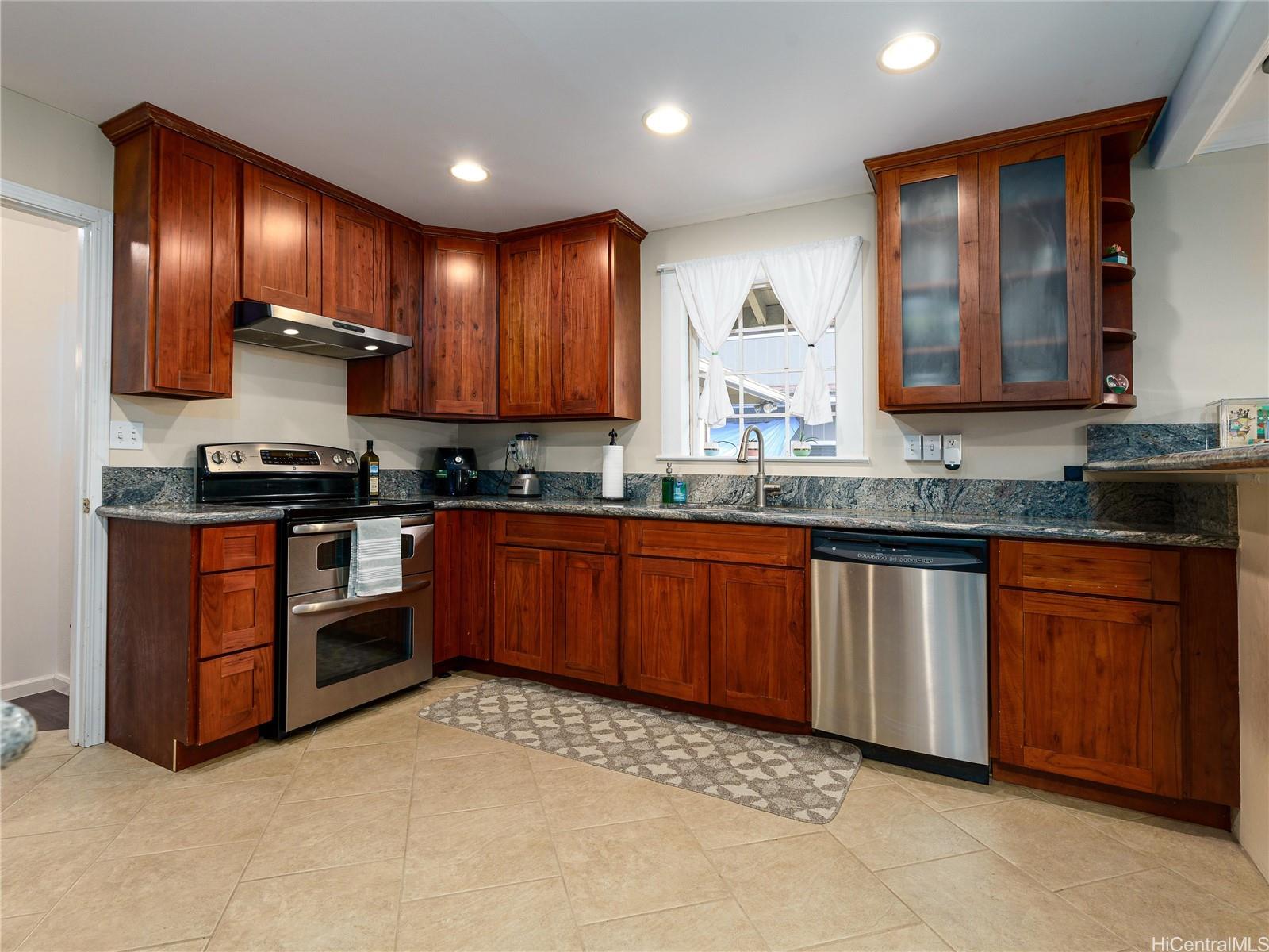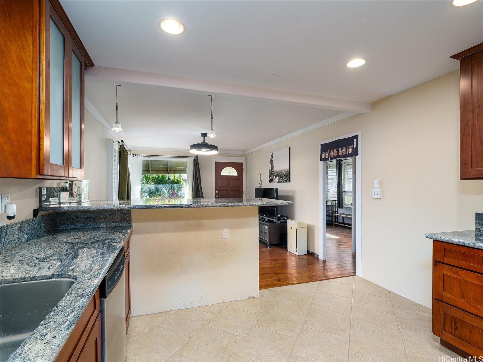 Welcome to this charming, move-in ready single-level home in the heart of Wahiawa! Thoughtfully renovated in 2010 and freshly painted (exterior and back half of the interior), This beautifully maintained 3-bedroom, 2-bath versatile property offers modern comfort with classic island character.The flexible floor plan allows for a 2-bedroom, 1-bath main living area plus a 1-bedroom, 1-bath guest suite — perfect for multi-generational living, rental potential, or additional privacy for guests. Enjoy the bright and open living space featuring hardwood flooring, a beautifully upgraded kitchen with granite countertops, wood cabinetry, and stainless steel appliances.The 72 sq. ft. covered lanai provides a relaxing outdoor space, while the carport and long driveway offers parking for multiple vehicles. 15 owned solar panels, keeping utility costs low. Conveniently located near schools, parks, shopping, Schofield Barracks, Wheeler Army Airfield, and a short drive to North Shore beaches. Schedule a showing today!!