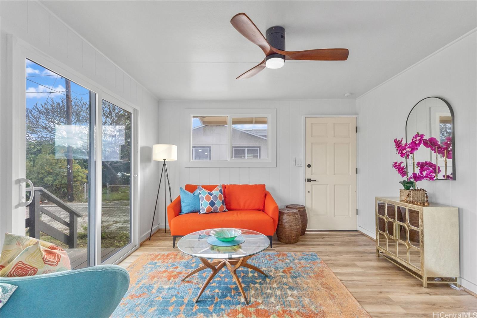 Welcome to Kalihi Gardens. A well maintained 2 bedroom, 1 bath unit offers ceramic tile flooring throughout, renova ...