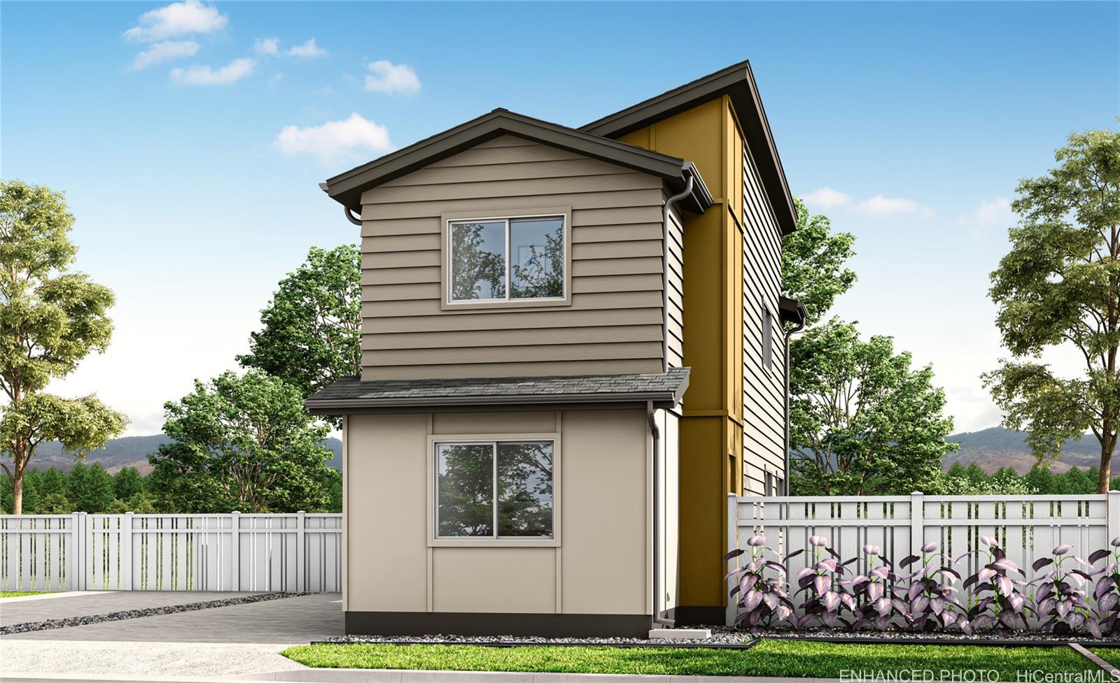 Brand new community. The first phase of ‘Ahakea features four, two-story floor plans of single-family detached condominium units ranging from 880 to 997 square feet of net living area. Each home has designer selected flooring packages, whole house split air conditioning and stainless steel appliances. Every residence comes with an expanded, Home Is Connected®-Smart Home system. This Gen4 plan 3 bedroom and 2 bathroom Single Family Condominium Home consists of 979 square feet (net) of living area and your own private yard area complete with irrigated planter box.When you step into this home, you will be greeted by the kitchen featuring stainless steel appliances, white cabinets, and a super-efficient great room. The second level features two secondary bedrooms and a bathroom with a combination bathtub and shower and a bonus area.