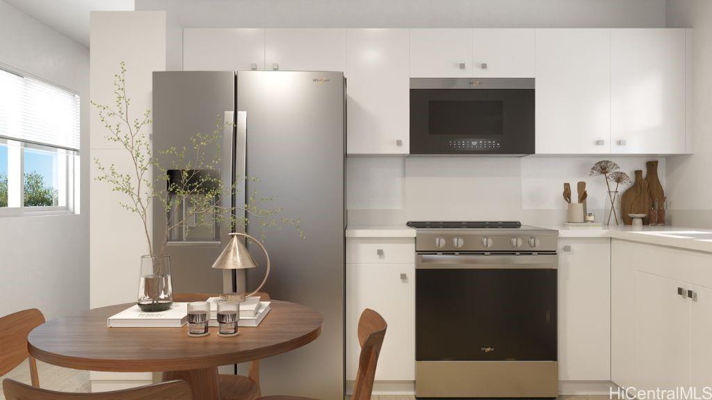 Brand new community. The first phase of ‘Ahakea features four, two-story floor plans of single-family detached condominium units ranging from 880 to 997 square feet of net living area. Each home has designer selected flooring packages, whole house split air conditioning and stainless steel appliances. Every residence comes with an expanded, Home Is Connected®-Smart Home system. This Gen3 plan 3 bedroom and 2 bathroom Single Family Condominium Home consists of 959 square feet (net) of living area and your own private yard area complete with irrigated planter box. When you step into this home, you will be greeted by your two secondary bedrooms centered around a generous bonus space. Go up the stairs to an innovative second floor kitchen/living room/primary bedroom design.
