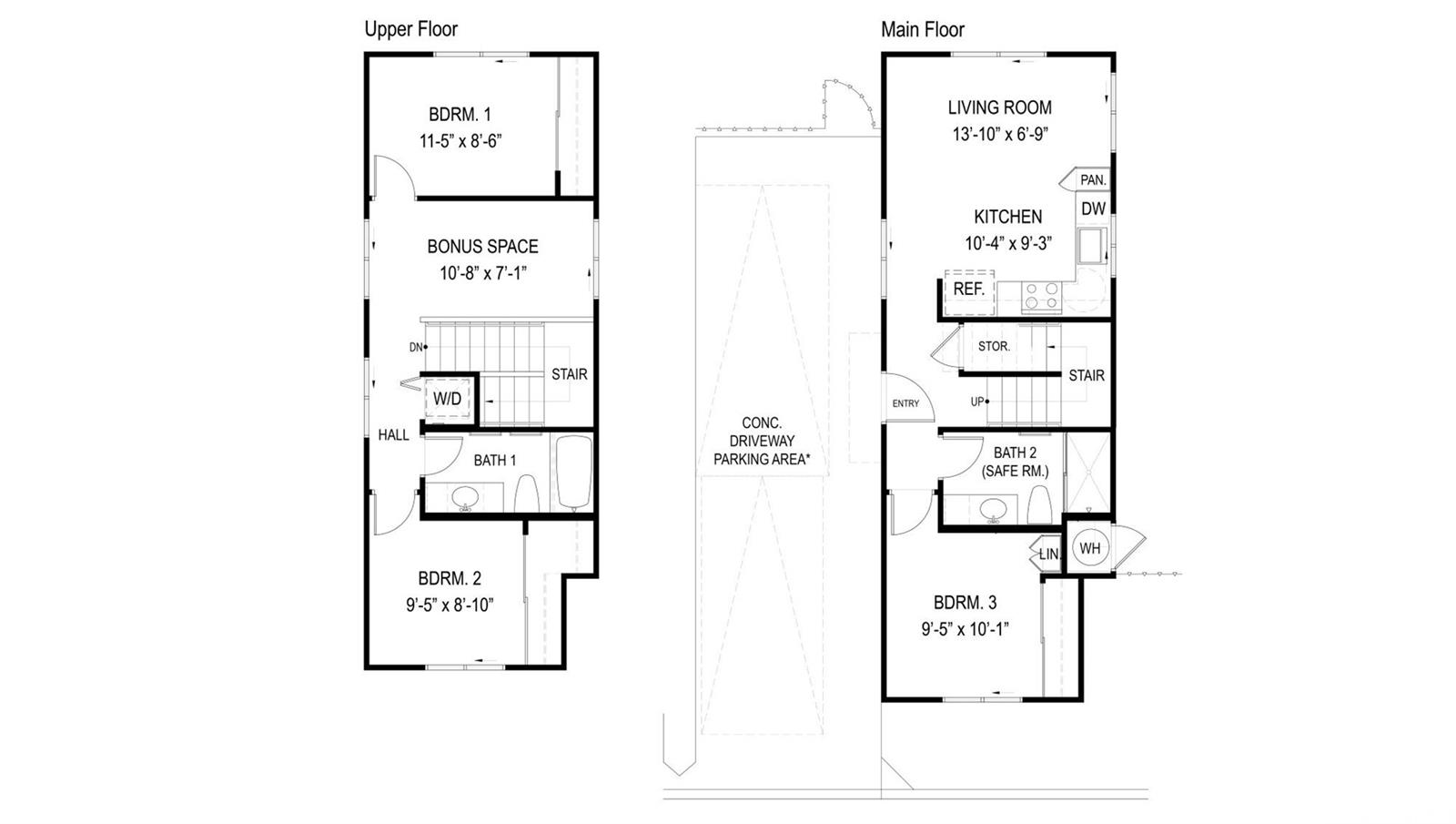 This two story 3-bedroom 2-bathroom detached single family home consists of 997 square feet of net living area and a fully fenced private back yard area. When you step into this home, you will be greeted by the kitchen featuring stainless steel appliances and white soft-close cabinets. The kitchen flows seamlessly into the living room, perfect for entertaining guests or relaxing after a busy day. Also on this floor is a primary bedroom with a walk-in shower and vanity. Upstairs, you will find a bonus room, perfect for a home office, game room, or play area. Also on this floor are two secondary bedrooms and a bathroom with a shower-tub combination to help complete the home. Whole house split air conditioning and modern appliances including a range/oven, micro-hood, dishwasher, refrigerator, and washer/dryer allow for ease of living.