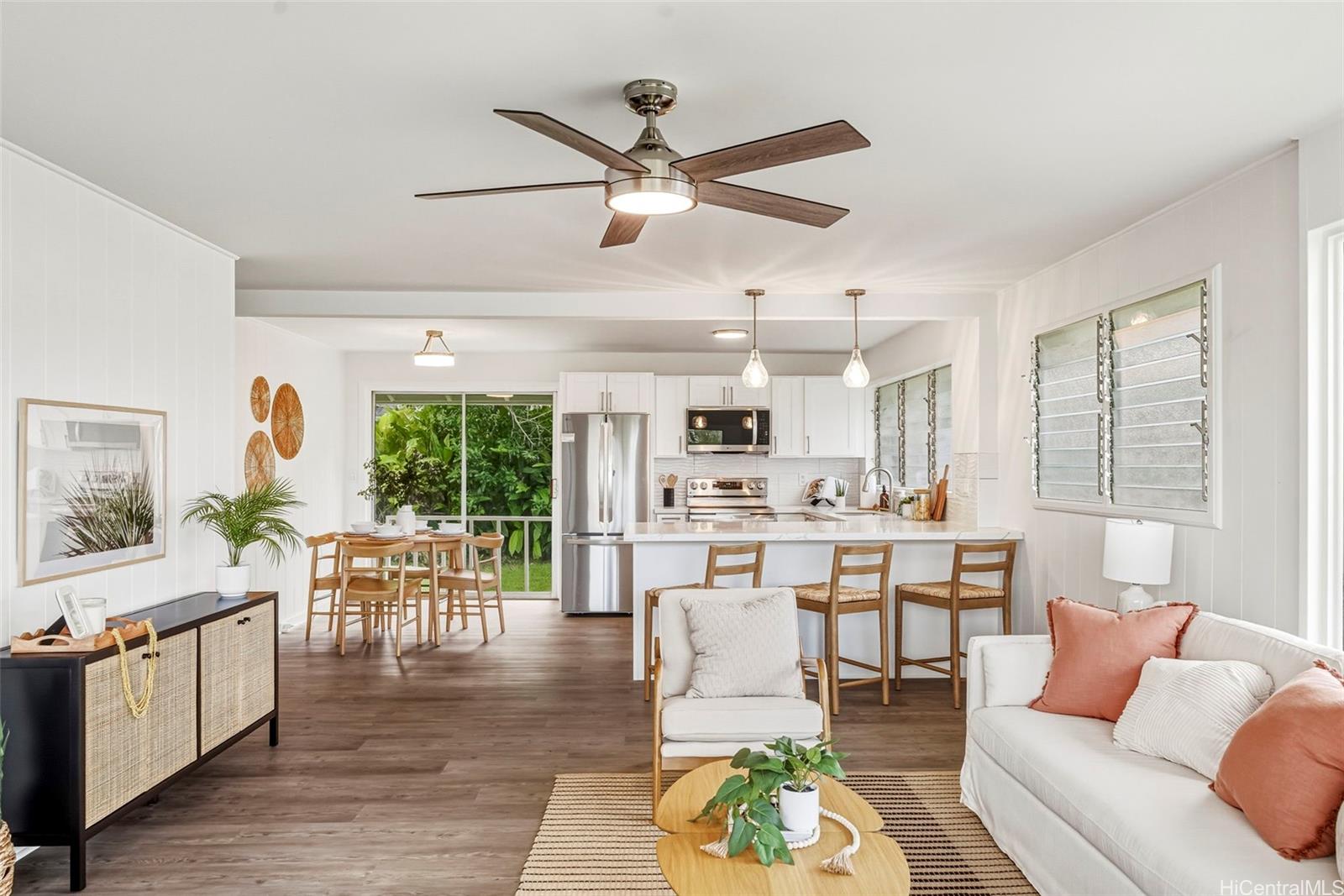 ワヒアワにあるこの素敵な一戸建て住宅での暮らし。 この3ベッドルーム、2バスルームの住宅には、今年新しくキャビネット、洗面化粧台、家電製品が導入されたモダンなキッチンとバスルームが備わっています。 キッチンはリビングルームに面している。 キッチンには十分な収納スペースと機能的なレイアウトが備わり、床全体に新しいビニール床材が敷かれています。 内外装全体が最近塗装されました。 屋外には、広々とした庭が広がり、手入れの行き届いた植栽が施されています。屋外での集まりやガーデニングに最適です。 カーポートと車道は4台の駐車が可能です。 ワヒアワ・タウンの店舗や飲食店、スコフィールド兵舎、ウィーラー陸軍飛行場から近い場所に位置しています。 静かな環境を楽しみながら、島の他のエリアへも簡単にアクセスできます。 .