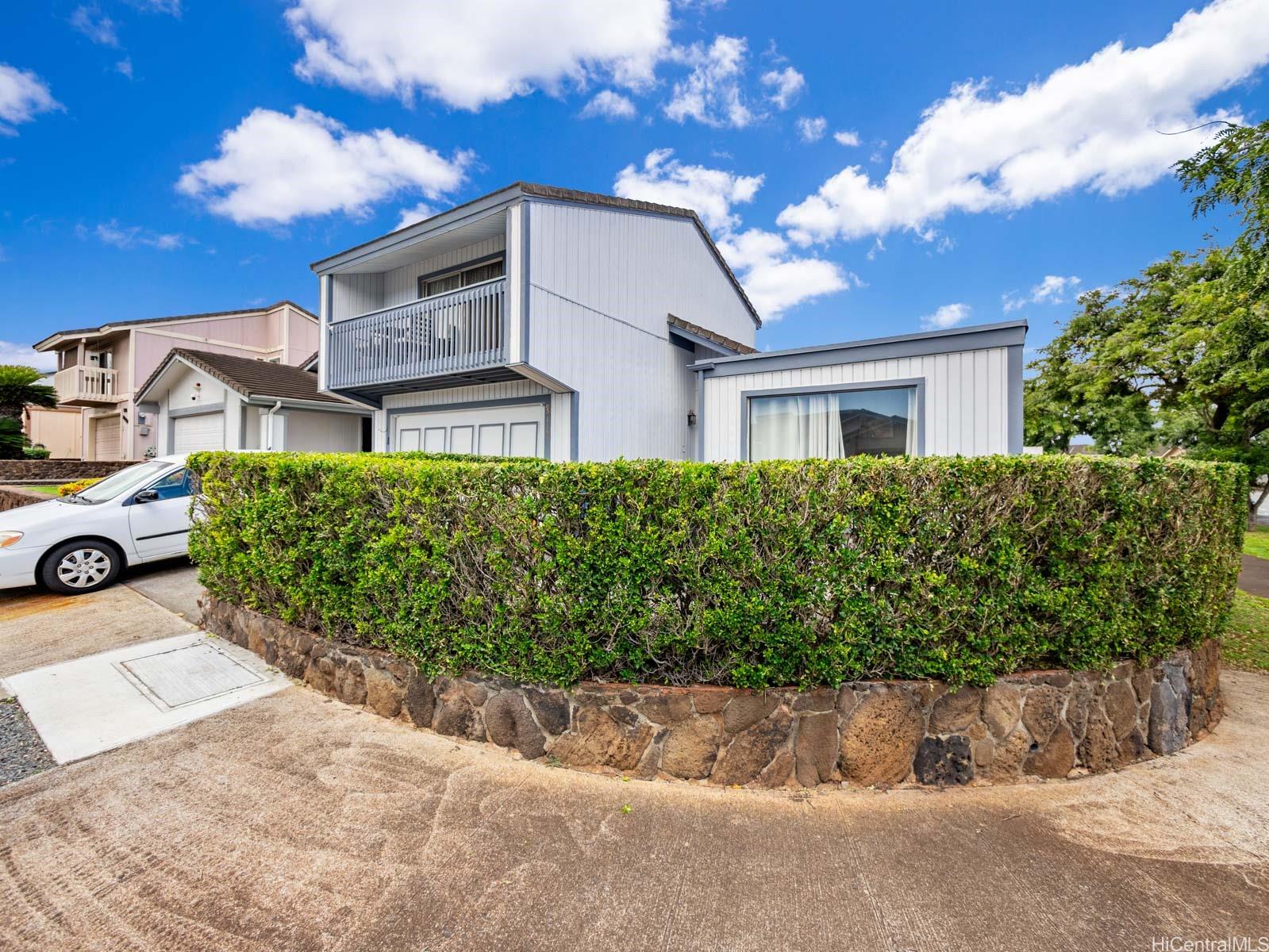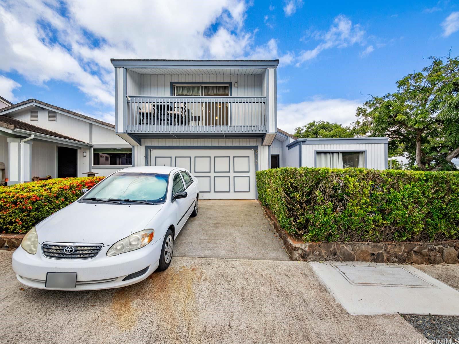 Bring your vision and unlock the full potential of this diamond in the rough! Located in the highly-desirable Waipio Gentry community with an incredibly low $18/month HOA, this spacious 3-bedroom, 2.5-bath home offers just under 1,800 sq ft of living space and endless opportunity. Featuring brand new exterior paint and a unique, functional layout with all bedrooms and full bathrooms downstairs, plus a massive upstairs family room with a half bath powder room. Enjoy high vaulted ceilings, a private, fully-enclosed courtyard, and a balcony showcasing stunning Diamond Head, ocean, city, and mountain views. While other homes in the community are zero lot line, this incredible corner lot stands on it’s own! Conveniently located near freeway access, Costco, shopping, schools, and more, this home offers 4 total parking, including a 2-car garage and extended driveway to fit two additional vehicles. The interior of the home is original and ready for your personal touch – sold As-Is. Don’t miss your chance to create something truly special! Call your favorite local Realtor to schedule your private showing today!
