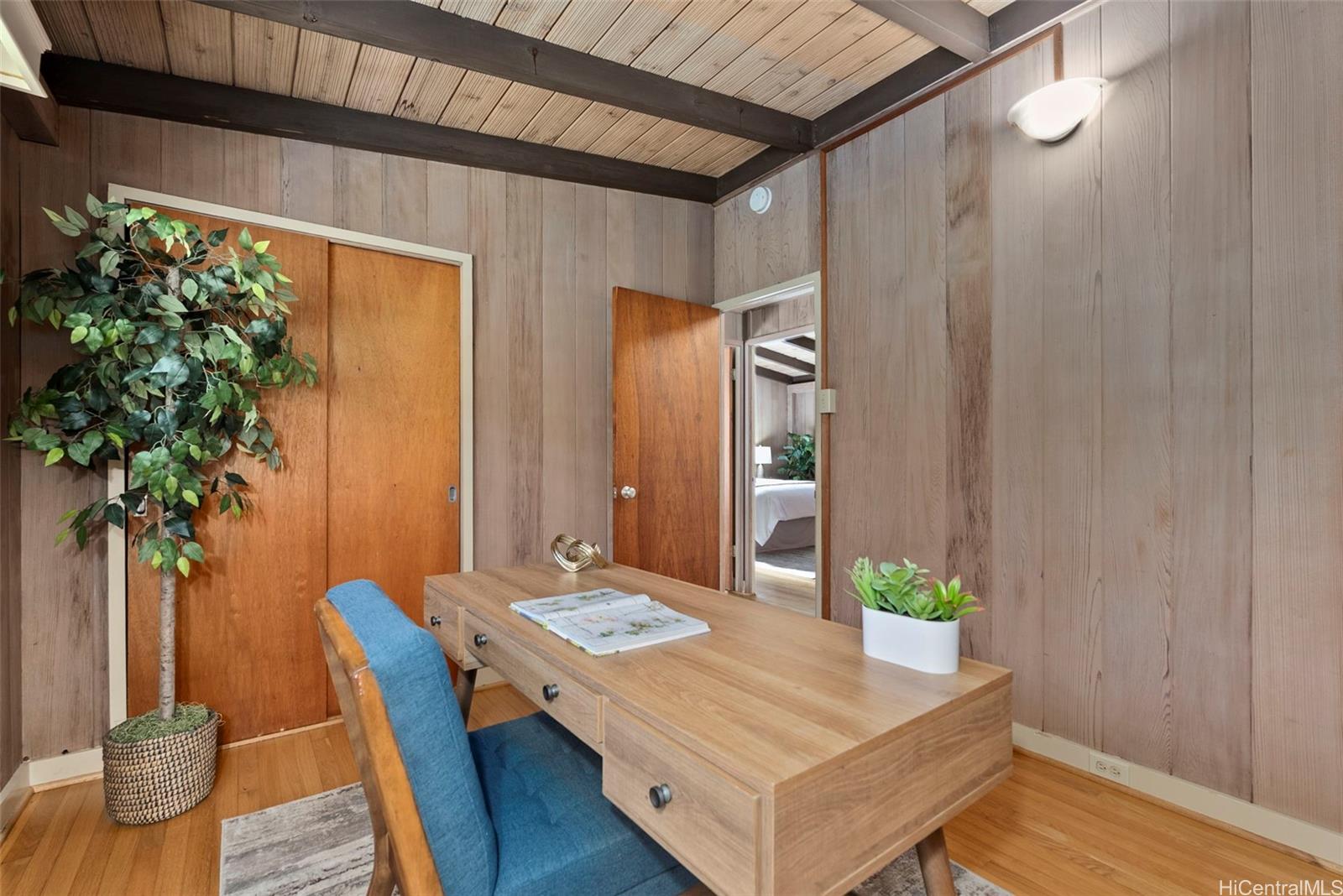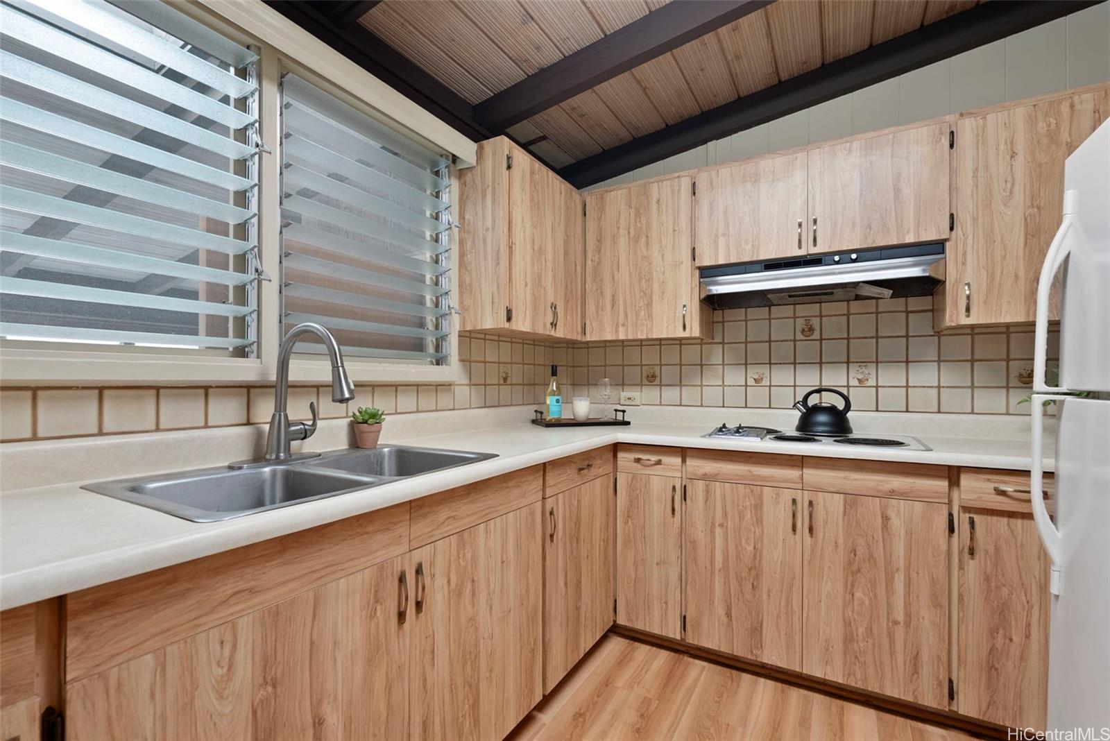 NEW LISTING! Gorgeous, move-in-ready 3 bedroom, 1.5 bath home near the lake in Wahiawa. This classic kamaaina charmer sits on a peaceful side street and is being offered for the first time. Set on a prime mostly level lot, the home has been lovingly maintained and features beautiful original hardwood floors and redwood walls. A spacious extension adds flexibility for a family room, home office, or entertaining space. Recent improvements include a freshly painted exterior, serviced split AC units, updated fixtures, newer washer and 9-year-old roof. The property also offers large storage areas in the carport and plenty of grassy yard space for pets and children. Enjoy cool breezes, quiet surroundings, and convenient access to Wahiawa town, restaurants, parks, schools, and Schofield. Do not miss one of the best values in Wahiawa!