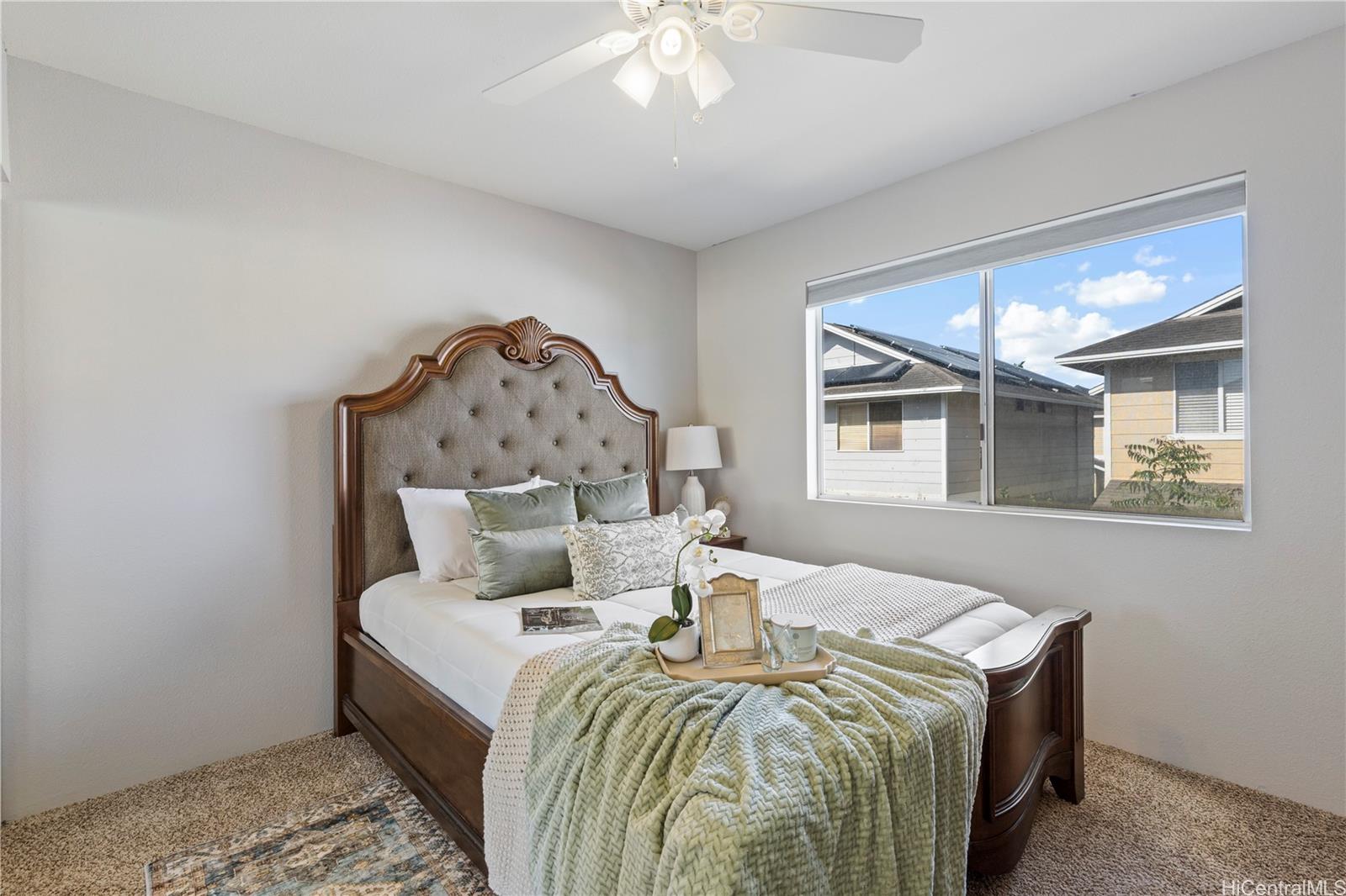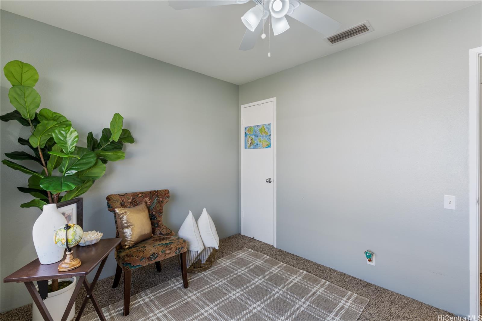 Centrally located in the heart of Ewa Beach sites this 3 bedroom 2.5 bath Terraza home with a patio made for entertaining. Enjoy the owned (financed) solar panels that take the “heat” off the energy costs when using the central air! Spacious primary room, with 2-car garage with a new garage door opener and a driveway that will accommodate 2 additional vehicles. Renovated Kitchen and brand-new dryer. The community pool, park, and events put on by the Association are all within minutes of shopping, restaurants, and beaches, makes this an ideal place to call “home”. VA ASSUMABLE rate at 4.625%!