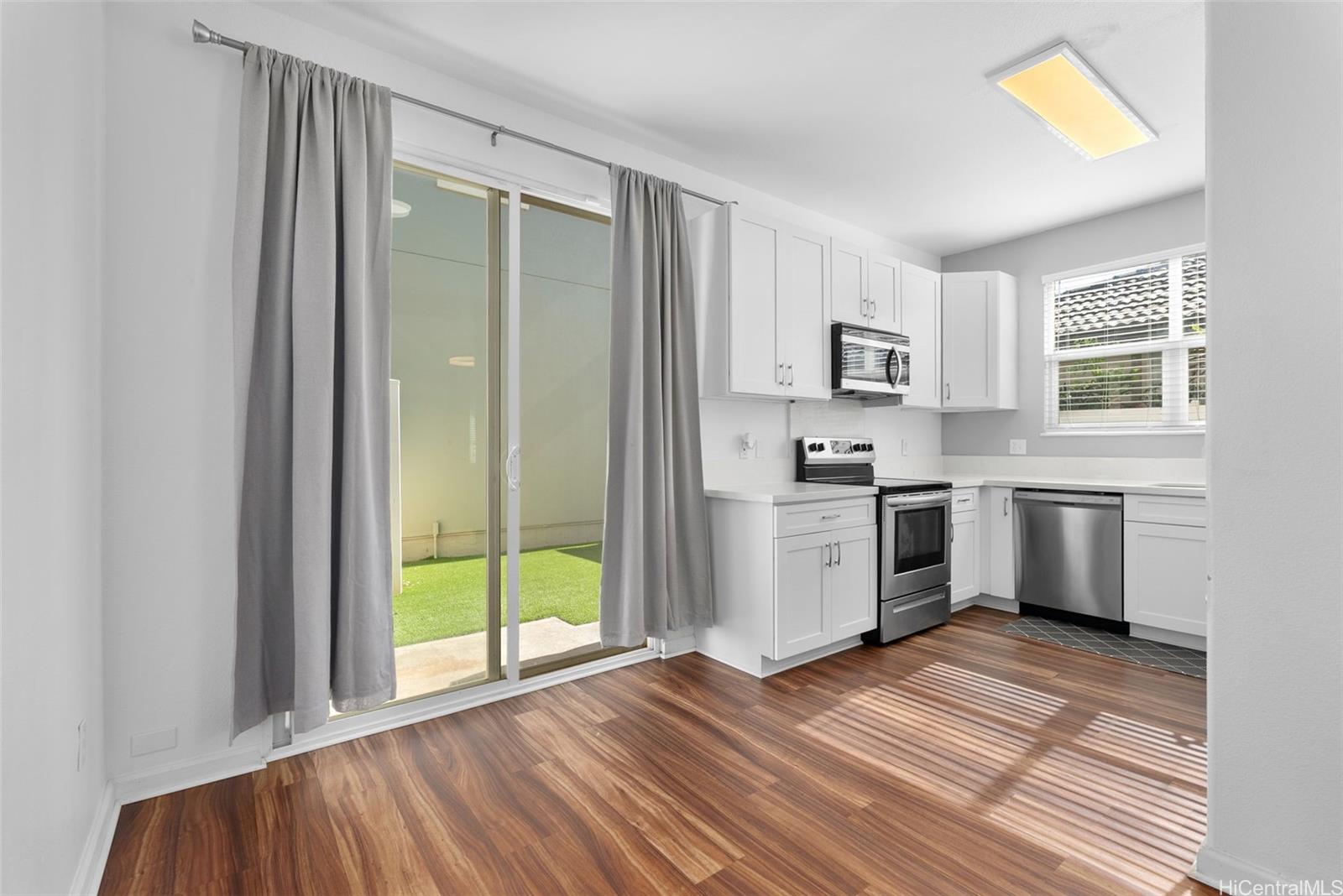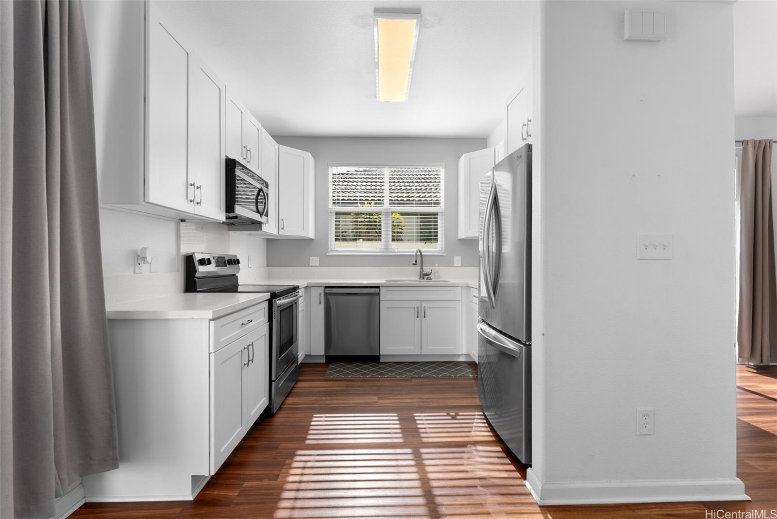 すぐにお住まいいただける3ベッドルーム、2バスルームのお住まいへようこそ。 イワラニの5バスルーム住宅!高い天井と豊かな自然光が温かく居心地の良い空間を創り出します。 キャビネット、クォーツカウンター、モダンな家電を備えた、全面的にアップグレードされたキッチンをお楽しみください。 2つのラナイのいずれかでくつろぐか、2階へ上がれば広々とした3つのベッドルームが待っています。主寝室には美しく改装された専用バスルームが備わり、ダブル洗面台とウォークインシャワーを完備しています。 追加の特典として、太陽熱温水器と2台分のガレージが備わっています。 通りの向かいには遊び場があり、近くにはカポレイ・コミュニティ公園とカポレイ・ビレッジズ・レクリエーションセンターがあります。プール、コート、野球場、フィットネスエリア、パーティホールなどを提供しています。 3以内に。 5マイル圏内には、ショッピングや食事に便利なコストコ、カポレイ・コモンズ、カ・マカナ・アリイがあります。 わずかな費用で、レクリエーションセンターに入会できます。 カポレイの村々には、プライベートパーク、歩行者・自転車専用道、そして開放的な緑地も備わっています。 高速道路へのアクセスが容易で、オアフ島の他の地域へも簡単に移動できます。 管理費なし、HOA(管理組合費)は月額53ドルのみ。 いくつかの写真はバーチャルステージング(加工)されています。 .