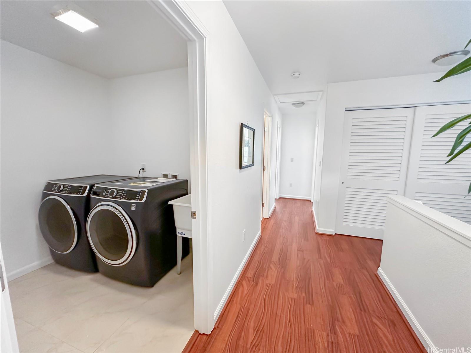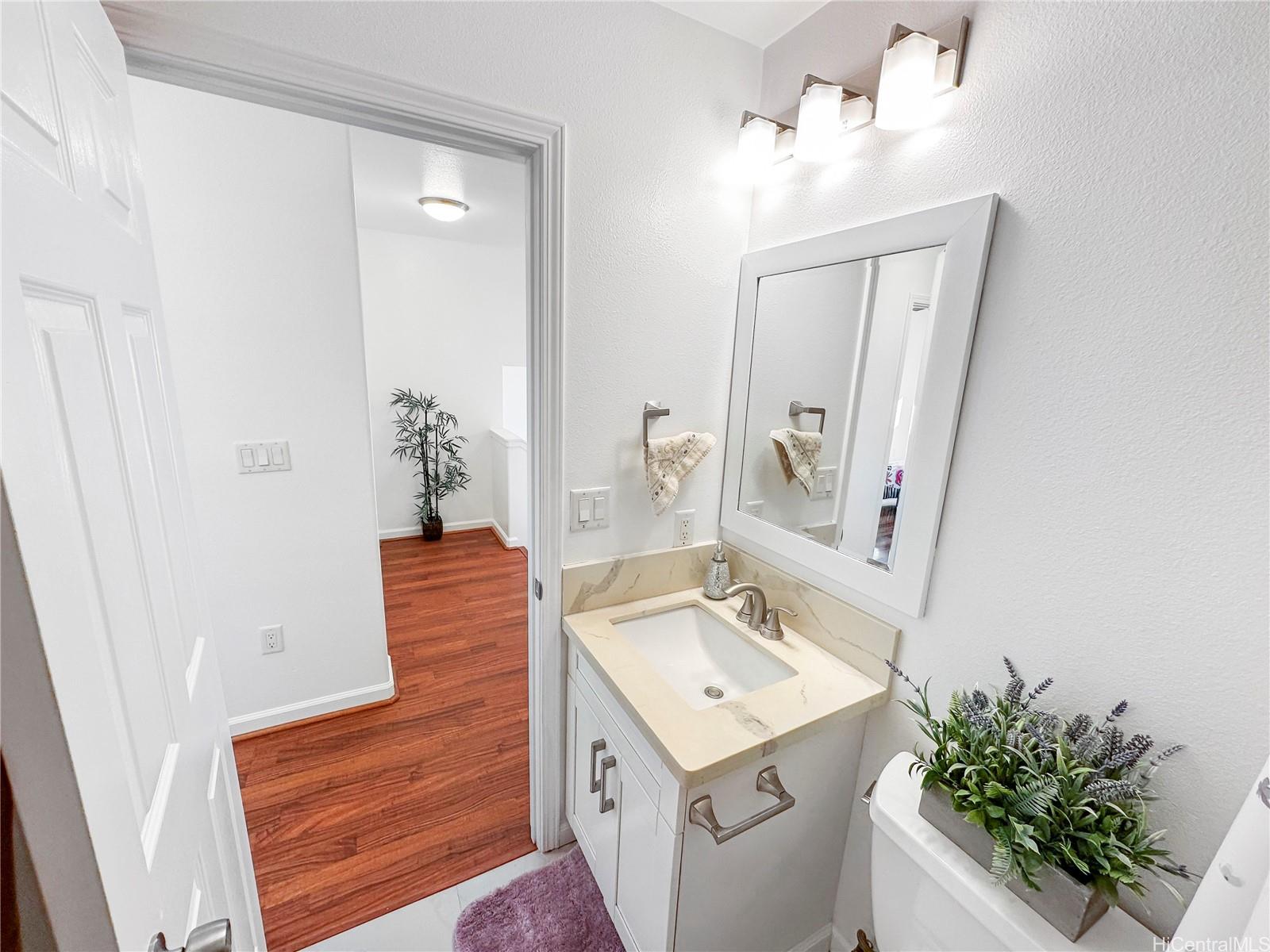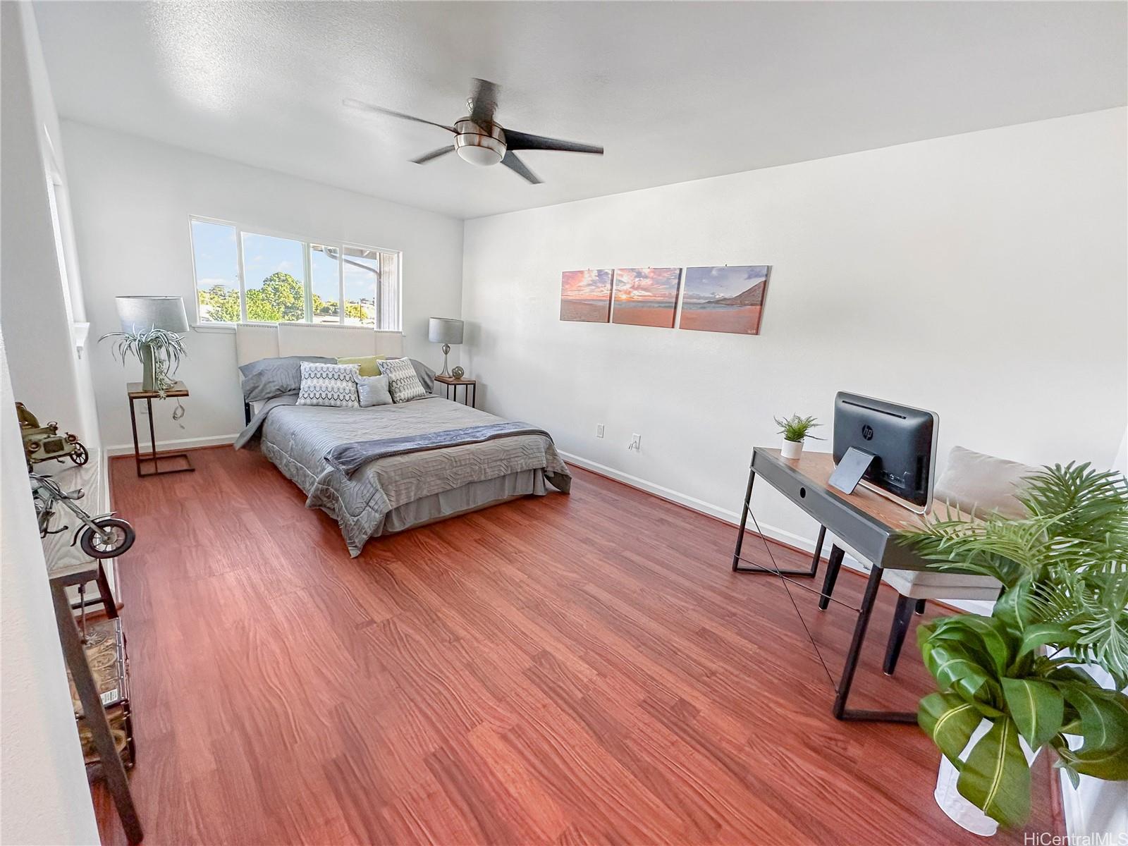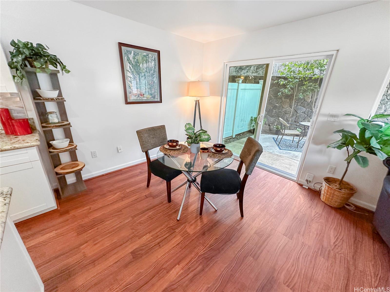 Price Drop $27K See is you qualify for this low HOA fee home. In almost new condition- recent updates. This stunning, like-new 3-bedroom, 2.5-bath duplex in the desirable Robinson Heights of Waipahu. Built in 2016, this two-story home features an open floor plan with an abundance of windows to bring in natural light. Enjoy modern living with ceramic tile, new luxury vinyl planks on the entire lower level, upper hall, and primary bedroom, as well as Koa laminate flooring on the stairs and in two of the bedrooms. Each room also has a ceiling fan. The kitchen boasts a new stainless steel appliance package and stone counters. The kitchen breakfast bar is a nice addition to the dining options. Tucked away on a quiet cul-de-sac, this home offers mountain views, a one-car garage, and NO maintenance fees, only a single low association fee. Ideal for 1st time buyers or those seeking a move-in property with investment potential. Conveniently located near schools, parks, and shopping. A private fenced backyard, with just enough room to start a garden. Seller is participating in a 1031 exchange at no cost to the buyer. Easy to show on short notice, most days. Open House Nov 30 2-4pm
