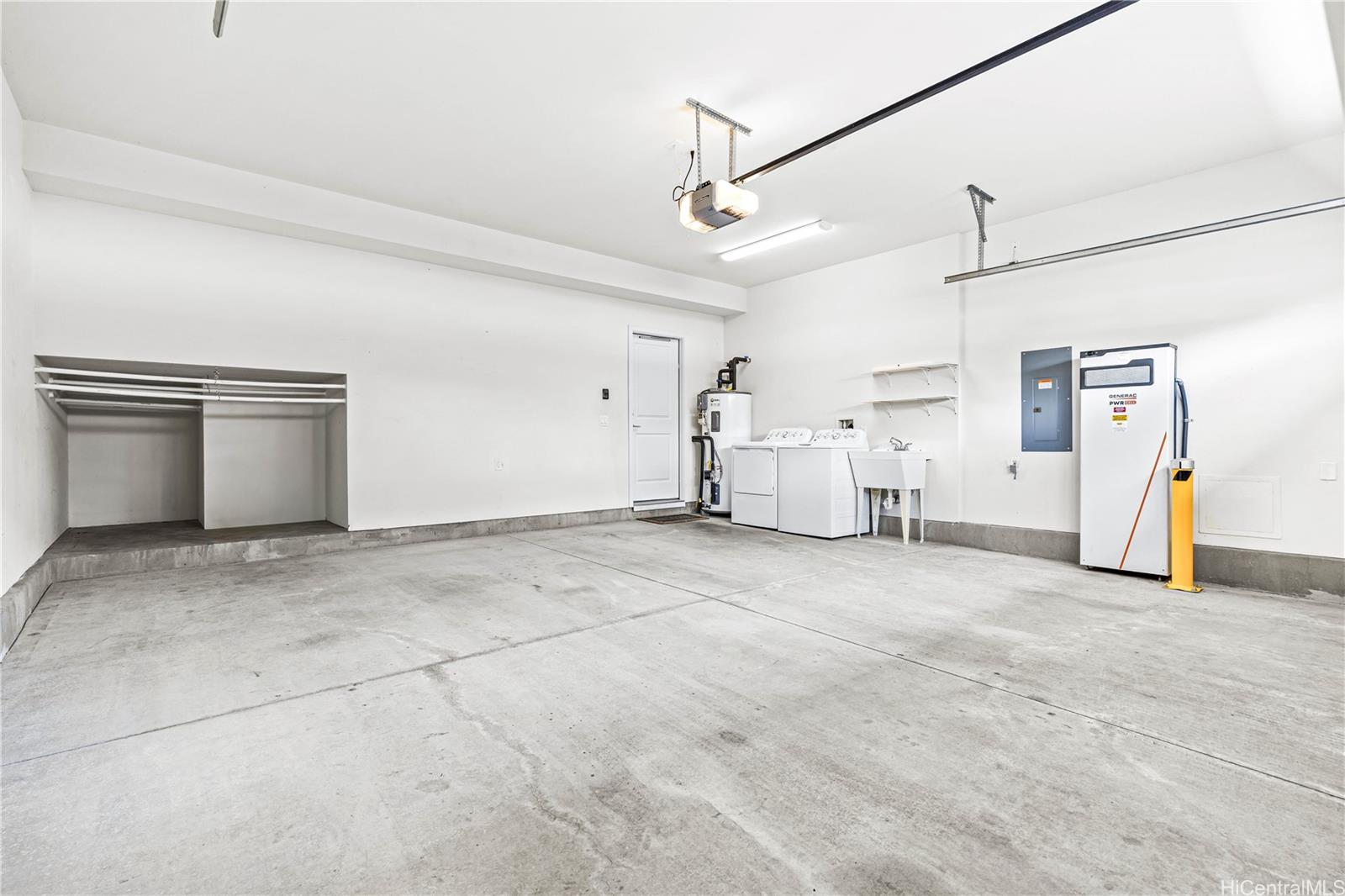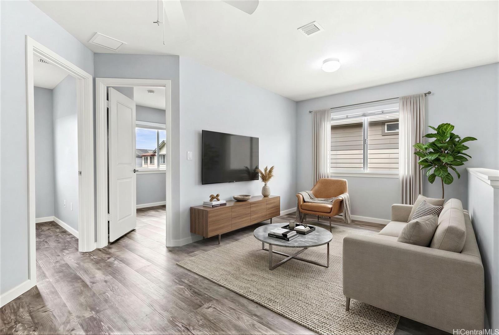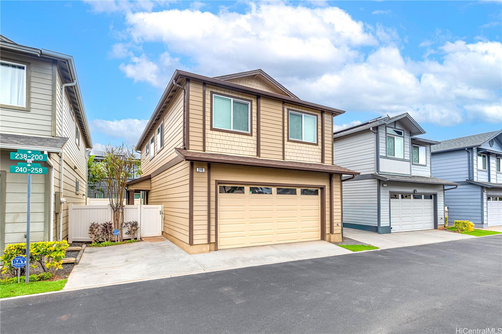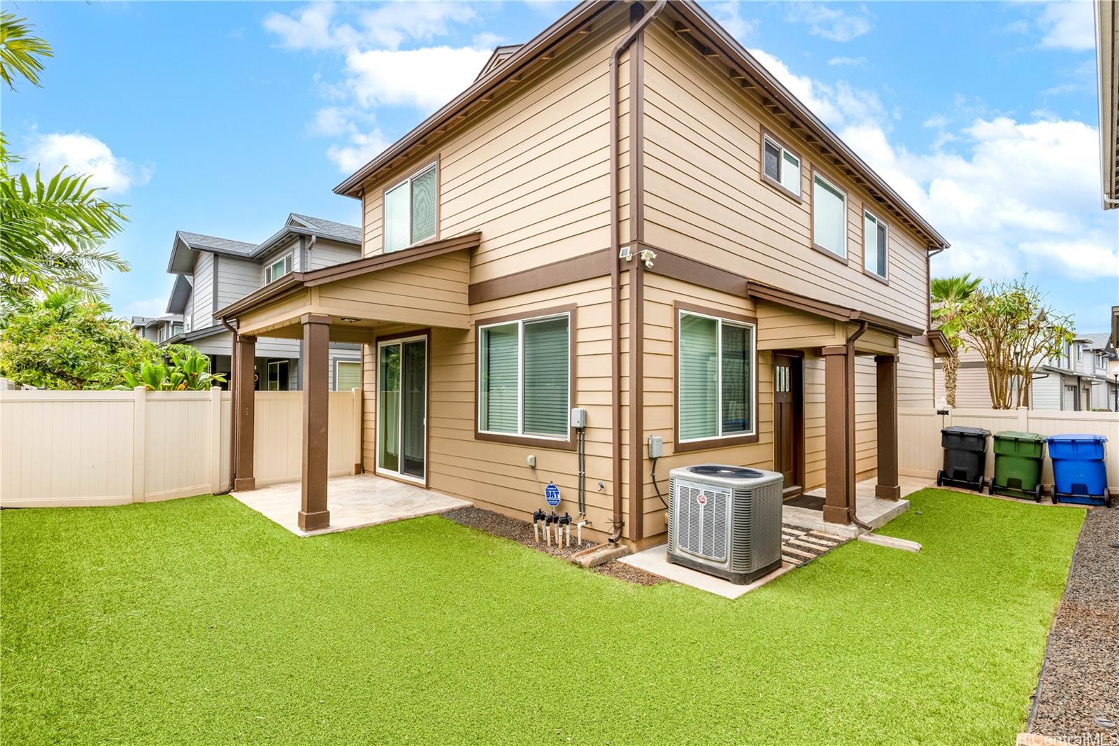 Experience elevated island living in this spacious and energy-efficient 3-bedroom, 2.5-bath residence with a 2-car garage PLUS a rare 3rd parking stall in the highly sought-after Seabridge community in Ewa Beach. Thoughtfully designed for both comfort and functionality, this home features an upstairs loft, perfect as a second living area, home office, or playroom.The large primary bedroom features a generous walk-in closet and abundant space for relaxed everyday living. Downstairs, enjoy an open-concept living and dining area ideal for daily living and entertaining.Equipped with 14 owned PV panels, a battery system, and a solar water heater, this home provides enhanced energy efficiency and savings. Step outside to your private yard featuring low-maintenance artificial turf, ideal for outdoor gatherings, pets, or simply enjoying the island breeze. Conveniently located near shopping, dining, beaches, and golf courses, this home offers the perfect blend of modern living and island convenience in the heart of Ewa Beach!
