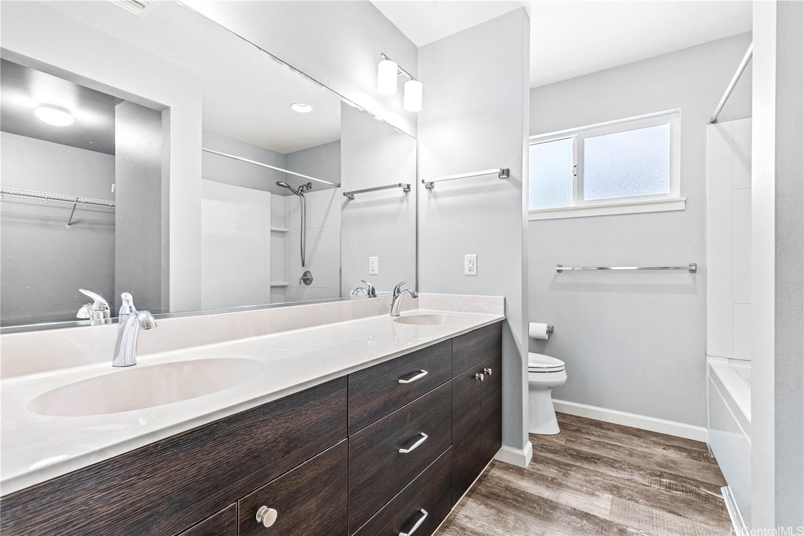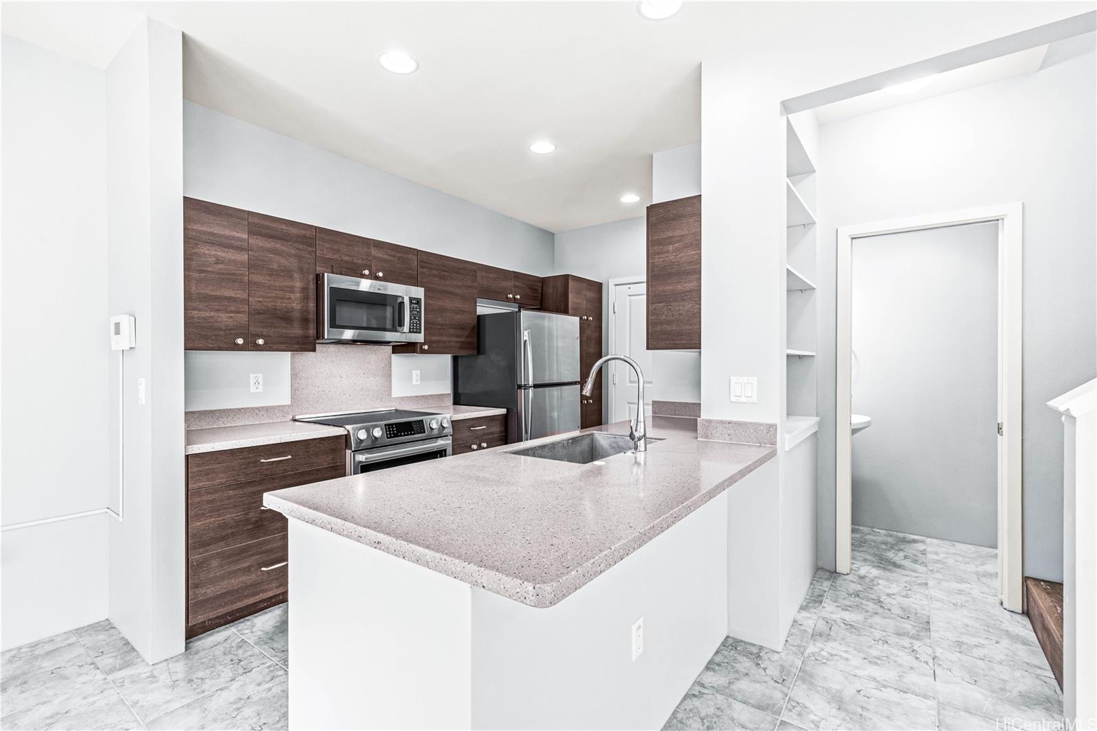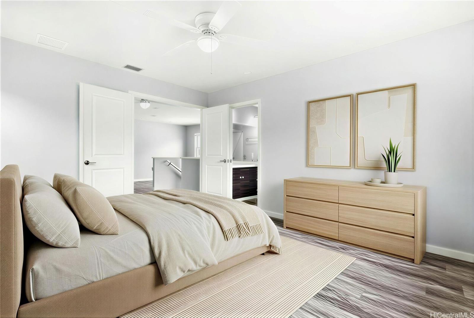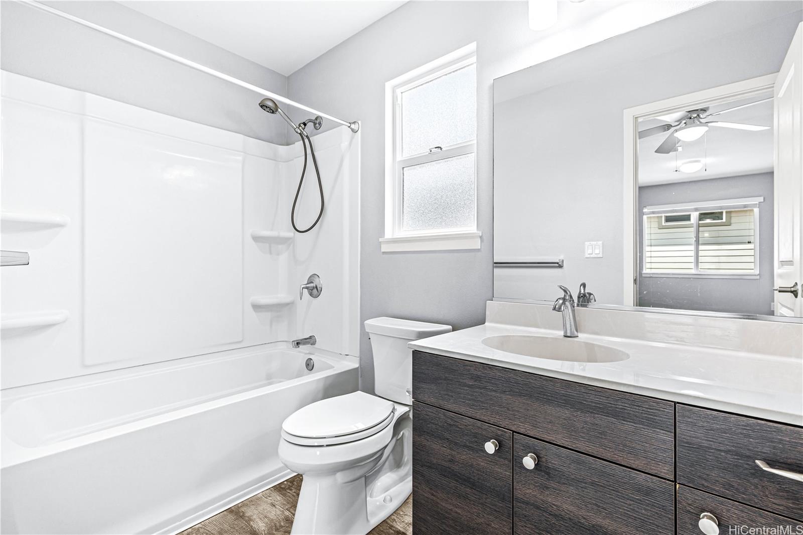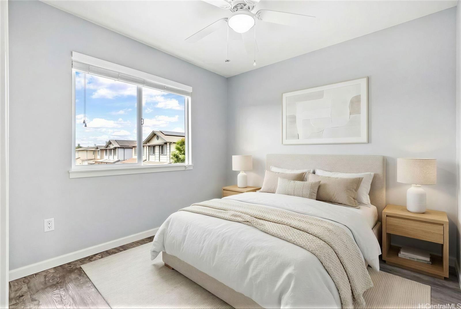 Experience elevated island living in this spacious and energy-efficient 3-bedroom, 2.5-bath residence with a 2-car garage PLUS a rare 3rd parking stall in the highly sought-after Seabridge community in Ewa Beach. Thoughtfully designed for both comfort and functionality, this home features an upstairs loft, perfect as a second living area, home office, or playroom.The large primary bedroom features a generous walk-in closet and abundant space for relaxed everyday living. Downstairs, enjoy an open-concept living and dining area ideal for daily living and entertaining.Equipped with 14 owned PV panels, a battery system, and a solar water heater, this home provides enhanced energy efficiency and savings. Step outside to your private yard featuring low-maintenance artificial turf, ideal for outdoor gatherings, pets, or simply enjoying the island breeze. Conveniently located near shopping, dining, beaches, and golf courses, this home offers the perfect blend of modern living and island convenience in the heart of Ewa Beach!