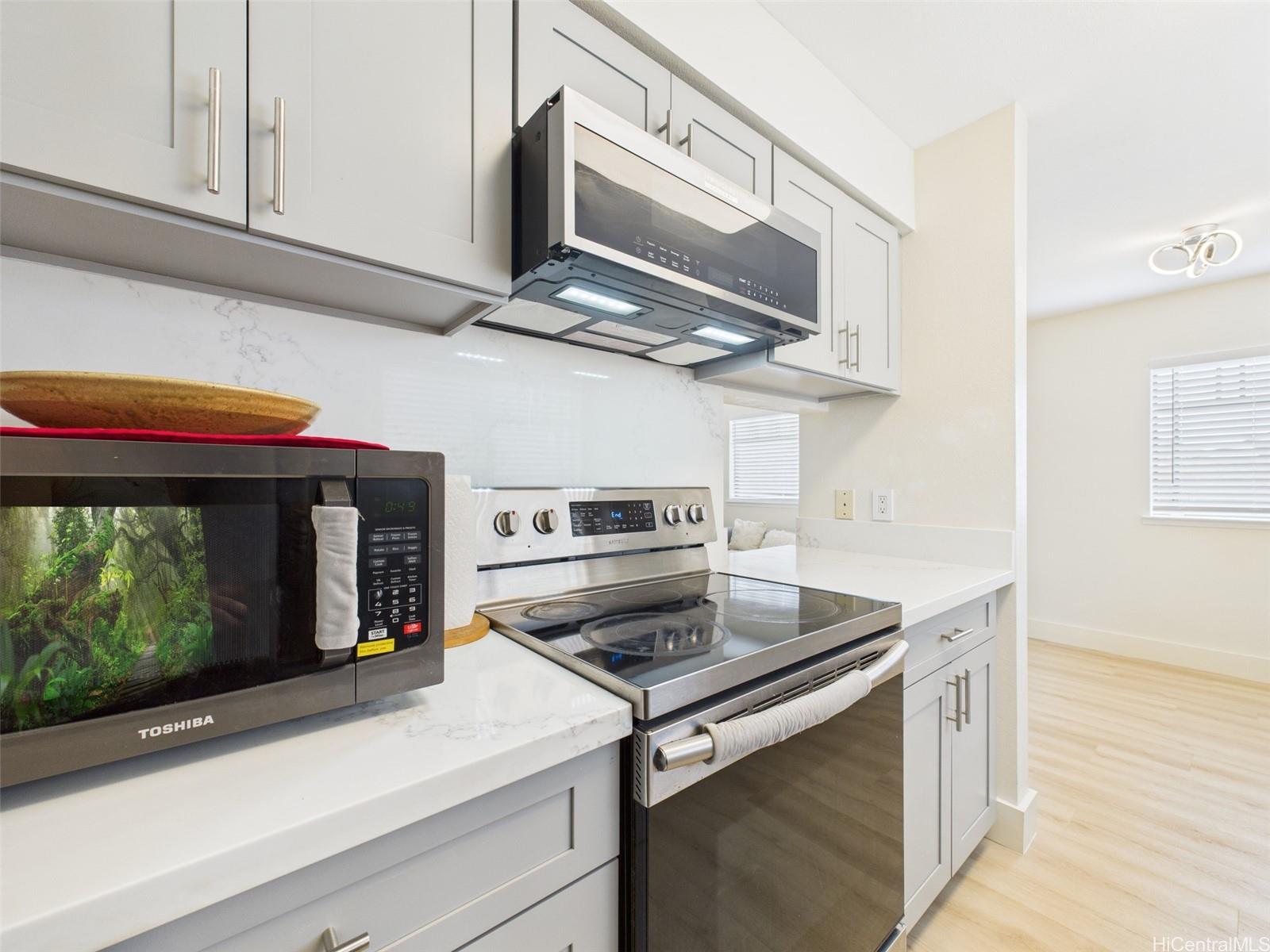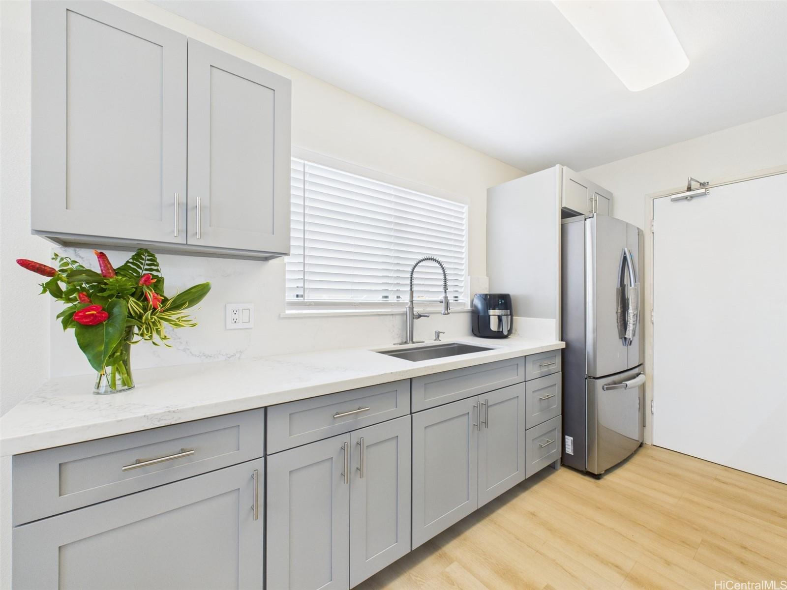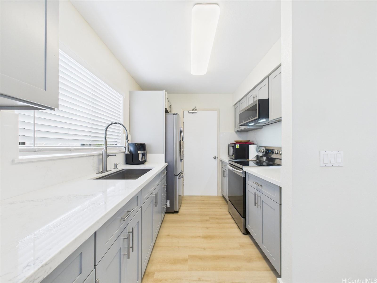 Don’t miss the LOWEST PRICED single family home in Royal Kunia, an unbeatable opportunity to own a fully upgraded gem in this vibrant community! Enter into a move in ready masterpiece with a freshly transformed interior, showcasing brand new kitchen cabinets, stunning quartz countertops, and a matching quartz backsplash that elevate the heart of the home. The kitchen shines with a new undermount sink, sleek faucet, and a brand new microwave, complemented by newer stainless steel appliances ready for your culinary creations. Luxury vinyl flooring flows seamlessly throughout, paired with fresh interior paint for a crisp, modern feel. Both bathrooms boast new vanities, toilets, and shut off valves for added peace of mind. The spacious carport and driveway easily accommodates two vehicles. Nestled in the welcoming Royal Kunia community, you are just minutes from top rated schools, golf courses, shopping, and dining. And how could you forget that wrap-around yard, perfect for relaxing or entertaining guests! Will this be another home that got away? Well that’s up to you! Open House: Sunday 11/30, 2 to 5 PM.