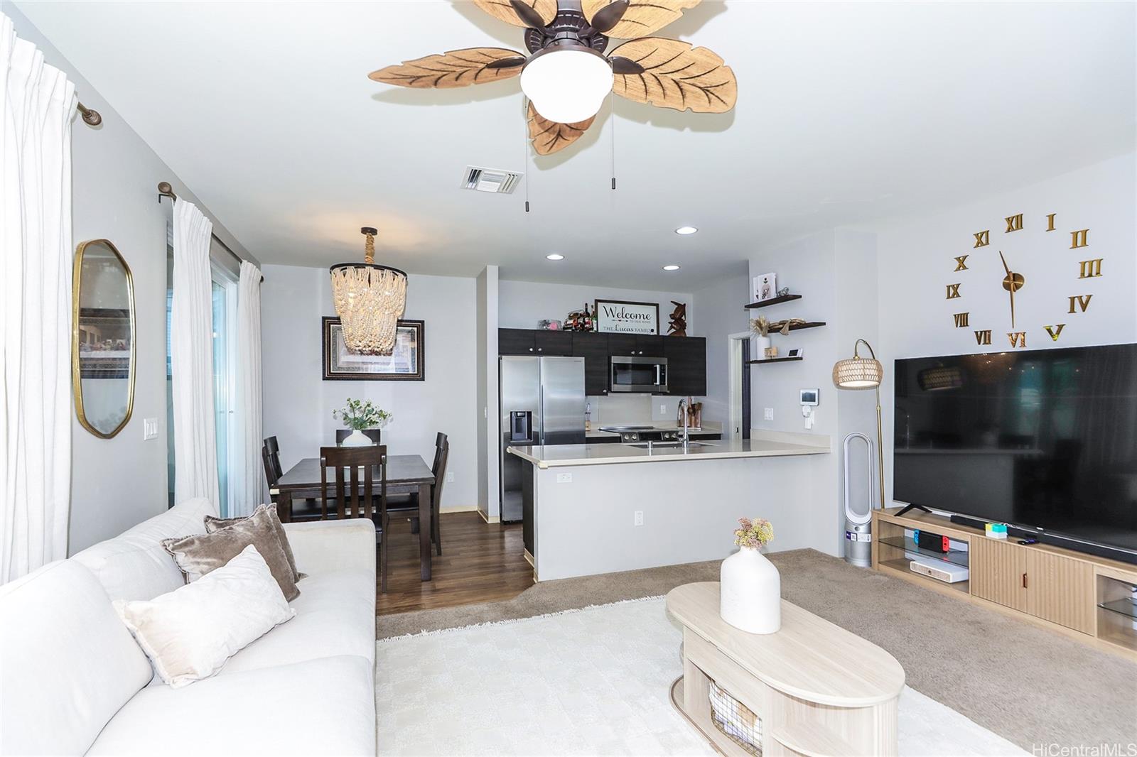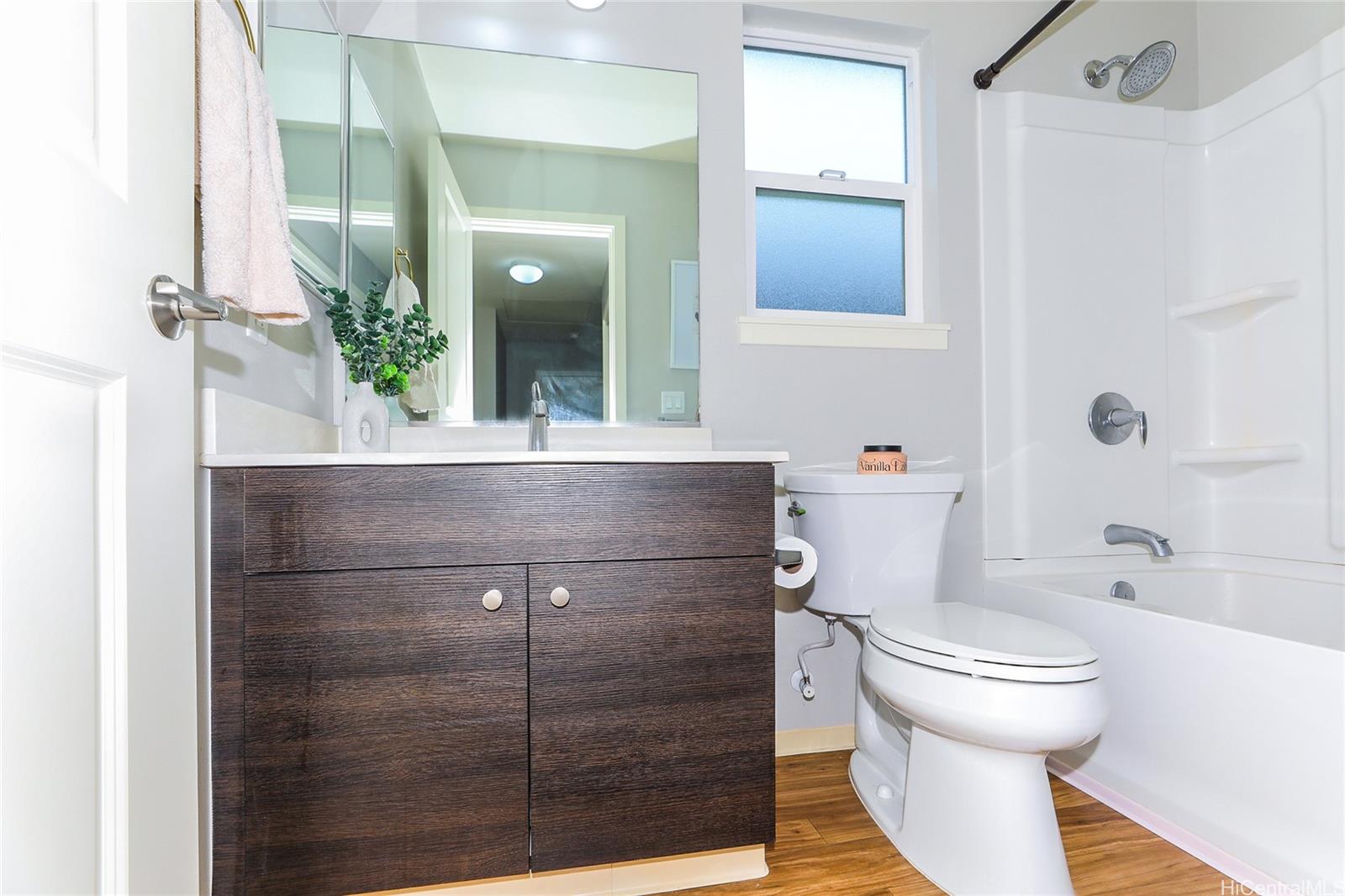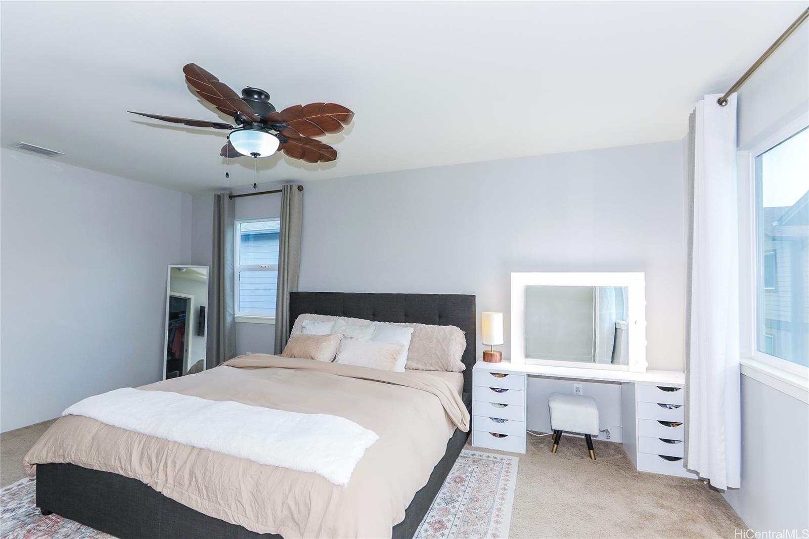 VA ASSUMABLE at 3.1% RATE! This stylish contemporary home showcases an innovative open-concept layout, complemented by a modern kitchen and updated bathrooms. The fully fenced yard with a lanai create the perfect setting for entertaining, relaxing, or accommodating pets. Additional highlights include central air conditioning, solar water heating, rain gutters, and more. The property offers a two-car garage plus a third parking space, along with ample guest parking. Conveniently located near schools, parks, and golf courses, this home is just minutes from shopping, dining, and entertainment. You’ll also appreciate its close proximity to the beautiful Ko Olina lagoons and the stunning beaches along Oahu’s leeward coast.