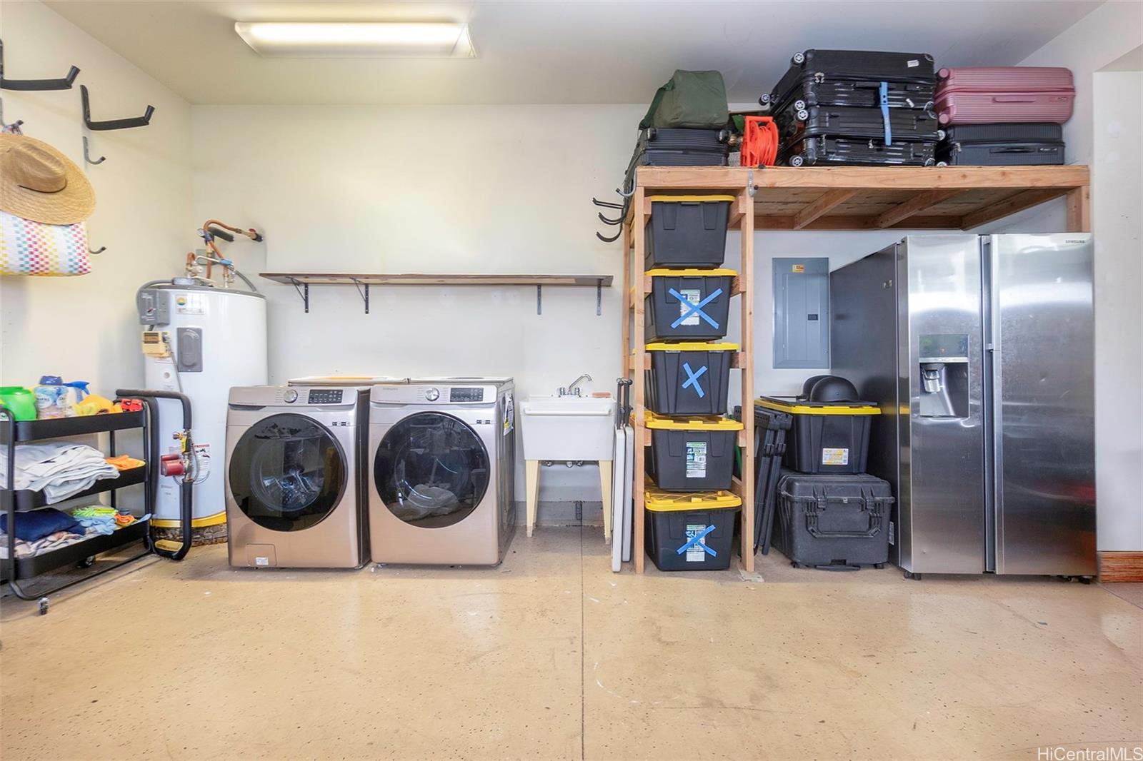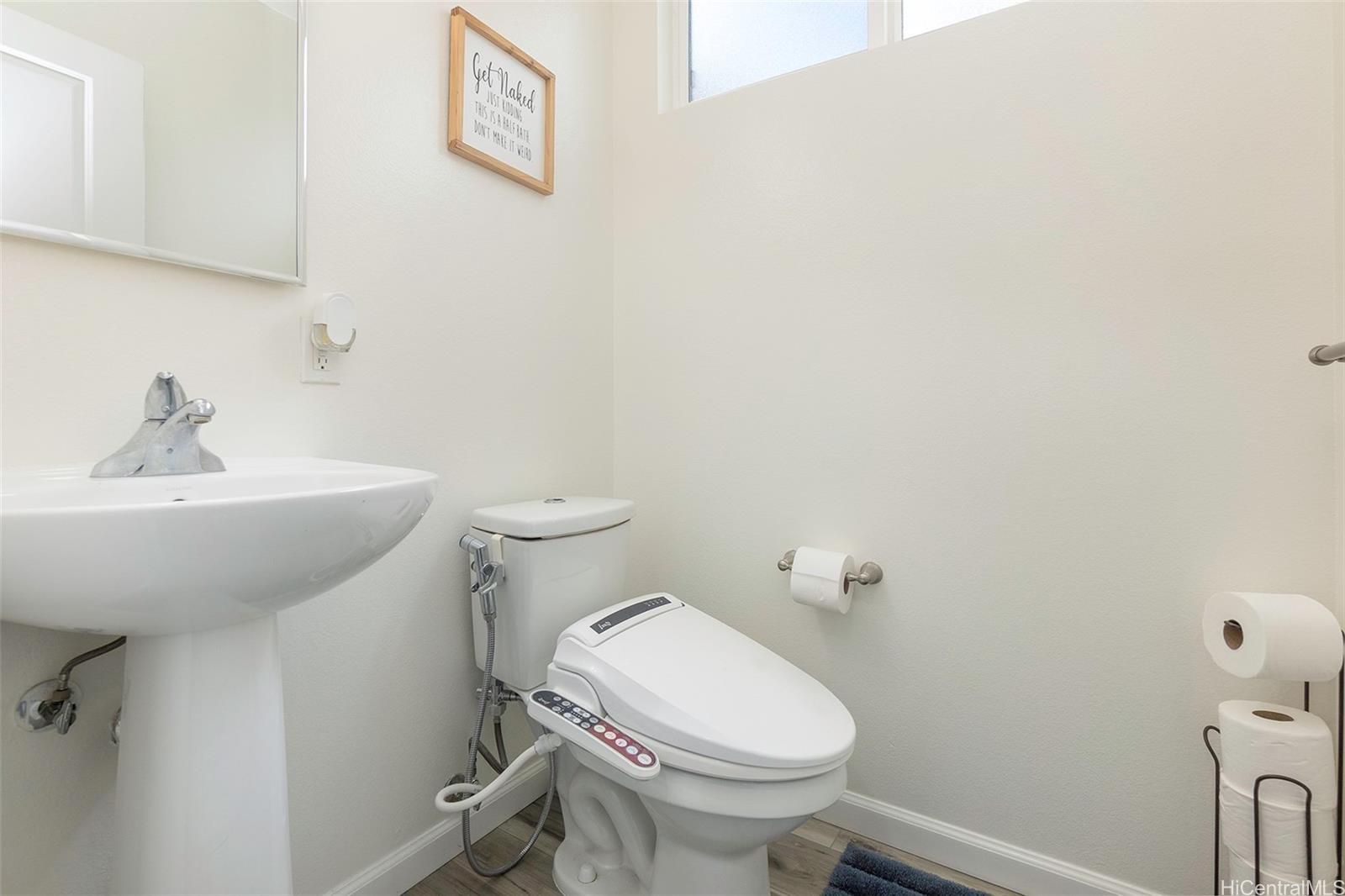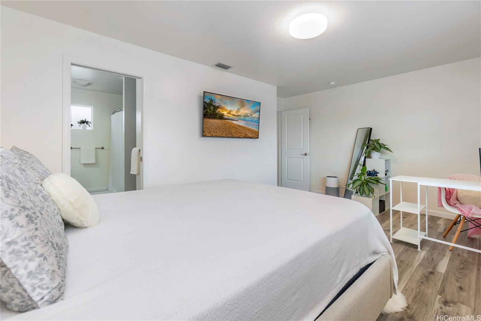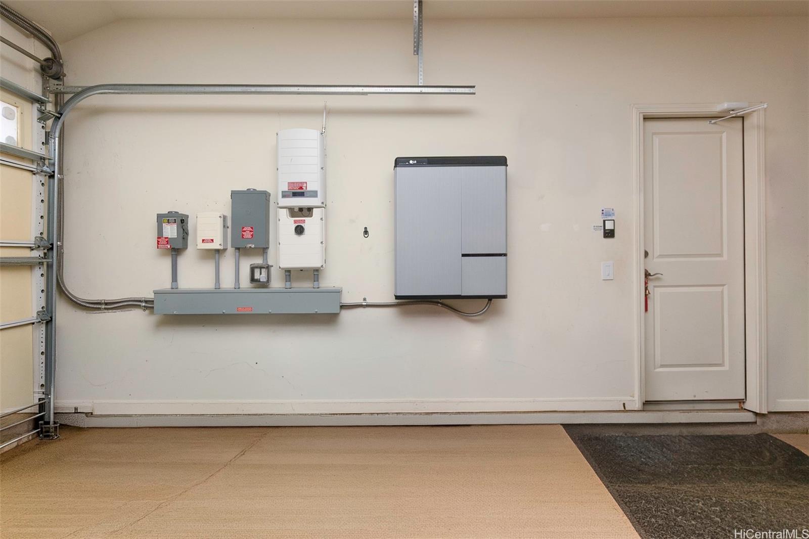 Move in ready home in one of the best locations within Laulani-Tides at Ewa Gentry. Enjoy open views with no home directly behind, offering added privacy. This beautifully remodeled 3 bedroom, 2.5 bath residence features an attached 2 car garage plus a large driveway accommodating two additional vehicles. Recent upgrades completed in 2023 to 2024 include all new kitchen cabinets, quartz countertops,and stainless steel appliances. Stylish plantation shutters and low maintenance luxury vinyl plank flooring run throughout the home. The spacious primary suite offers dual vanities and a large walk in closet with an upgraded closet system. Energy efficient features include a 16 panel leased photovoltaic system with backup battery, a central A/C system replaced in 2021, and a solar water heater installed in 2020. One of the larger fenced yards in the development provides excellent outdoor space for relaxing or entertaining. Conveniently located near parks, shopping, restaurants, beaches, and more. Community amenities include a pool and BBQ area. Truly move in condition and a must see opportunity. One or more photos have been virtually enhanced.