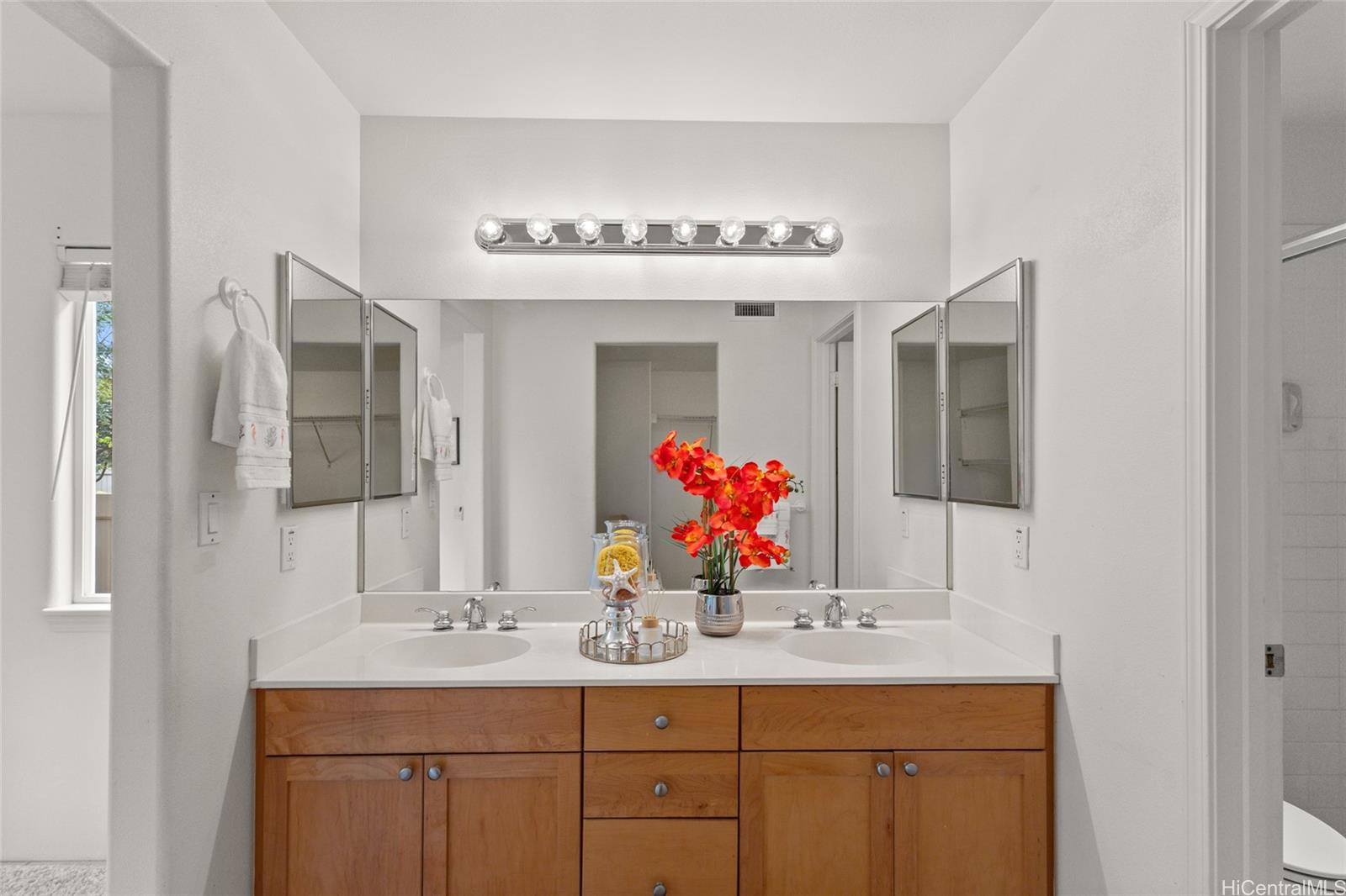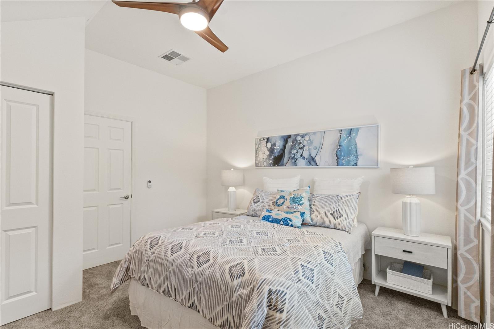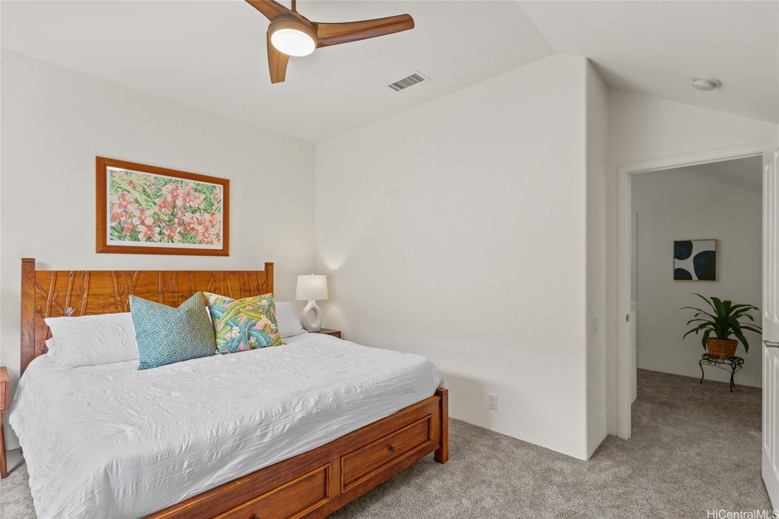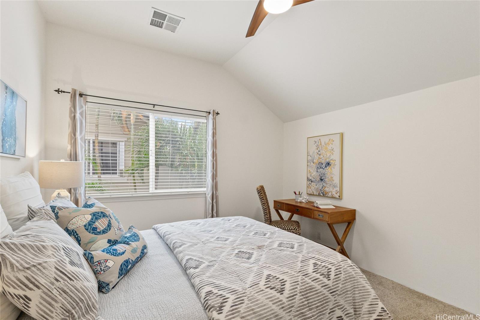 FIRST OPEN HOUSE SUNDAY, APRIL 26, 2006 2:00-5:00PM. Welcome home. Remodeled 3-bedroom, 2.5-bathroom home in the prestigious gated community of Hu’elani at Ewa Gentry. Designed with energy efficiency in mind, the home features 36 owned PV panels that keep electric cost very low. The versatile layout offers a rare first-floor bedroom and full bath, with two additional bedrooms upstairs. Enjoy a modern open-concept kitchen with brand-new stainless steel appliances and premium finishes, plus the convenience of an attached 2-car garage and ample guest parking. The HOA provides exceptional value, covering roof maintenance, exterior painting, water, sewer, and insurance, while giving you access to resort-style amenities including a private pool, spa, fitness center, and clubhouse. Minutes from world-class golf courses and Ka Makana Ali’i shopping center.—