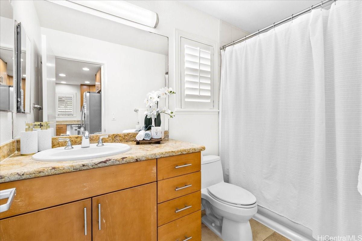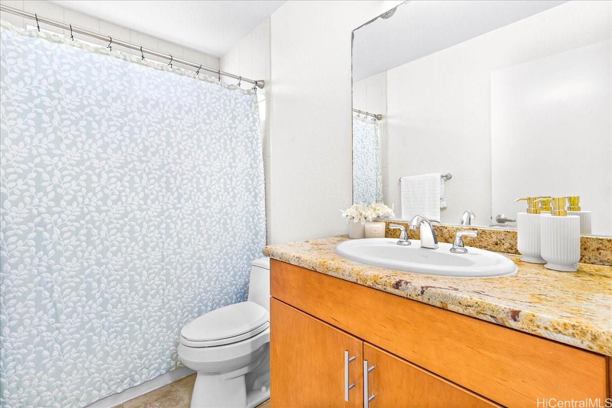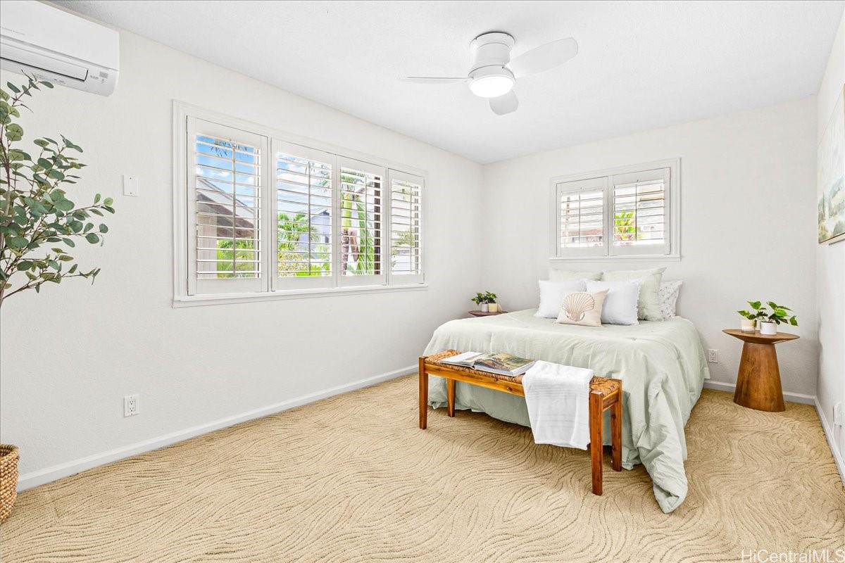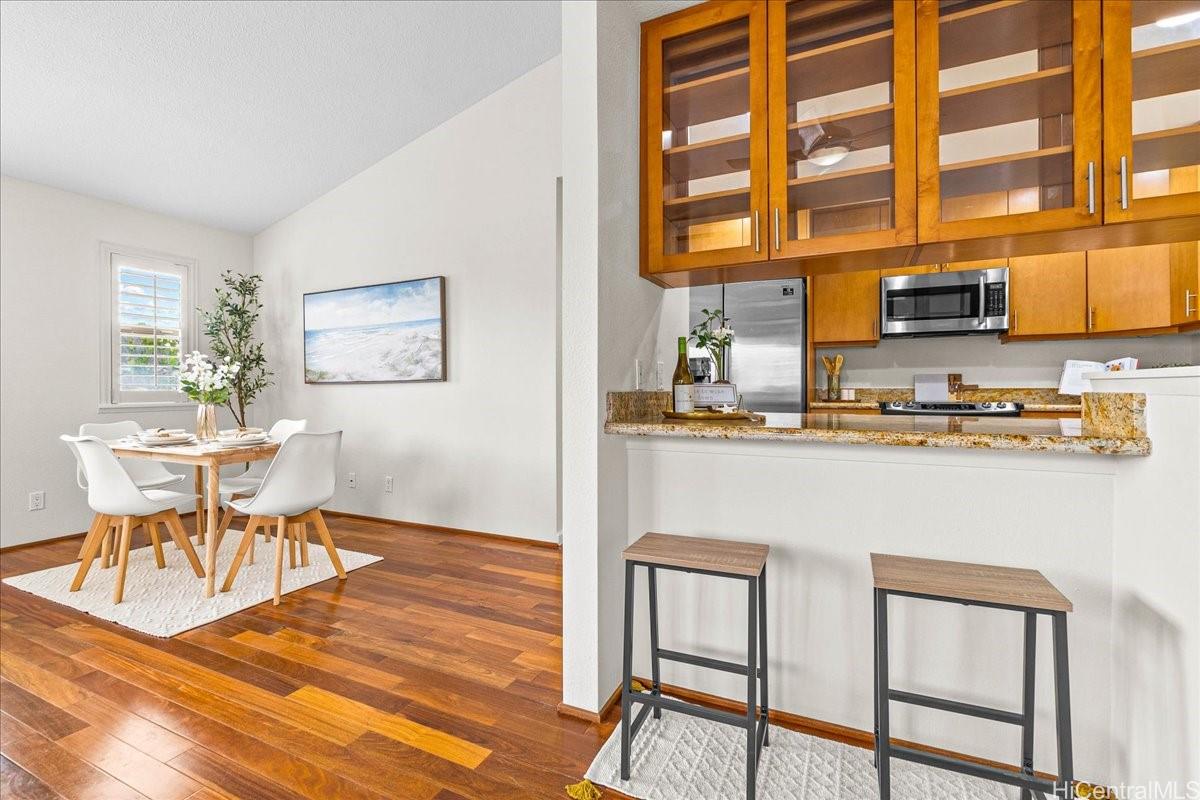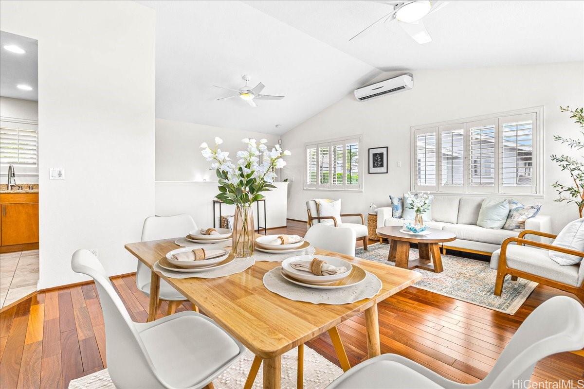 Experience elevated island living in this lovingly cared for 3-bedroom, 2-bath home tucked into a peaceful Royal Kunia cul-de-sac. This two-story retreat features a thoughtful layout with two bedrooms and a full bath on the main level for comfort and privacy. Upstairs, the primary bedroom opens to a bright kitchen with granite countertops, while the living room shines with beautiful hardwood floors and plantation shutters that bring in soft, airy light. Fresh, clean, and truly move-in ready, this home shows pride of ownership throughout. Outside, the beautifully landscaped and fully gated yard offers the perfect place to unwind after a long day- quiet, breezy, and made for easy island evenings. With Royal Kunia’s prime location near shopping, dining, parks, schools, and freeway access, you get convenience wrapped in community charm. Homes like this don’t linger – come see it, feel it, and imagine your next chapter here.