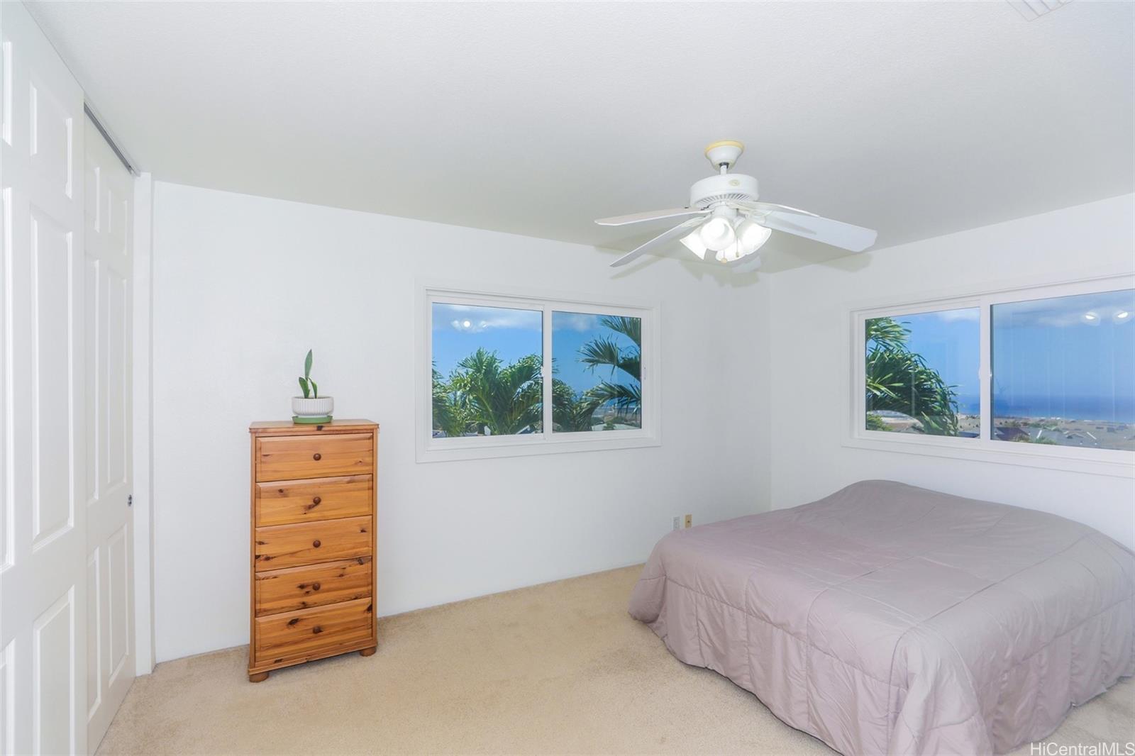 Ocean-view living in the gated community of Seascape at Makakilo. This well-maintained 3-bedroom, 2.5-bath single-family home offers comfort, privacy, and easy island living in Kapolei. Enjoy ocean views from multiple rooms, an open and functional floor plan, and a versatile loft space ideal for a home office or relaxation. The kitchen features stainless steel appliances and flows seamlessly into the main living areas, perfect for everyday living and entertaining. Central air conditioning provides year-round comfort, while the spacious primary suite offers ocean views, and a peaceful retreat. A fully fenced backyard with a sprinkler system offers space for outdoor enjoyment or quiet relaxation. HOA monthly fees include unlimited water usage.Move-in ready and designed for comfortable, long-term living in the Makakilo community. Schedule a private showing and experience the space for yourself.
