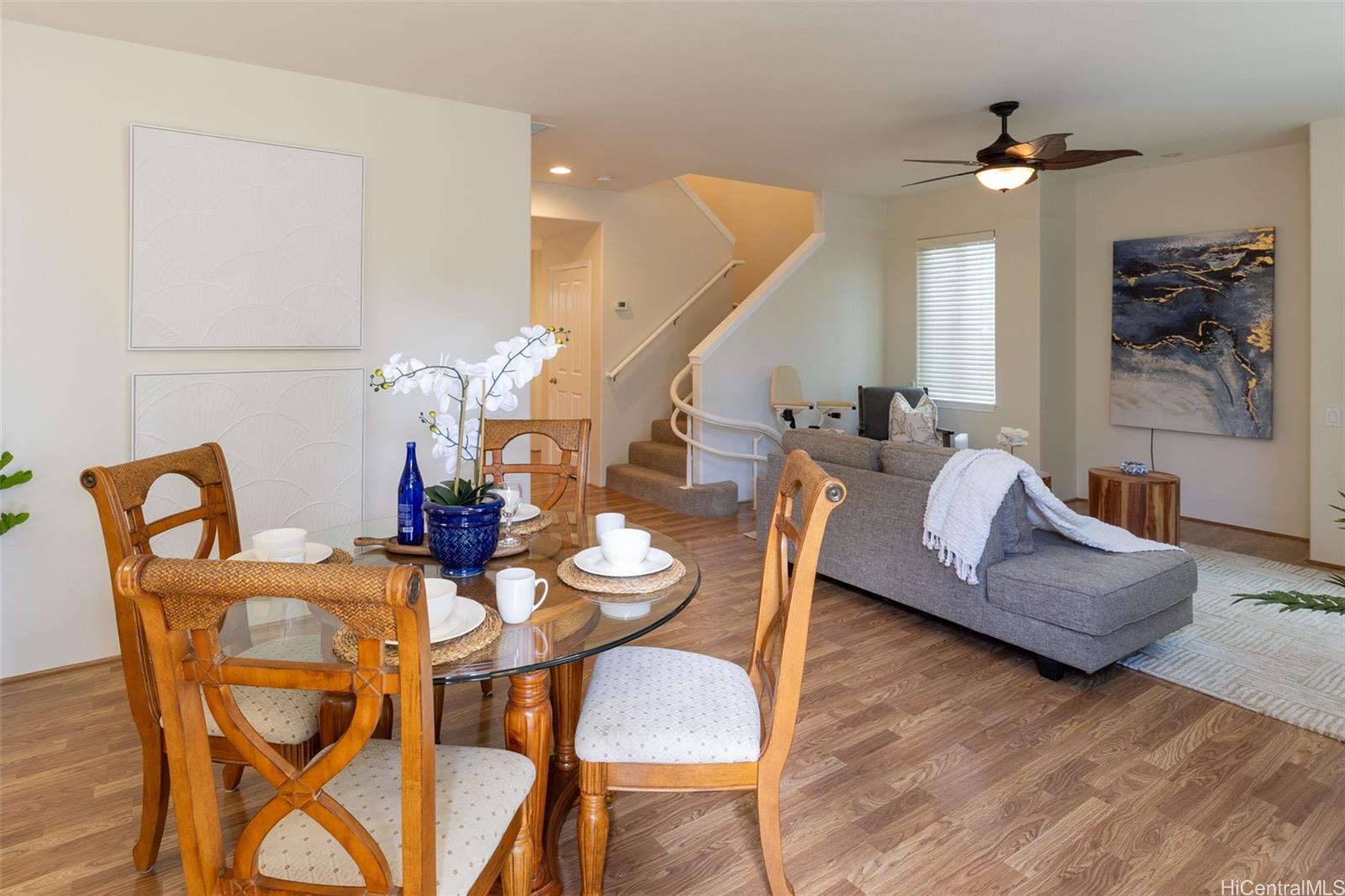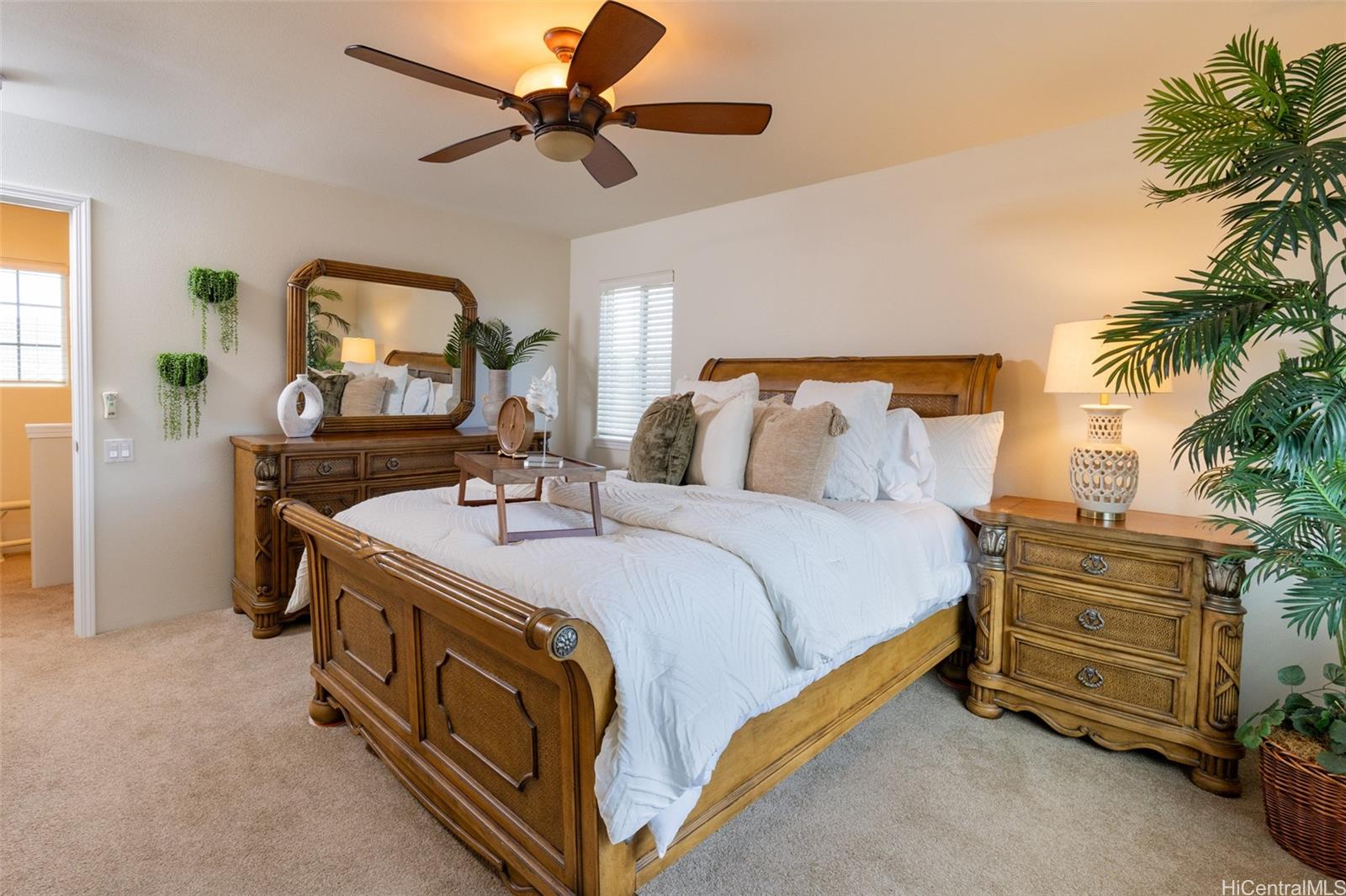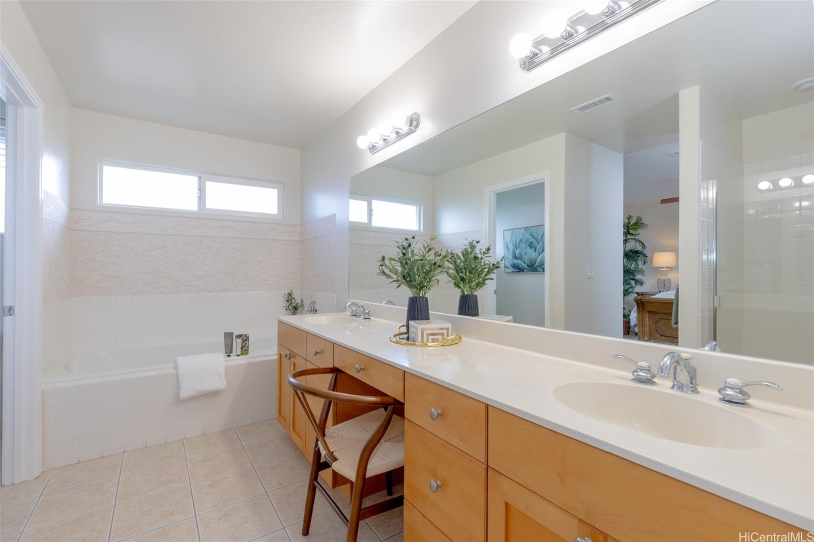 Welcome to the gated community of Hu’elani located in the Ewa neighborhood of Oahu, Hawaii. Pride of ownership is evident in this 3 bedroom, 2.5 bath home with central AC, enclosed two car garage and enclosed back yard with a covered lanai. The home has 36 photovoltaic panels and was freshly painted prior to coming on market. Resort like amenities, close proximity to golf courses, shopping and schools. The maintenance fee covers painting of homes every 10 years, roof maintenance/repair, front yard maintenance, yearly termite inspection, water & sewer, clubhouse, pool, gym and spa, the clubhouse & entry gate are monitored by video cameras, Site Manager and plenty of guest parking. You don’t want to miss this special home and community!