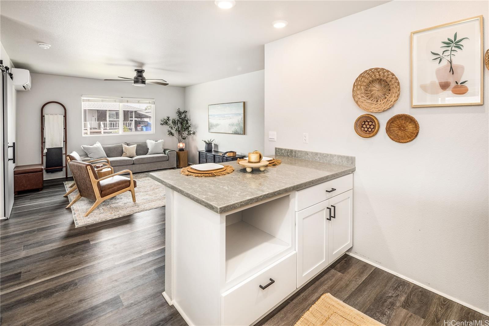 ワヒアワの好立地にある、裏手に隣人のいない美しい一軒家へようこそ。 快適性、利便性、スタイルのために入念にアップグレード。 光沢のある白いキャビネット、クォーツ・カウンター ...
