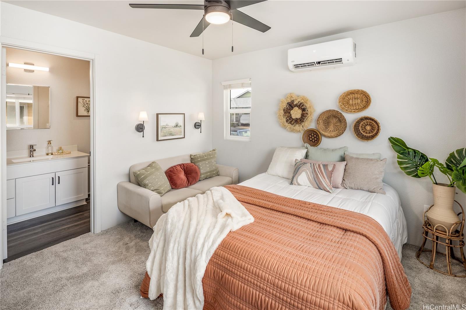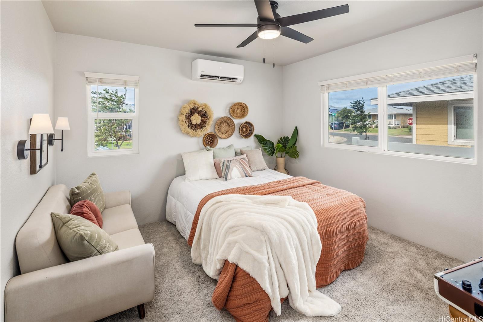 Look at this adorable corner detached single level single family home in Hoopili! The property gives a retro vibes that immediately draws your interest yet in reality, it is a new home that was built in 2022 with split AC in every room. Only about a mile away from the rail station that could make your commute to work or school easier, while also located near many great restaurants and stores. Quiet neighborhood also offers great amenities that you can enjoy such as parks, swimming pool, pickle ball court and soccer field. Relatively easy to show, this gem is awaiting for you!
