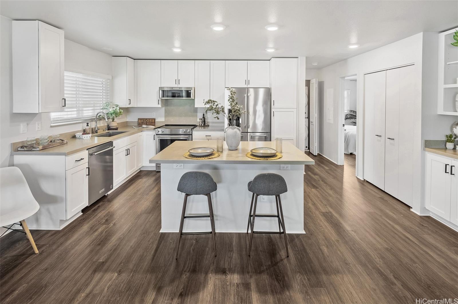 マキキの中心 2011年に改装され、床、キッチン、寝室、バスルームが新しくなりました。 各階に洗濯室と物置があります。 専用屋根付き駐車場と来客用駐車場をご用意しています!建物はハリケーン保険で100%補償されています! ...