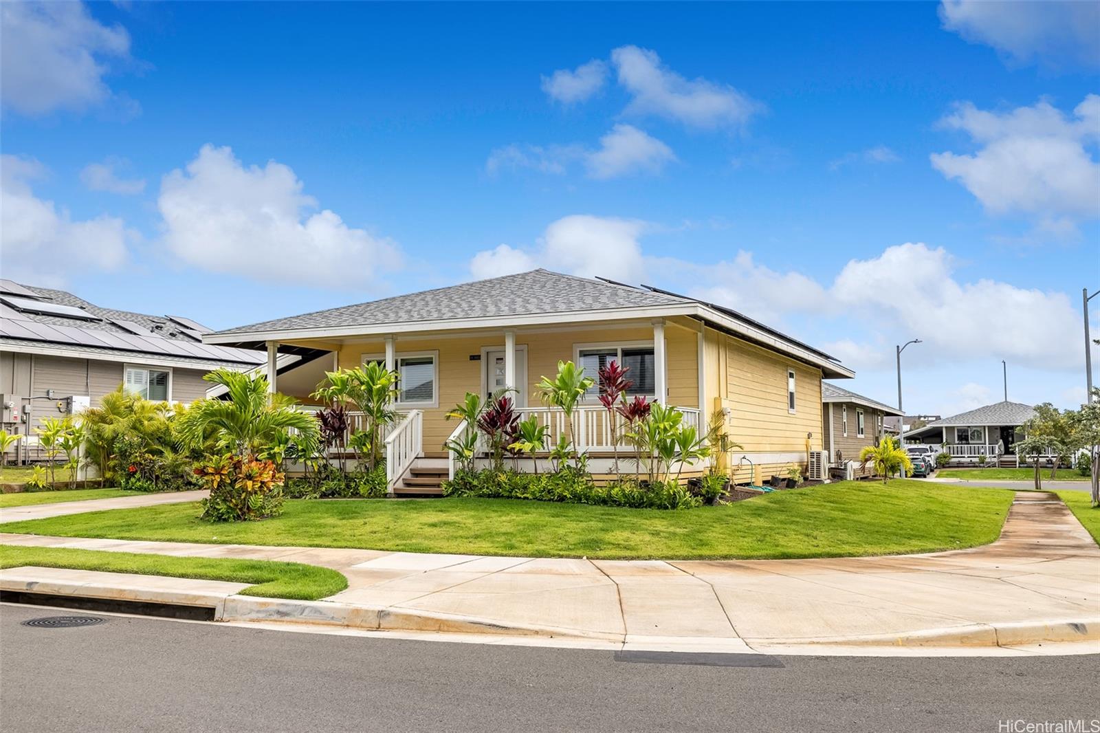 SINGLE LEVEL detached home on a corner lot! This rarely available 3-bedroom, 2-bath home at Ho’oulu features the largest floorplan in the project, offering both space and functionality in one of the most sought-after layouts in the community. Known as one of the most successful and desirable home types in Ho’opili, opportunities like this don’t come around often—especially priced under $1M. Open, seamless floorplan with hard surface flooring throughout. Start your mornings or unwind in the evenings on your welcoming front porch with beautiful landscaping, where you can enjoy the neighborhood’s charm and connection. Living in Ho’opili means embracing a vibrant, master-planned lifestyle—with nearby parks, recreation areas, rail access, and a growing collection of shops, dining, and conveniences all designed to enhance your daily life.