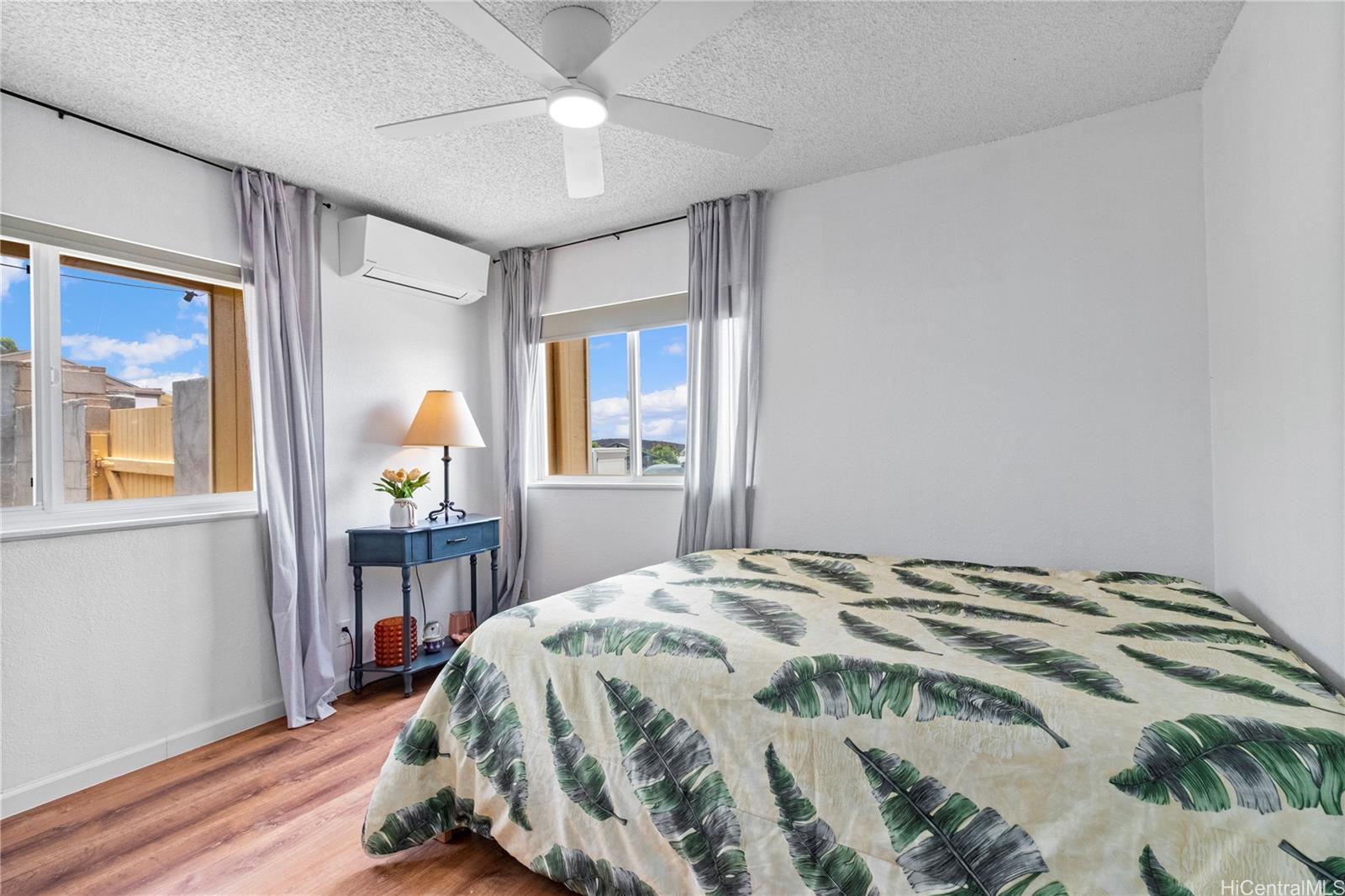 OPEN HOUSE 11/23, 1-4PM. PRICE REDUCED! Upper Makakilo’s Cool and Breezy Charm! This rare corner home on Makamai Loop, located in a peaceful cul-de-sac, offers a perfect blend of comfort and convenience. Recently upgraded in 2021, the home features bamboo flooring in the living area, vinyl flooring in the bedrooms, tile in the bathrooms, and new electrical wiring and concrete side walk. The 3 split A/C units and updated appliances – including range, refrigerator, dishwasher, washer, dryer, and ceiling fan — provide modern comfort. Principal bedroom boasts a walk-in closet and ensuite with a walk-in shower. High ceilings in the living room add to the open, airy feel. Outside, enjoy a landscaped yard with a BBQ slab and jacuzzi, plus privacy from high CMU walls at the rear. A 2-car garage and additional parking for two vehicles make this home ideal for families. Located near Makakilo Park with baseball fields, basketball/tennis courts, and easy freeway access, you’re minutes from Kapolei’s shopping, dining, and entertainment, as well as Ko’olina’s lagoons and Barber’s Point beach. This home offers both tranquility and convenience. Don’t miss the opportunity.